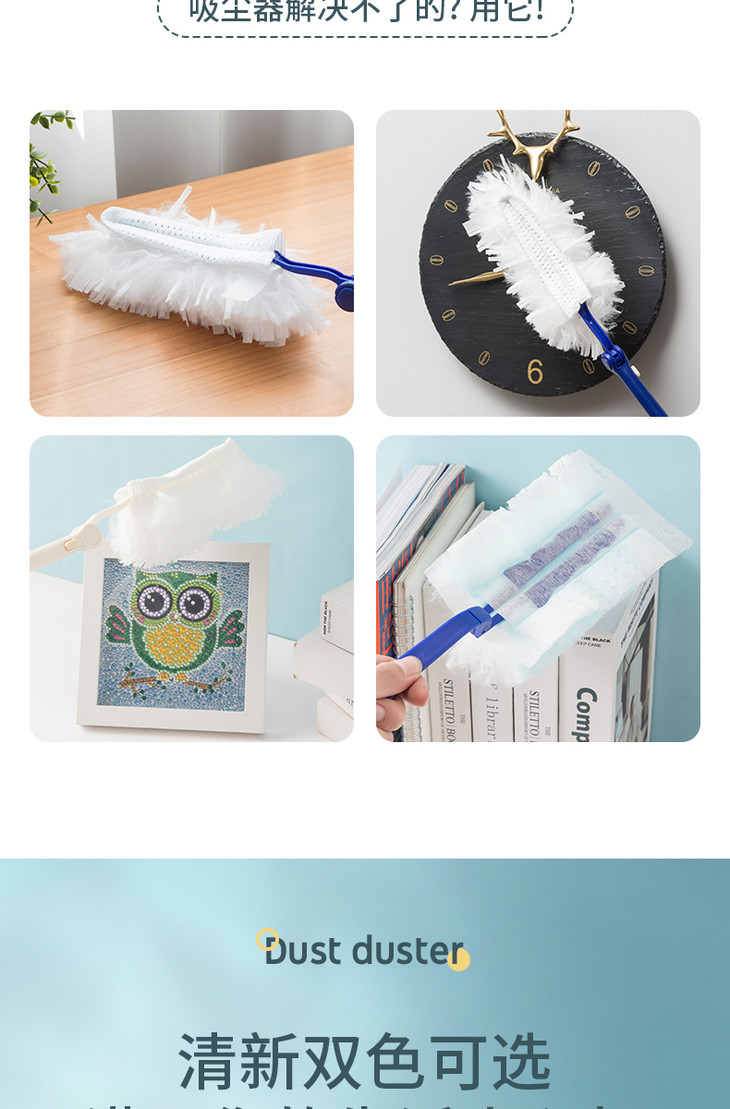 短款手柄+10个替换头静电除尘掸子家用一次性便捷收纳清洁扫灰鸡毛掸子擦灰扫灰床底下