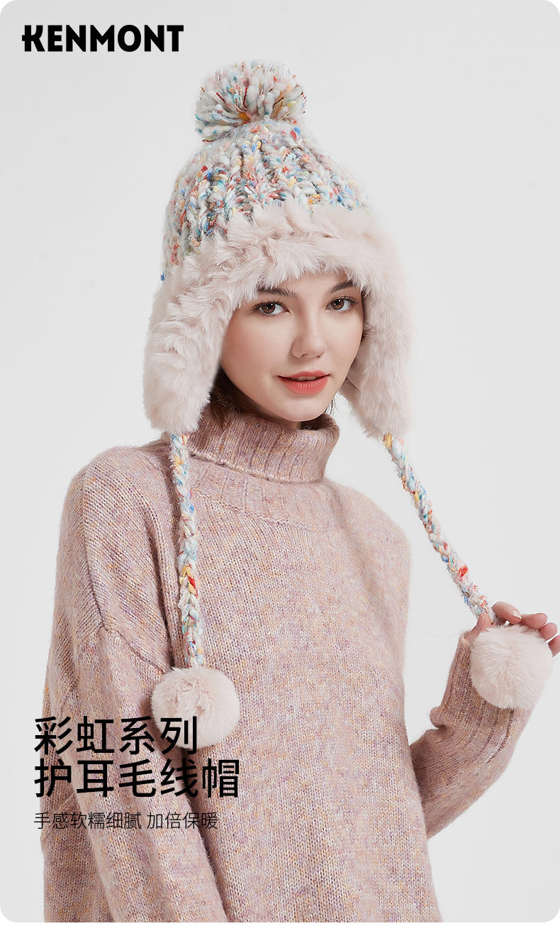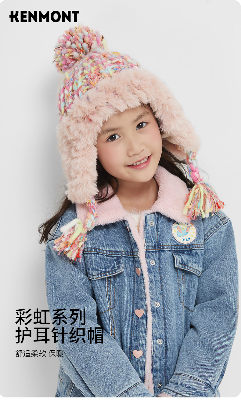 KENMONT卡蒙亲子款KM-9485/KM-4416 彩虹系列 护耳毛线帽 送价值138元的手套,多买多送