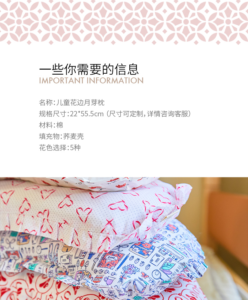 儿童花边月牙枕透气荞麦枕四季通用
