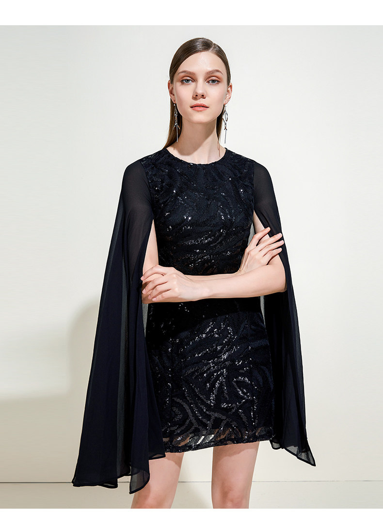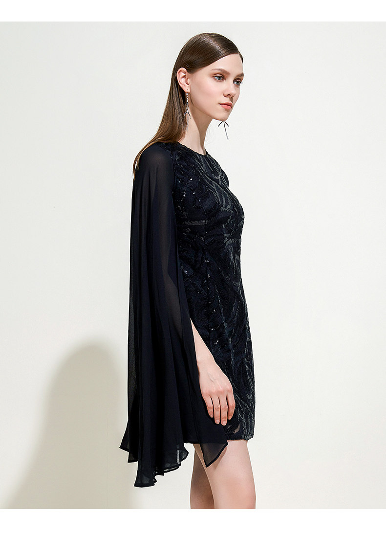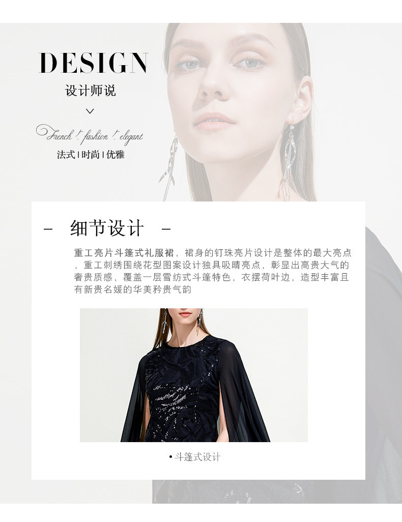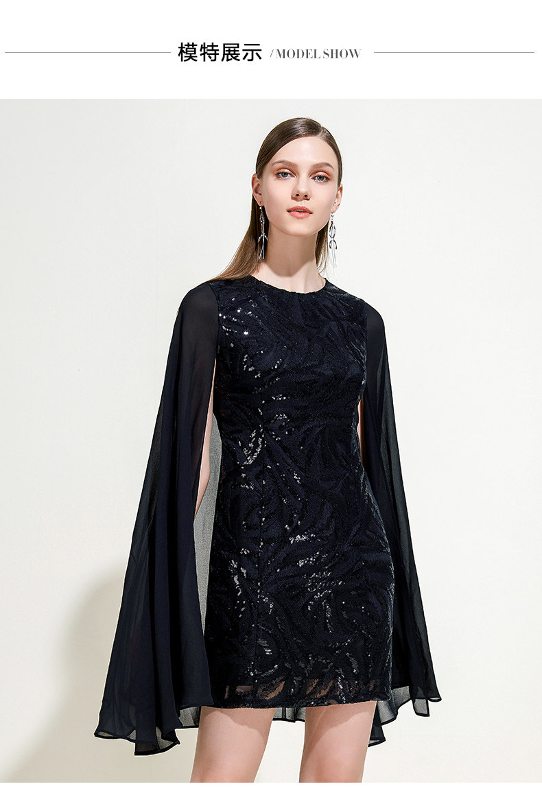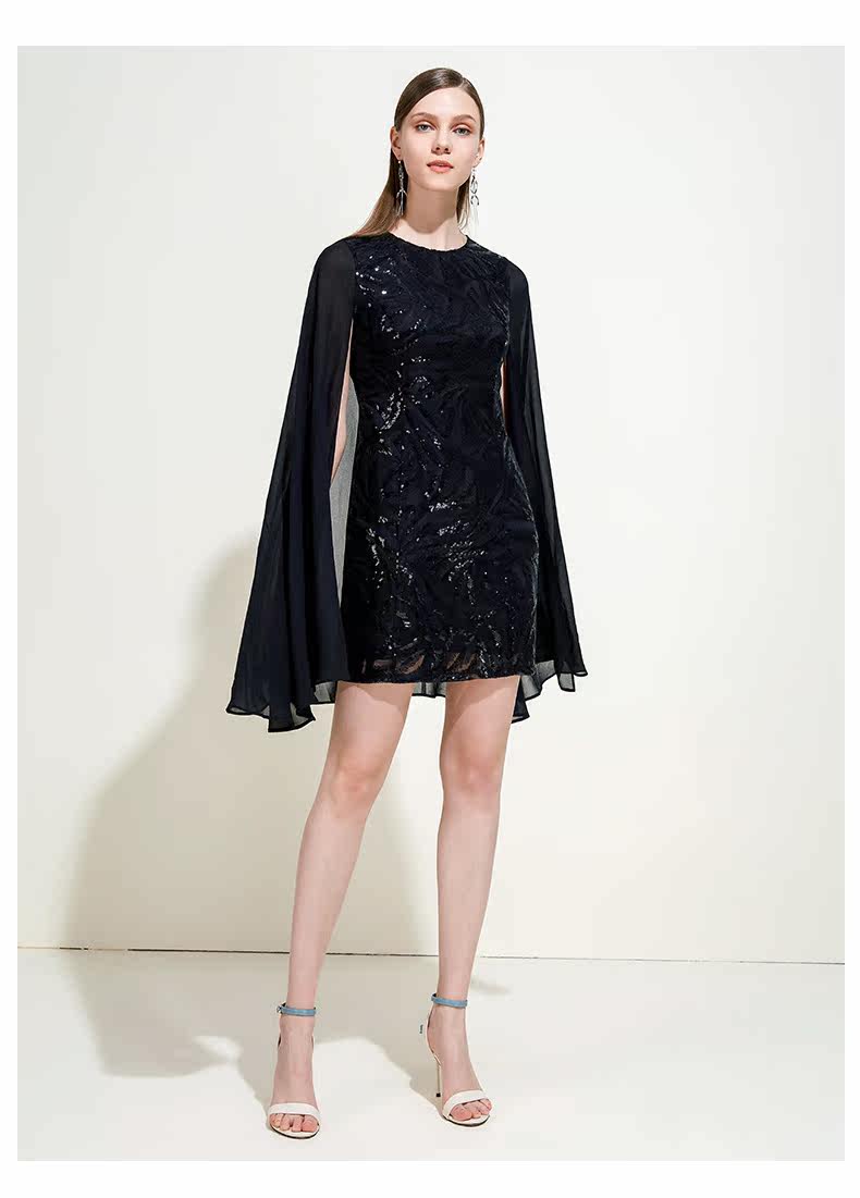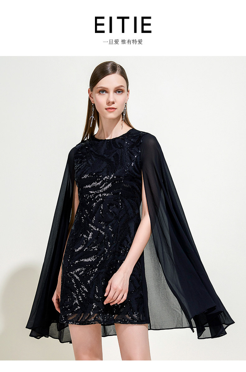 EITIE爱特爱女夏季重工钉珠亮片飘逸披肩礼服连衣裙5977616