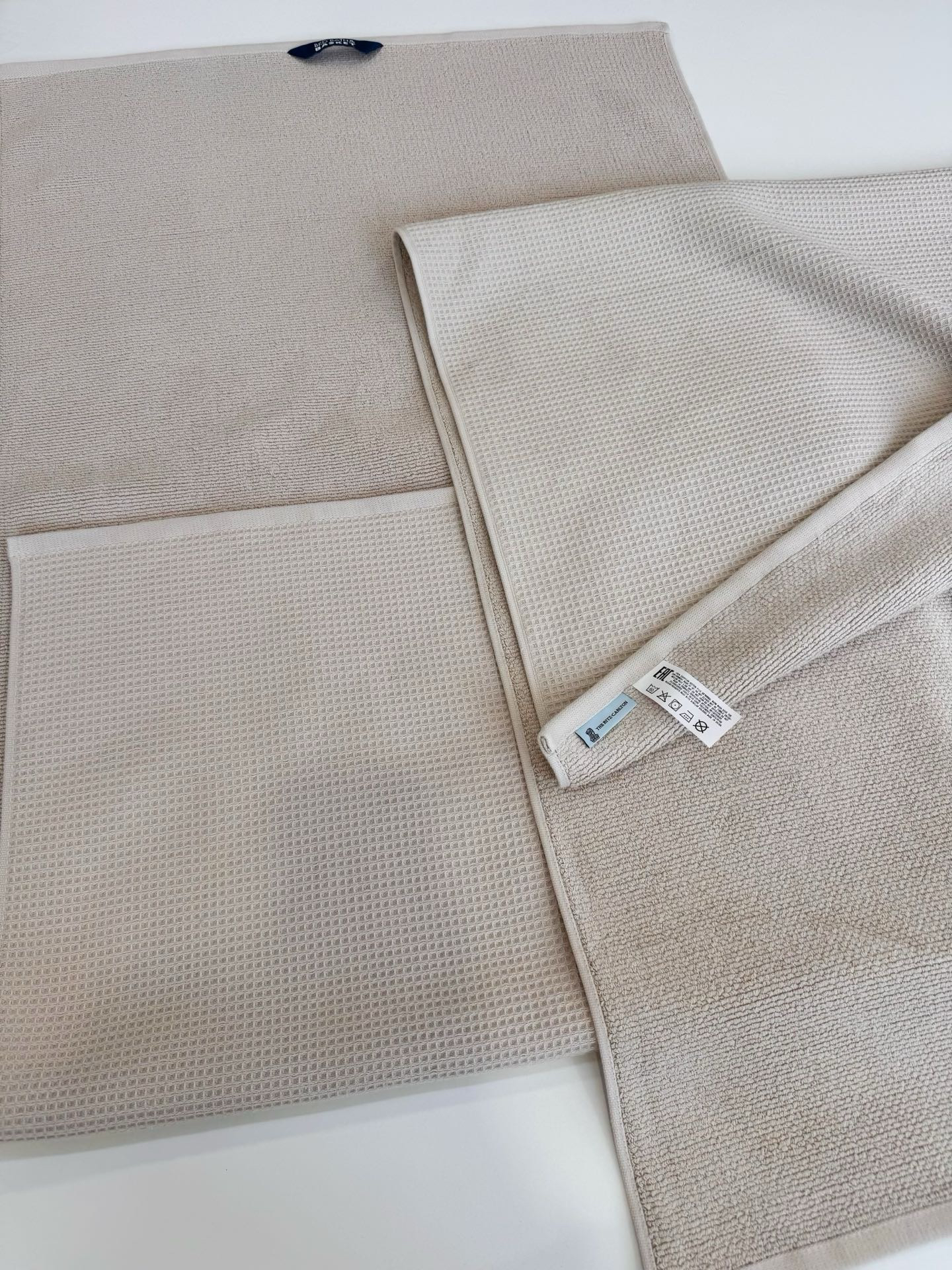 啦色浴巾有两个品牌的!分别是BEDBATH的合作款和the ritz carlton 两个品牌!都是大牌,特别特别好!咖色只有浴巾,白色有两款尺寸。