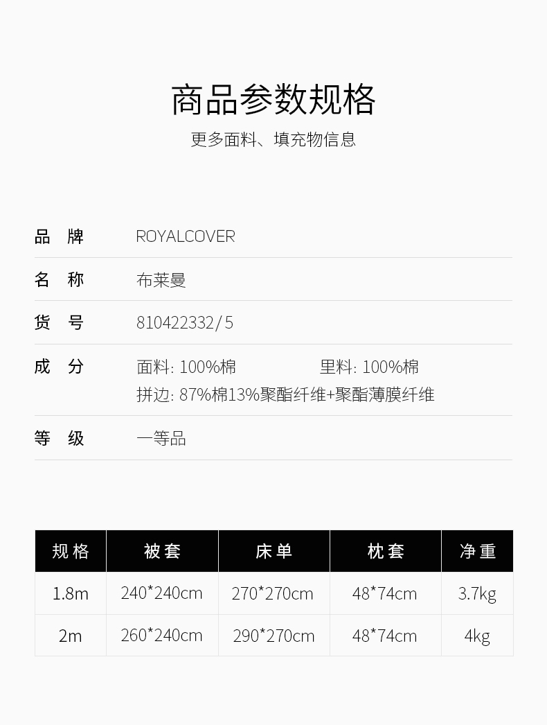 ROYALCOVER罗卡芙家纺埃及长绒棉欧式提花床品四件套(布莱曼810422332)