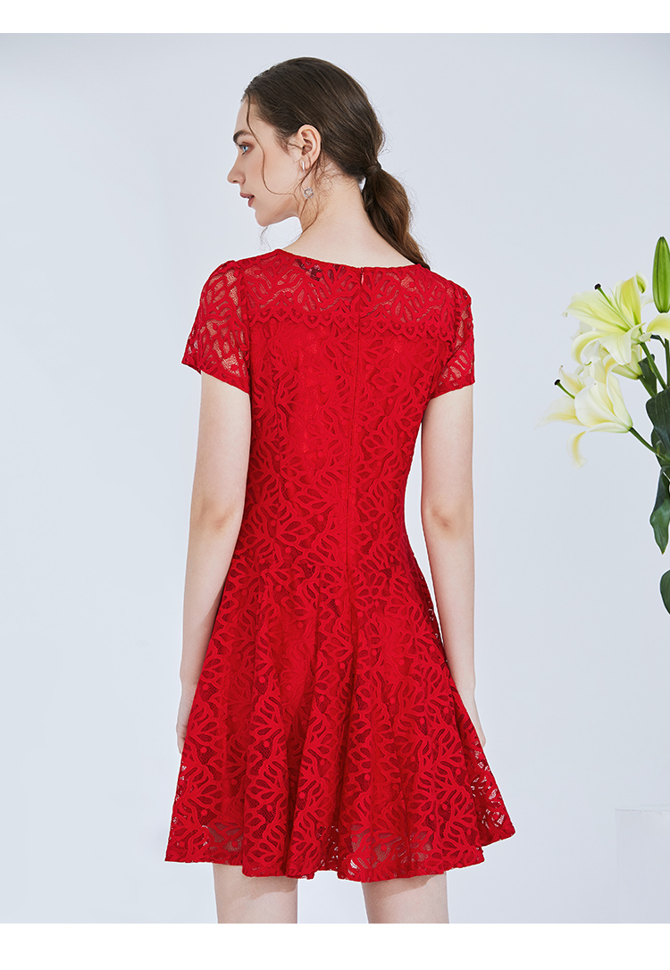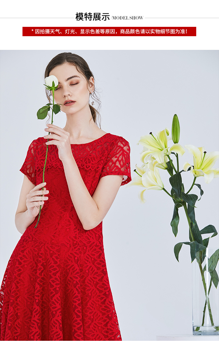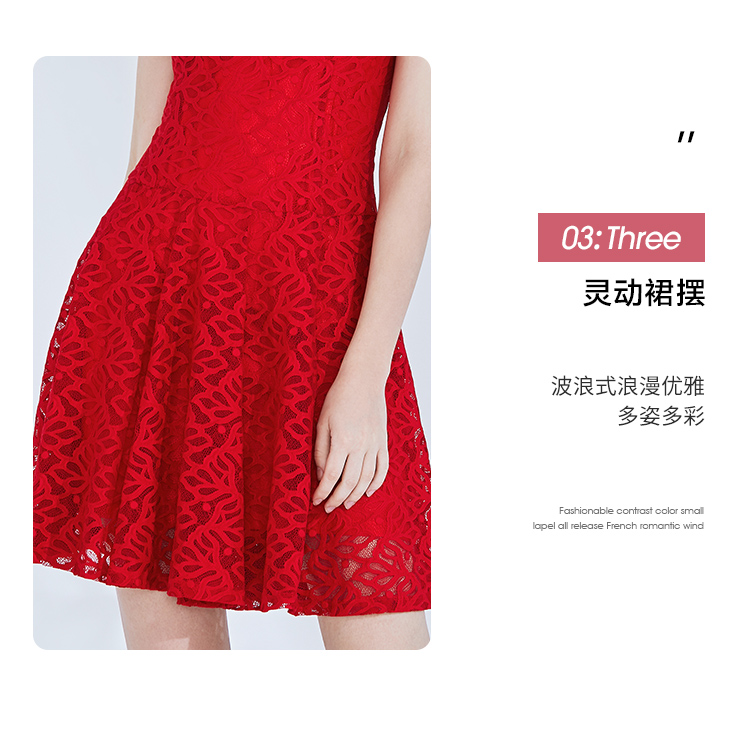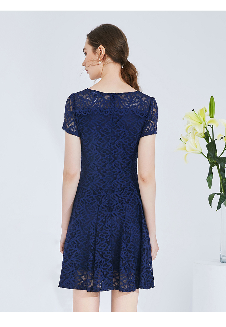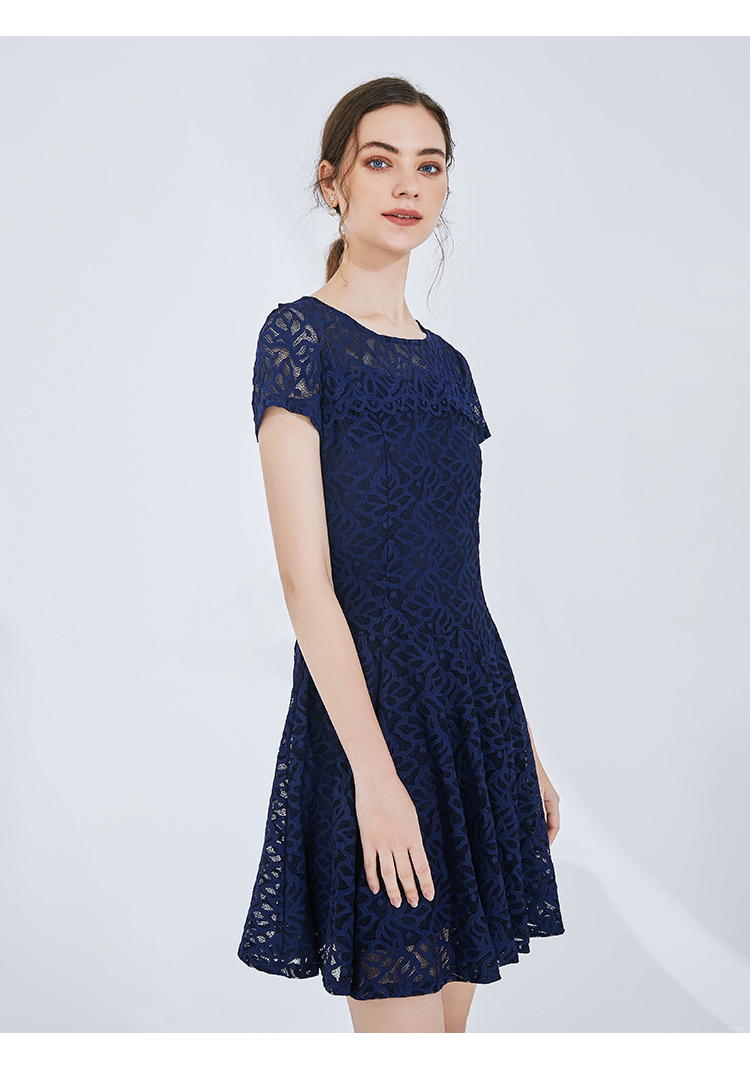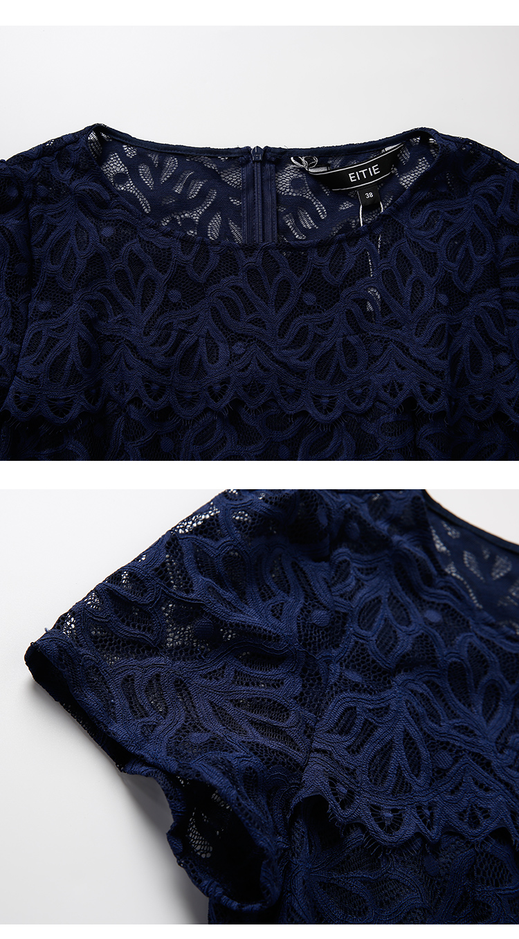EITIE爱特爱女装夏季新品优雅蕾丝钩花皱褶A字裙中腰连衣裙5707412