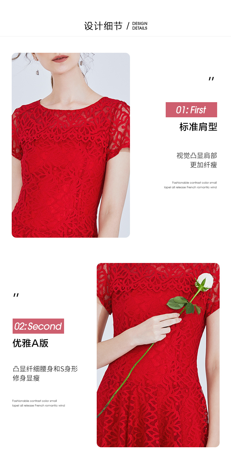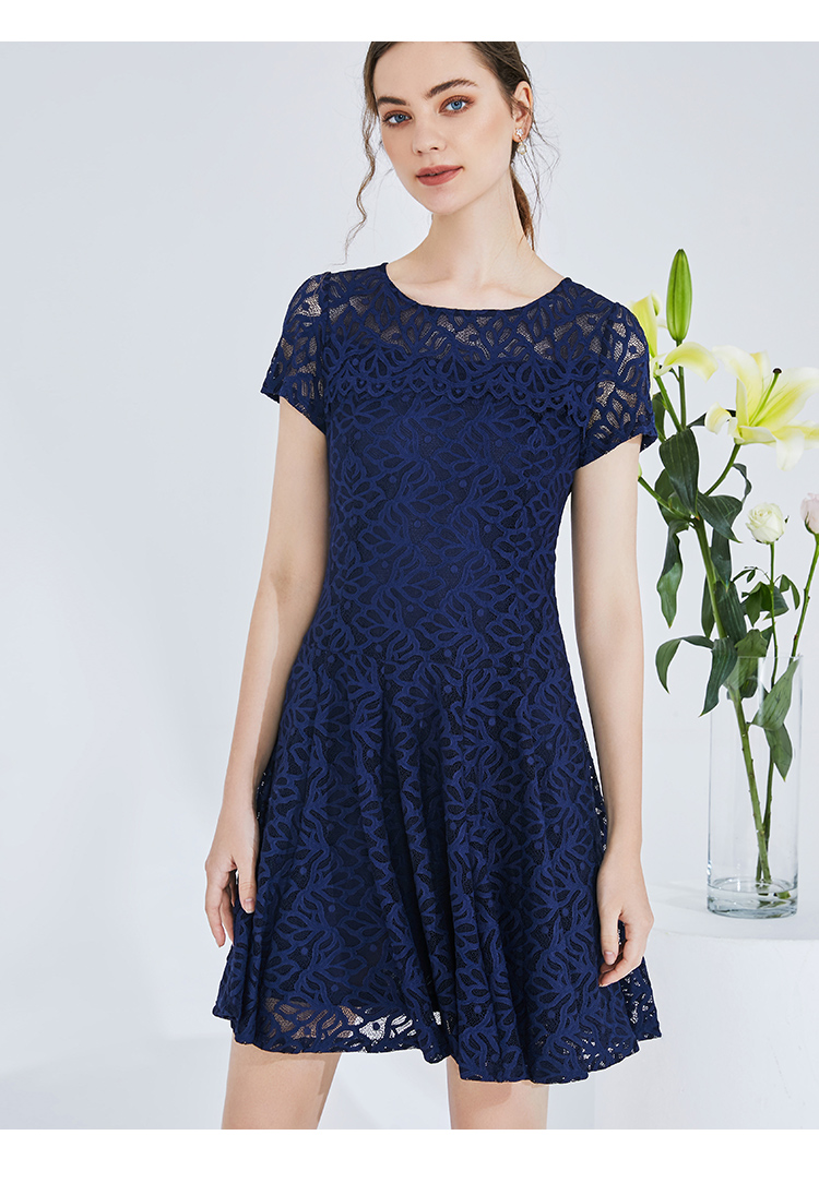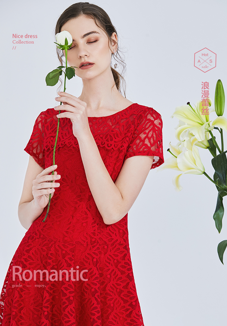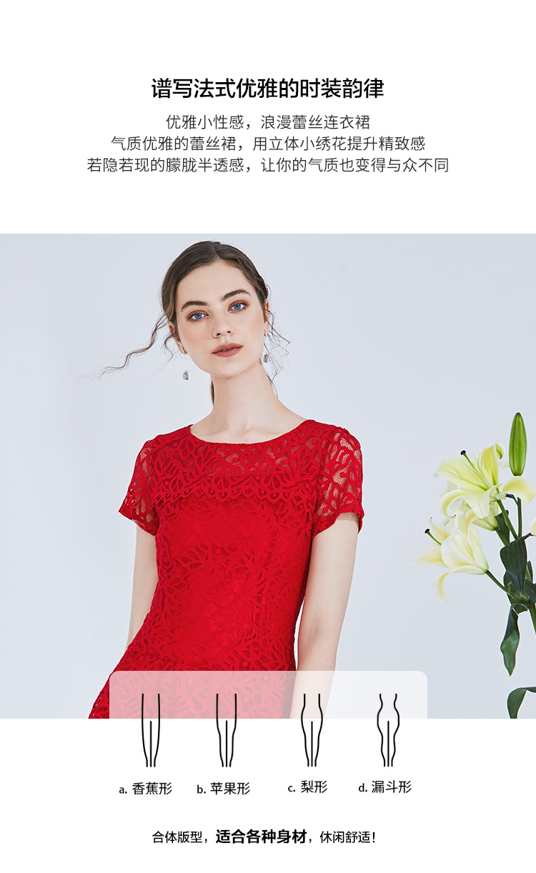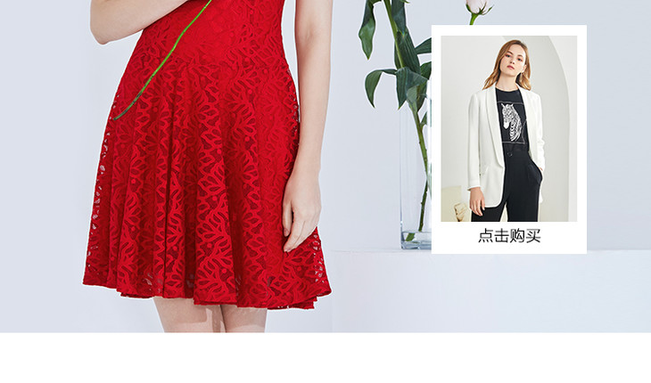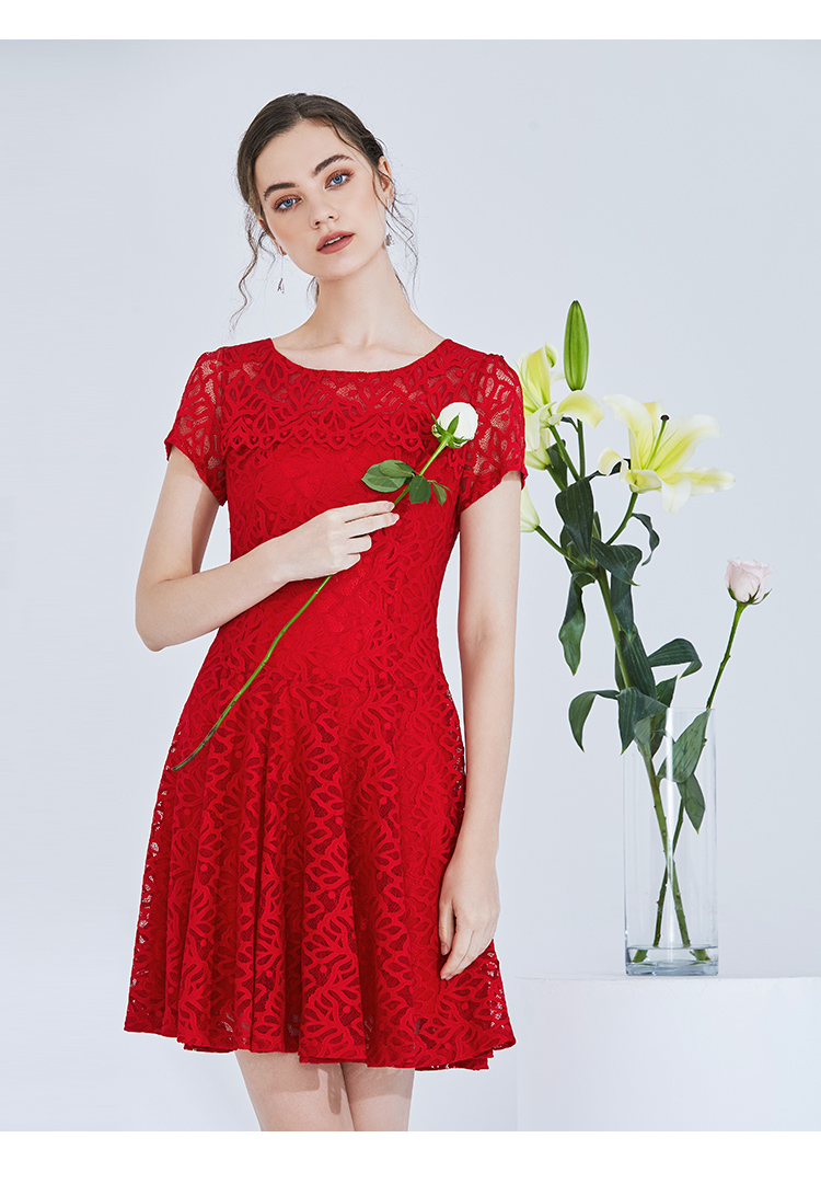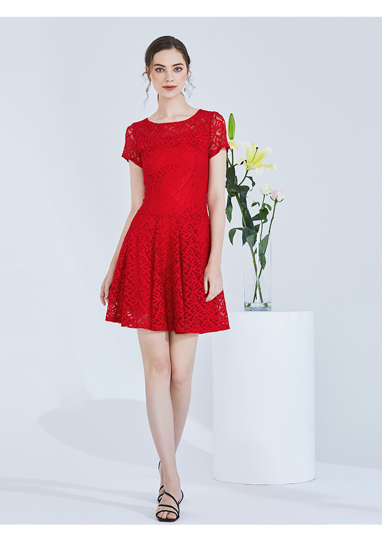 EITIE爱特爱女装夏季新品优雅蕾丝钩花皱褶A字裙中腰连衣裙5707412