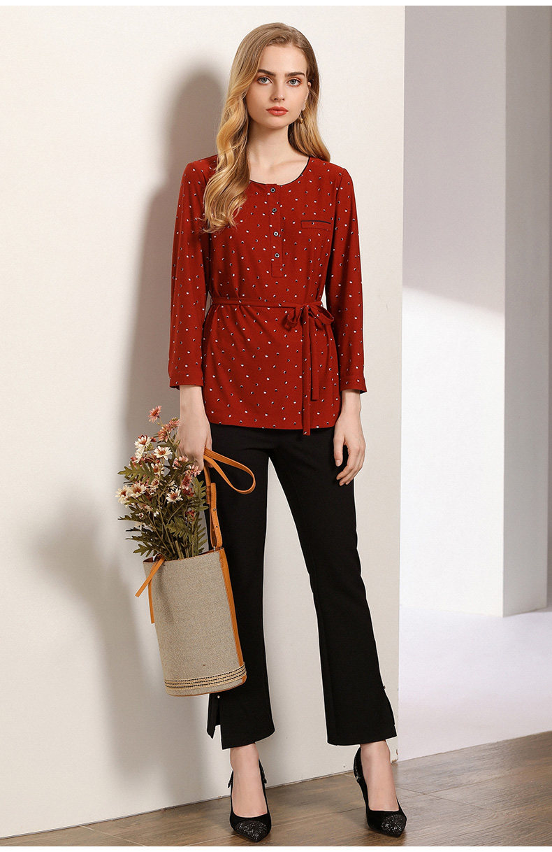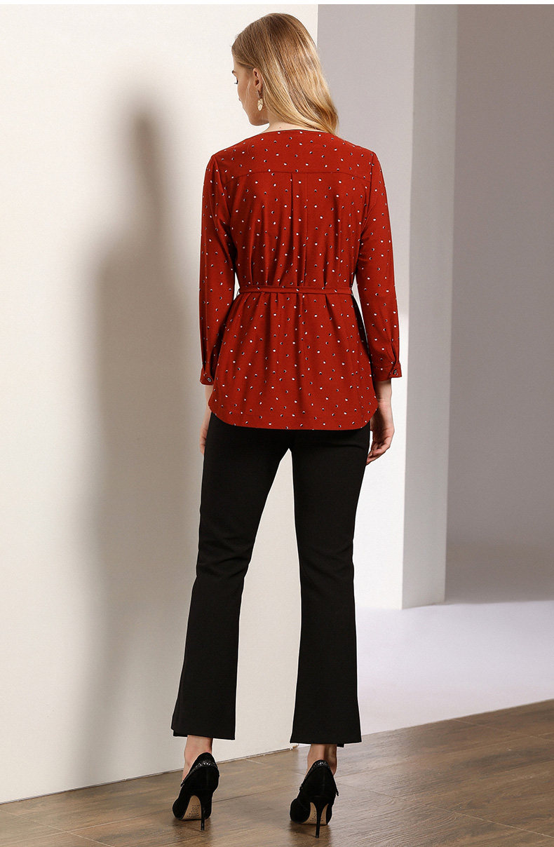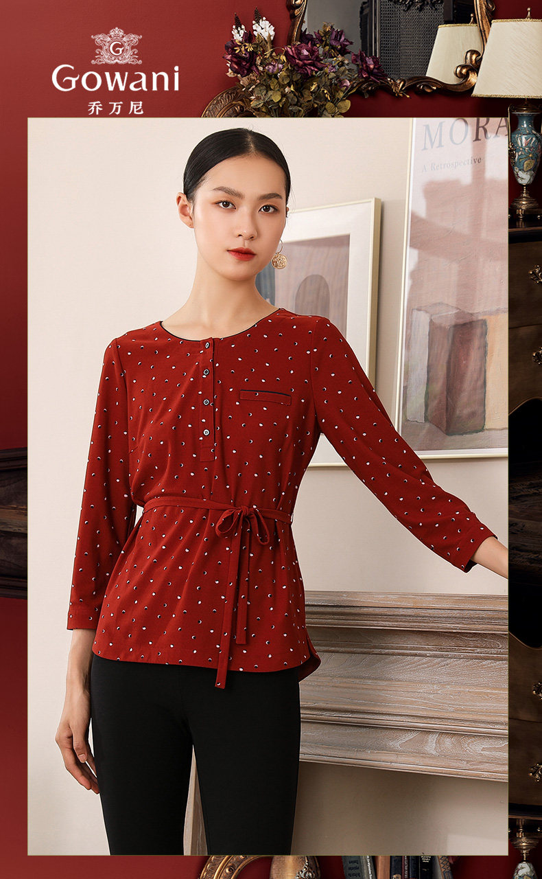 乔万尼秋季洋气小衫修身气质红色复古波点长袖上衣EN3C312