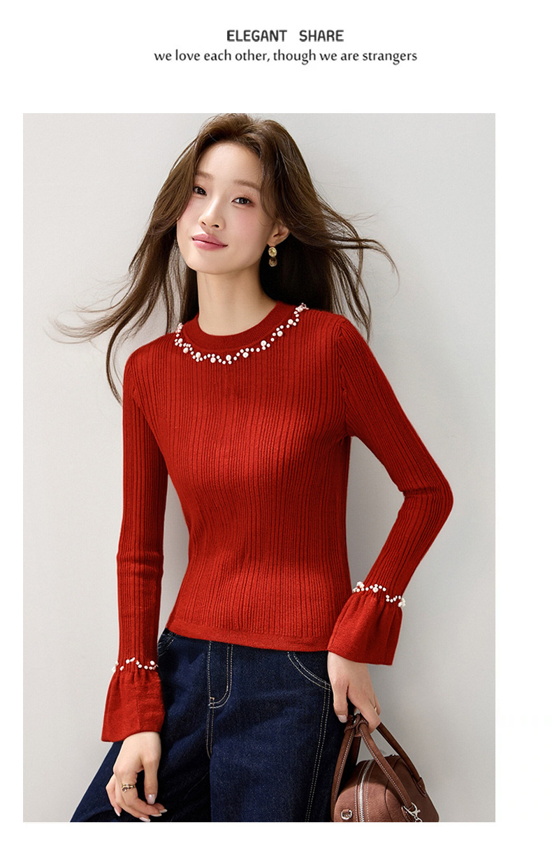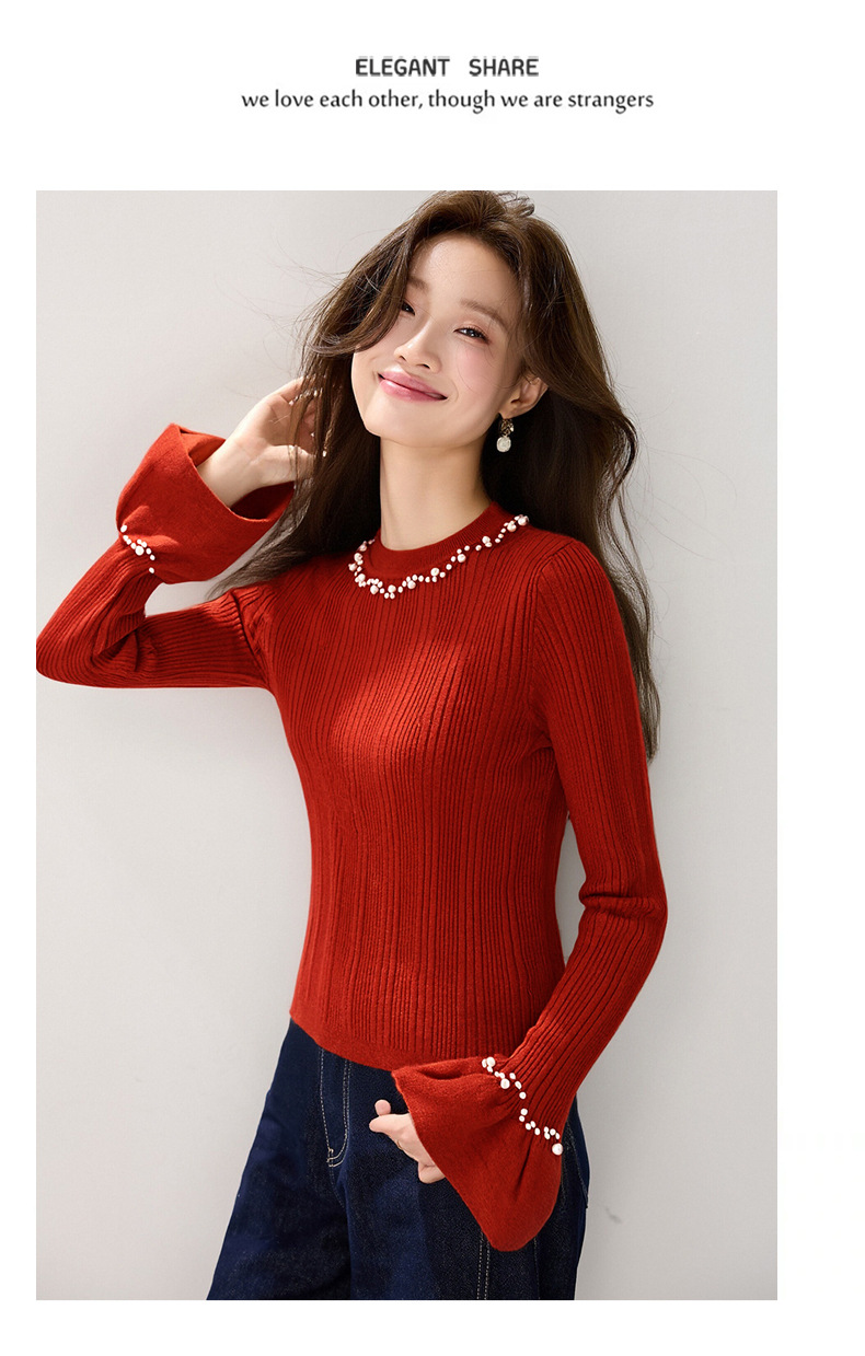 CC 2130喇叭袖毛衣针织衫修身显瘦上衣