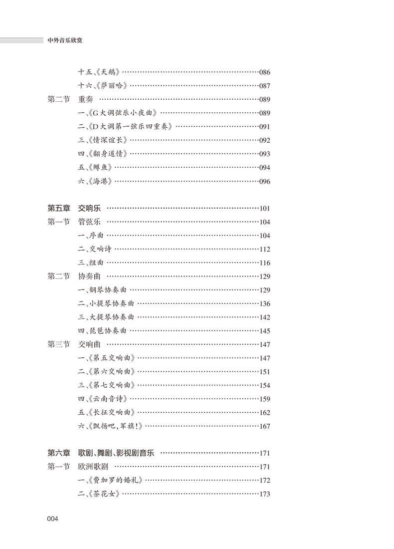 本书作为“全国职业教育音乐舞蹈类新形态规划教材”之一,紧密结合高等职业教育的人才培养目标,力图通过谱例、综述以及鉴赏方法等方面的新尝试,让广大一线教师使用起来得心应手,学生易学易懂。本教材以作品结构为线索,共由6章构成,分别是声乐,曲艺、戏曲,民族器乐,室内乐,交响乐,歌剧、舞剧、影视剧音乐,内容丰富,讲解简明扼要,书中所讲曲子基本附有音频资料,便于学习。 |
