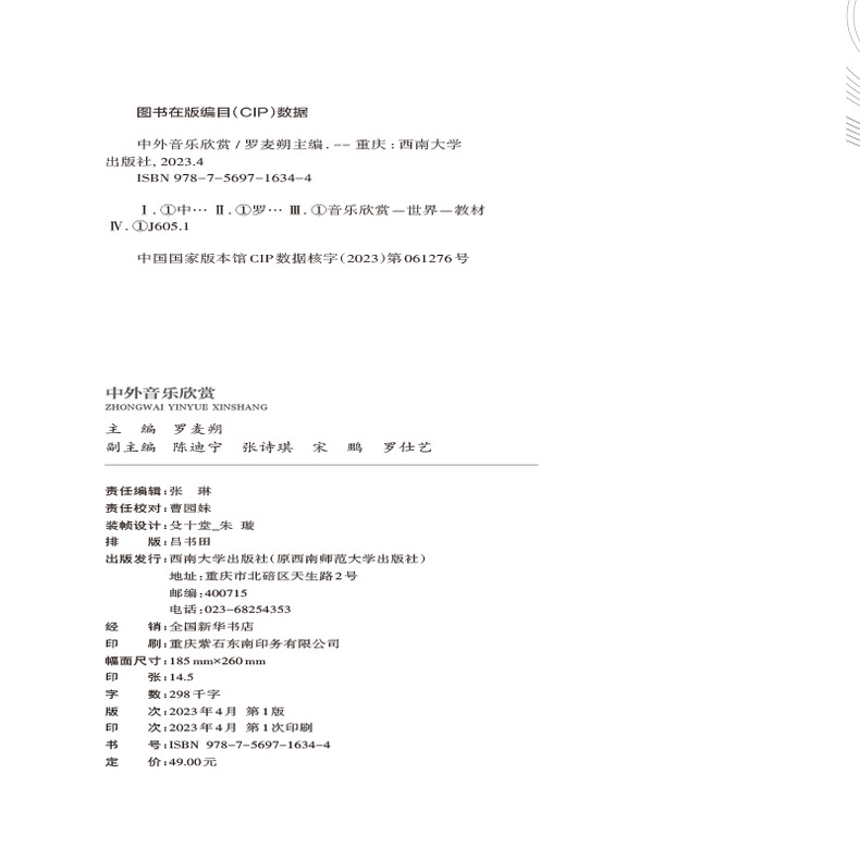 *书名:中外音乐欣赏 | *ISBN:978-7-5697-1634-4 |