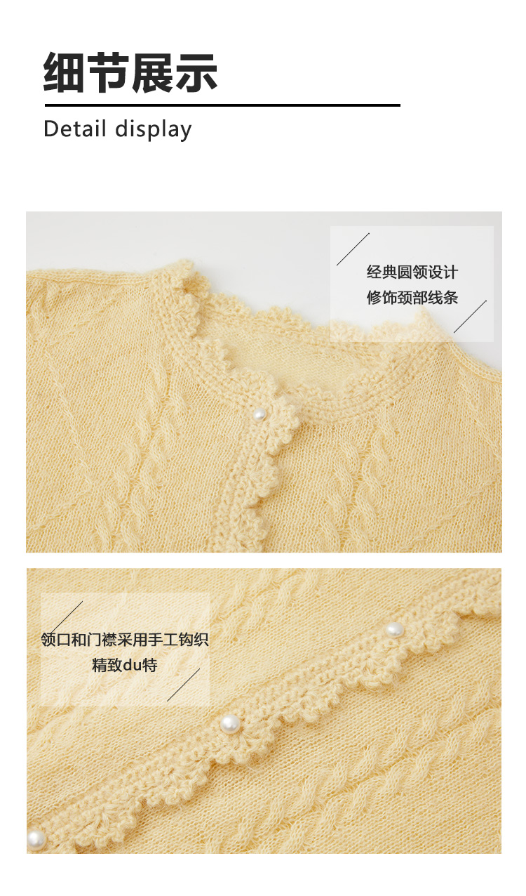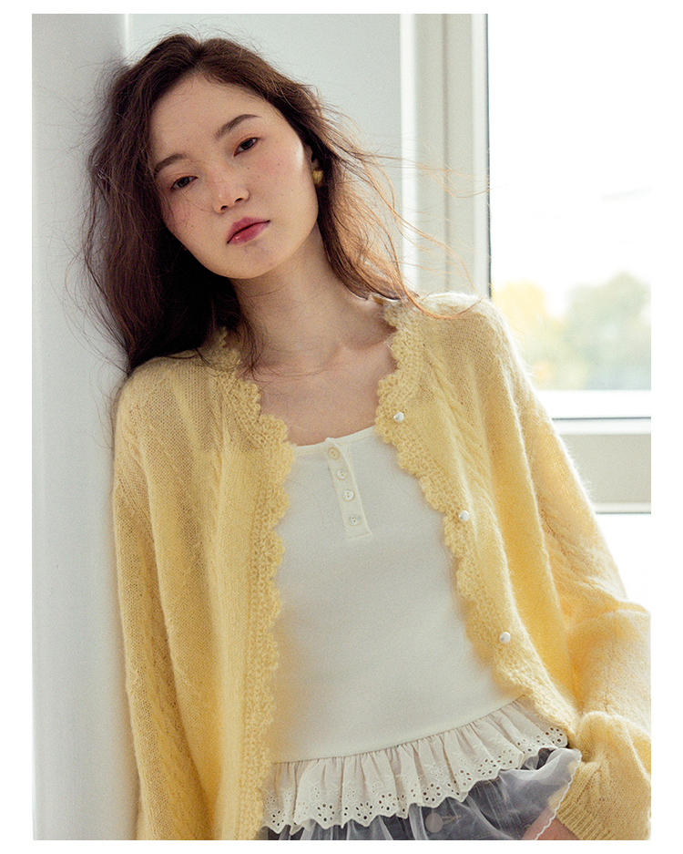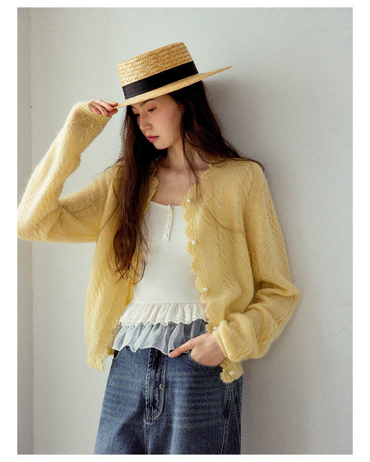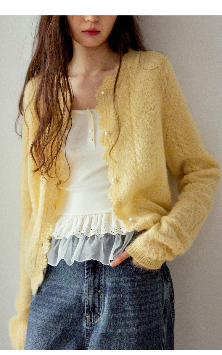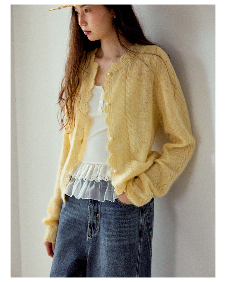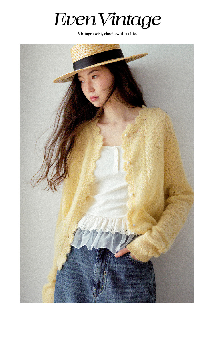 Even Vintage| 马海毛羊毛混纺 手工钩花立体绞花珍珠扣针织开衫