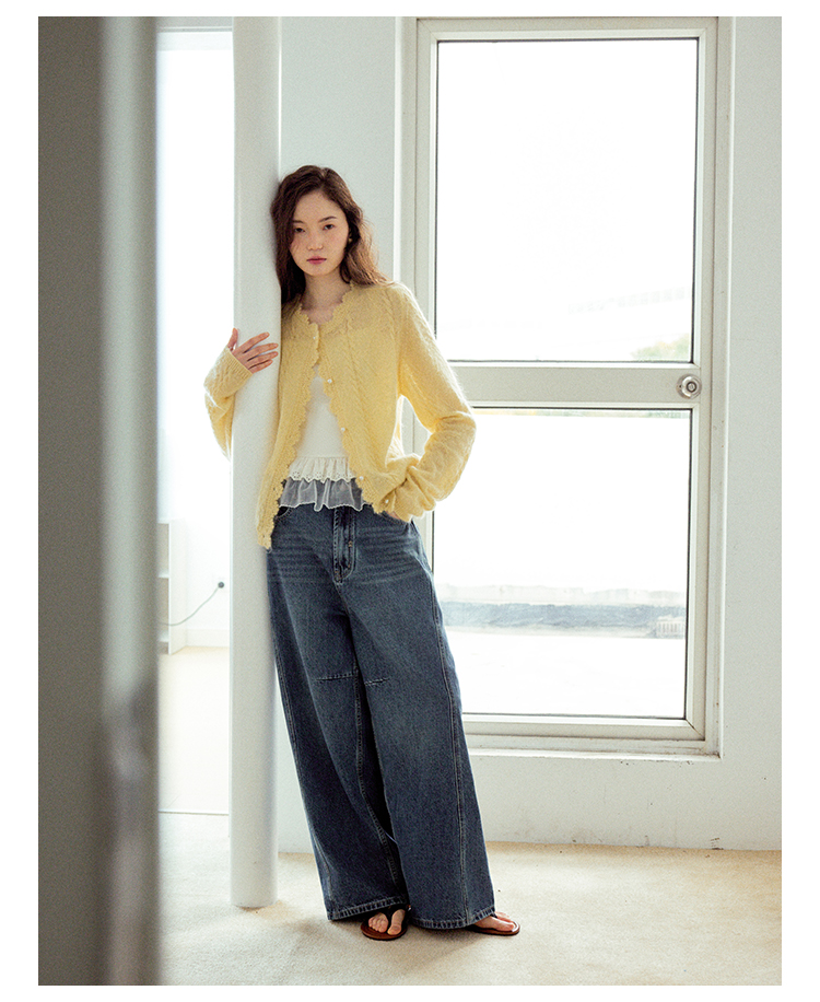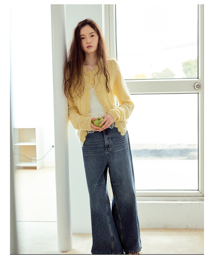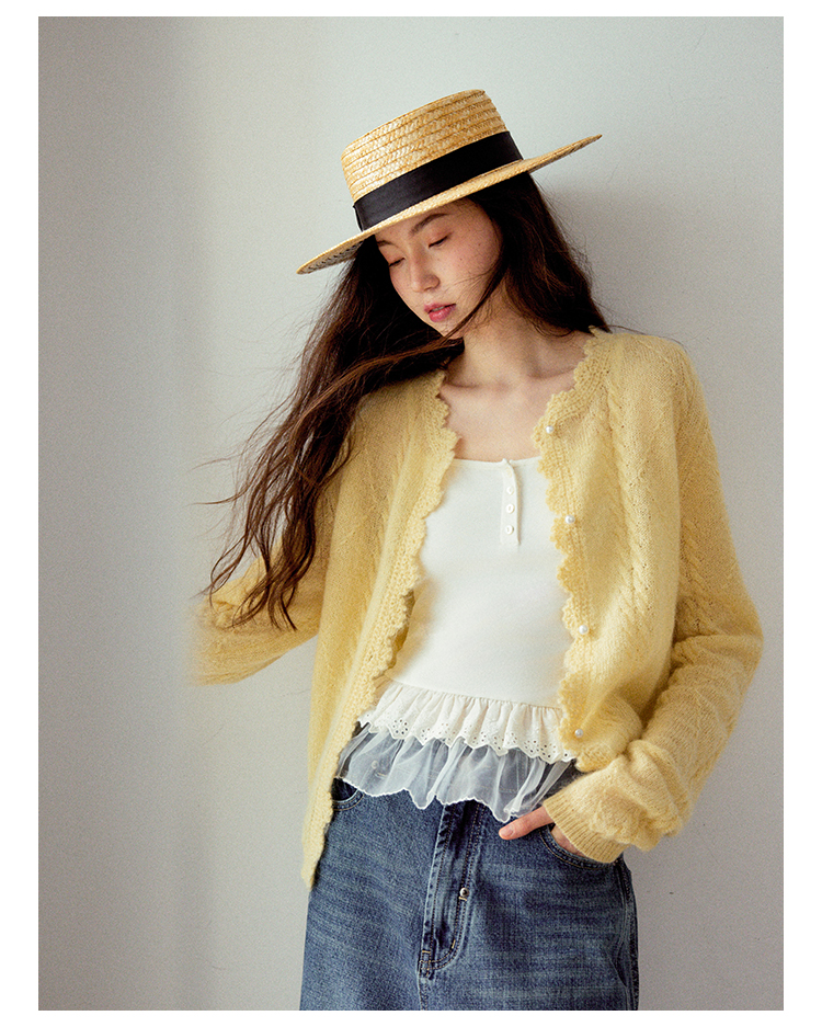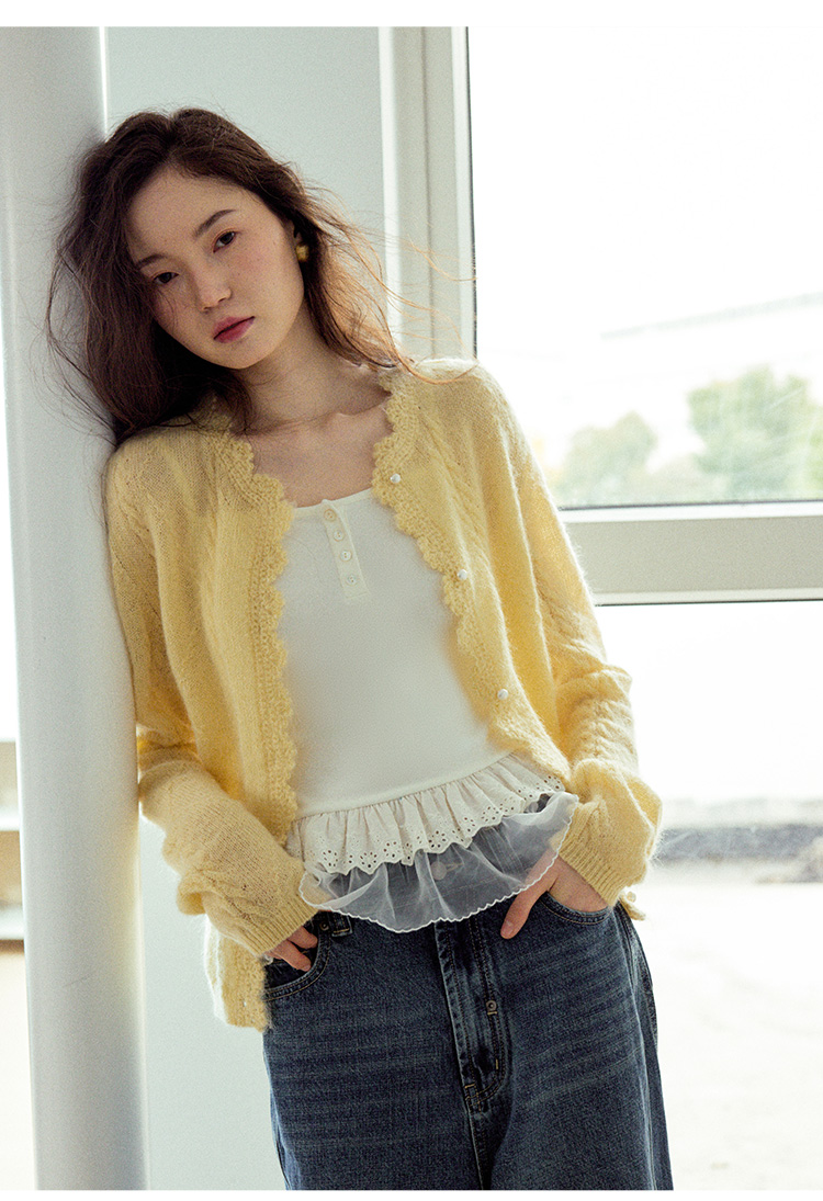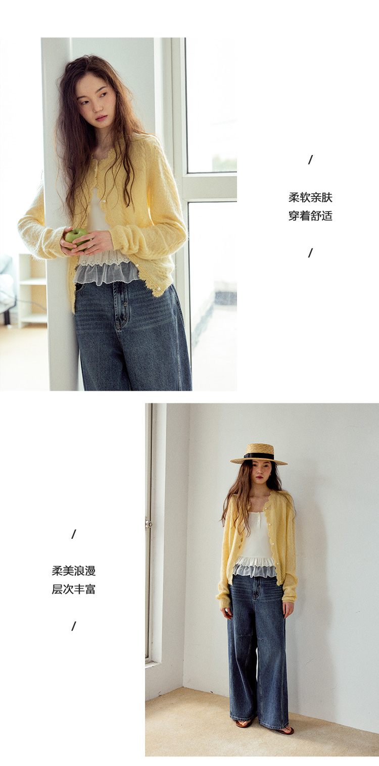 Even Vintage| 马海毛羊毛混纺 手工钩花立体绞花珍珠扣针织开衫