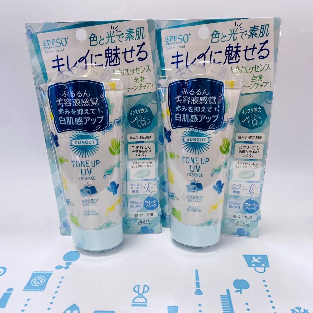 👑高丝 Suncut 防晒调色精华乳液SPF50 80g(红/蓝/绿) 👍新版防晒霜 🙌添加了珍珠般细闪颗粒,可提升自然光泽感 ✨高倍数防晒:SFP501+ PA++++,脸部身体都可用 💦可有效阻隔UVA、UVB,持续12小时 💎质地清爽不油腻,,成膜速度快,延展性的非常好 💯防晒美白的同时还能达到“稍微”遮瑕效果 💖干皮油皮的宝宝都适用 🔅*粉色:适合冷白皮,想要血色感的效果 🔅*蓝色:适合想要白嫩肌底需求 🔅*绿色:适合红血丝泛红皮肤修正的人群使用