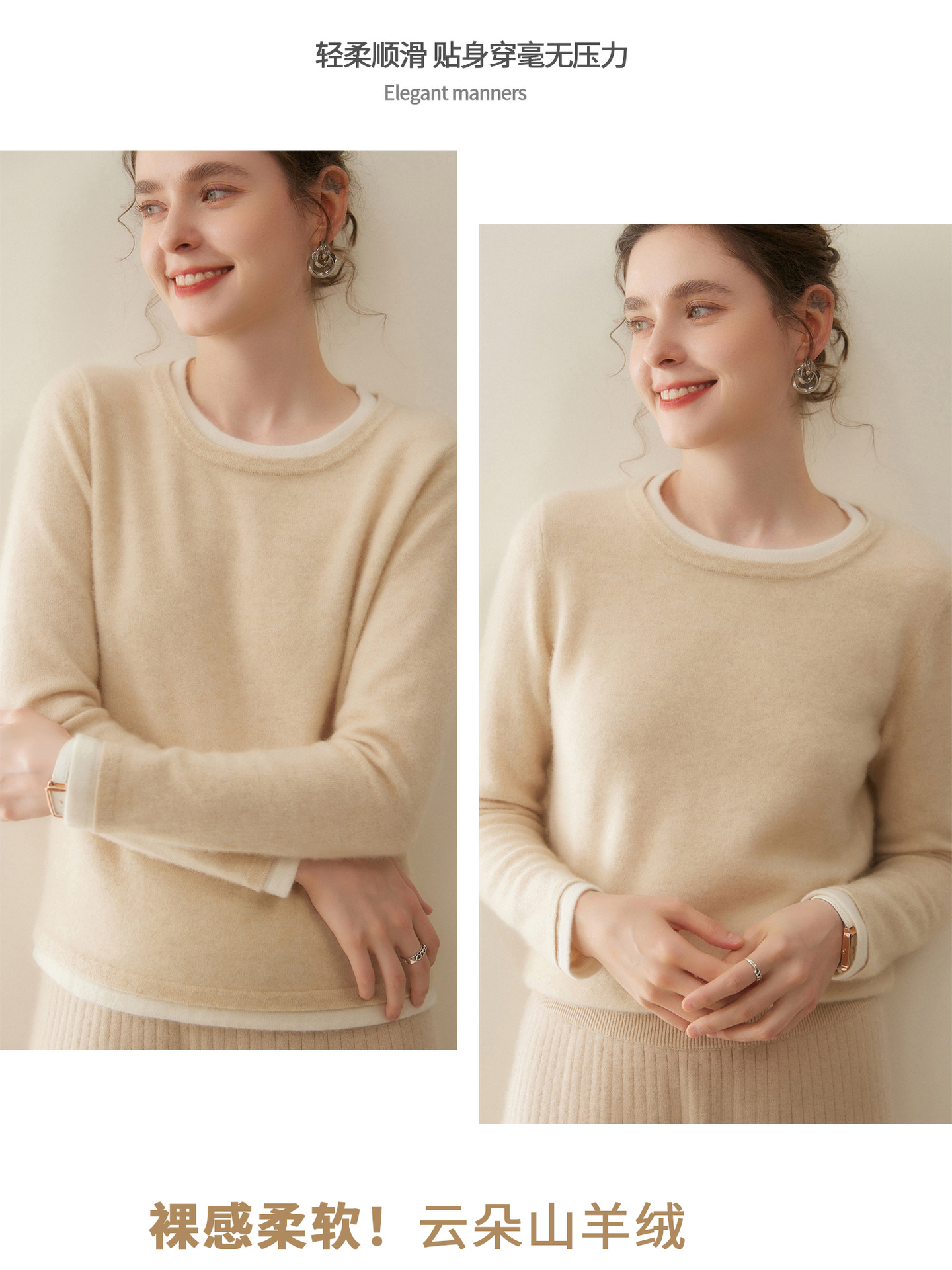 「高货rig」全新升级【铂金会员422/天猫569/差价147】(05355)洛诗琳气质假两件羊绒衫2025冬季新款显瘦百搭针织毛衣女