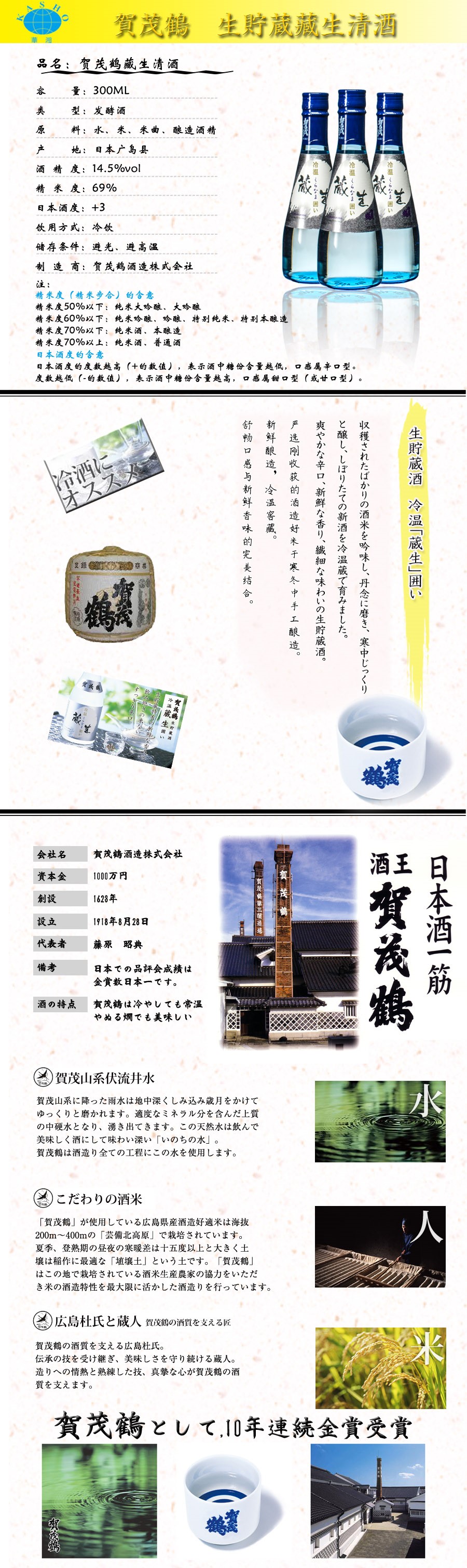 【华湘 贺茂鹤】 蔵生清酒300ML/瓶(无拎袋无盒)