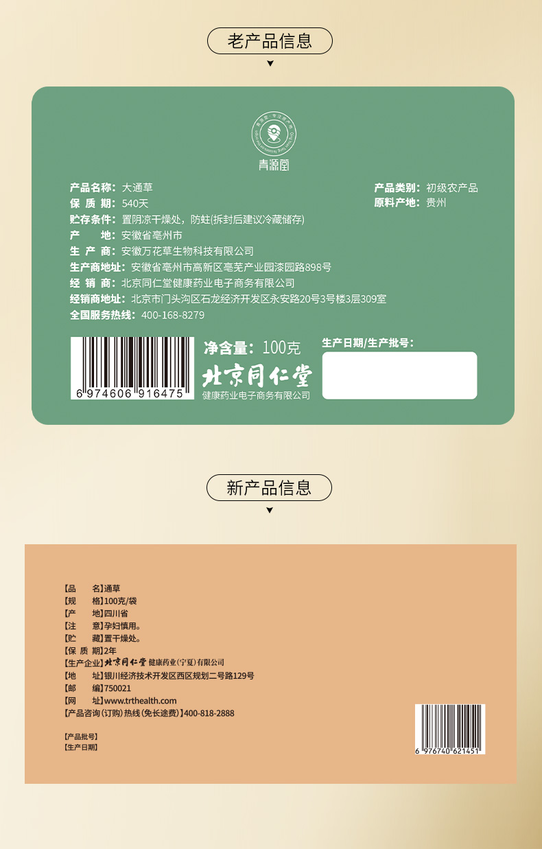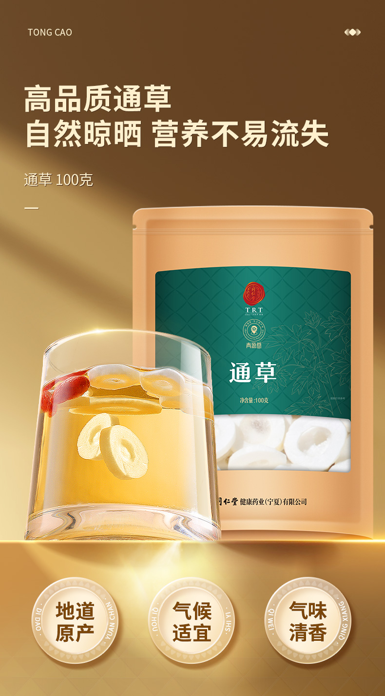 【正宗同仁堂品牌】北京同仁堂 青源堂 大通草100克 贵州严选 根茎饱满SY