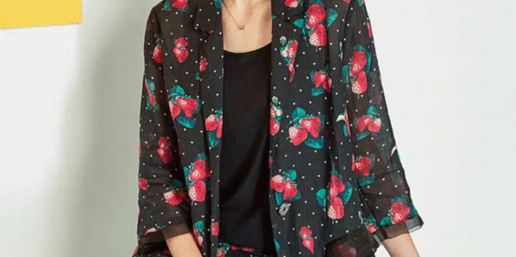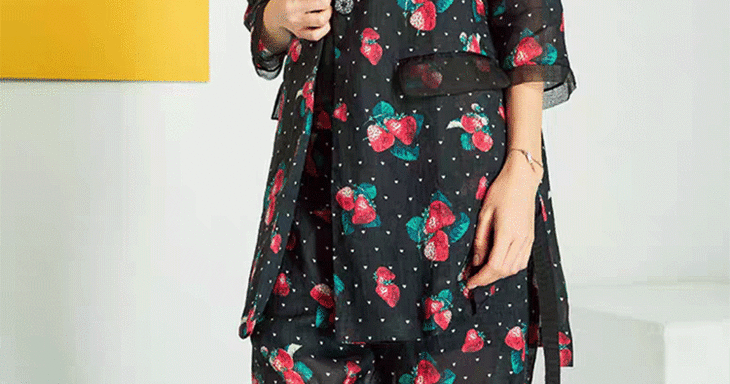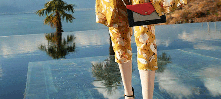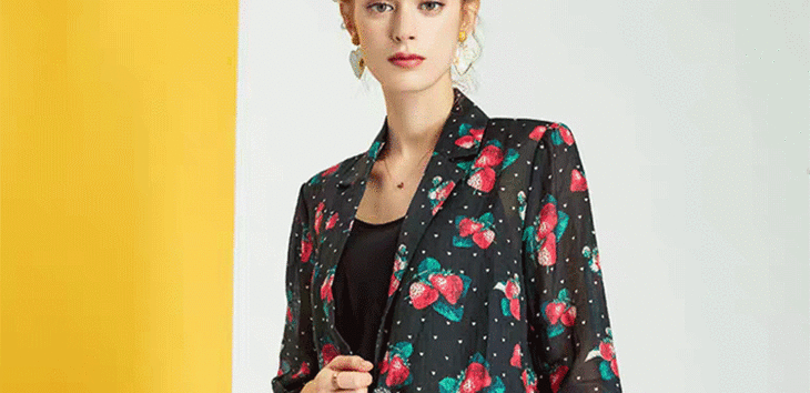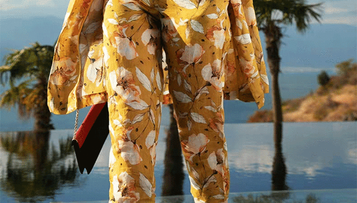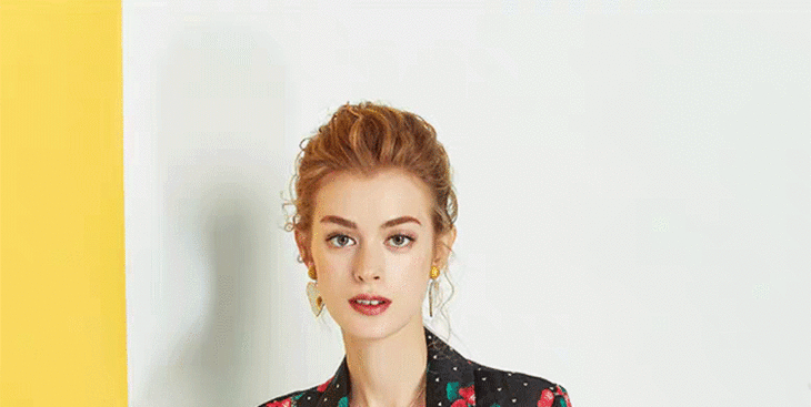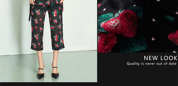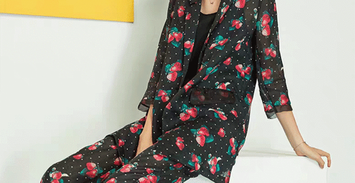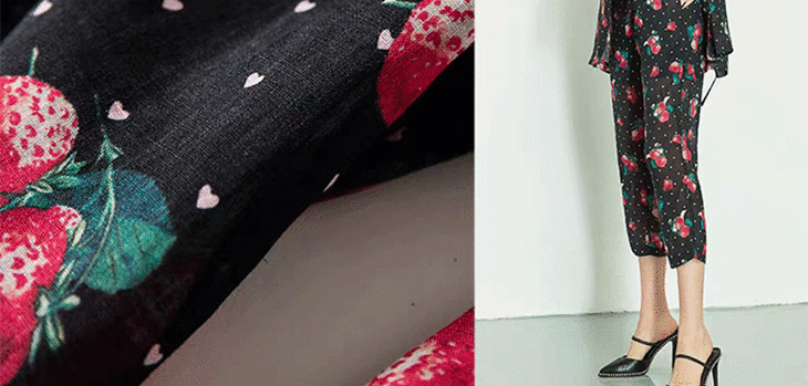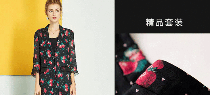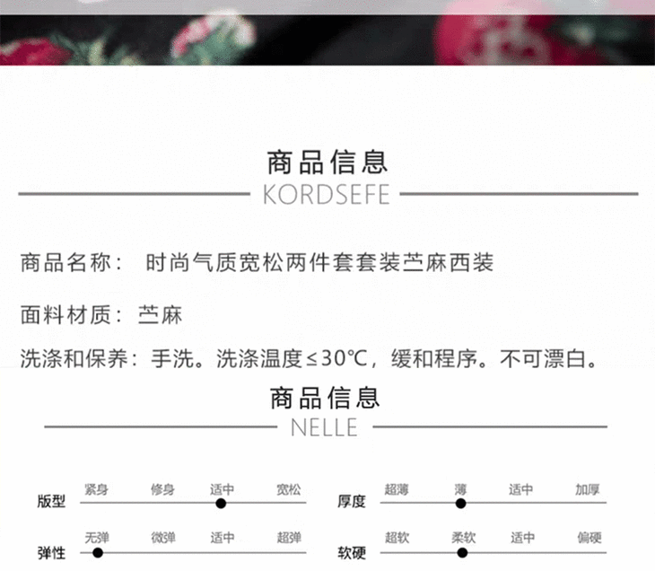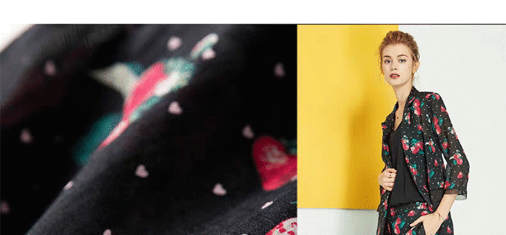 岐氏姐妹 春夏新装苎麻时尚套装女印花中长款苎麻西装休闲裤两件套20-123-DS399