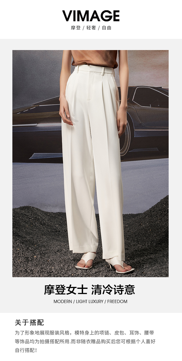 VIMAGE/纬漫纪秋季新款高腰宽松显瘦休闲裤V1805410