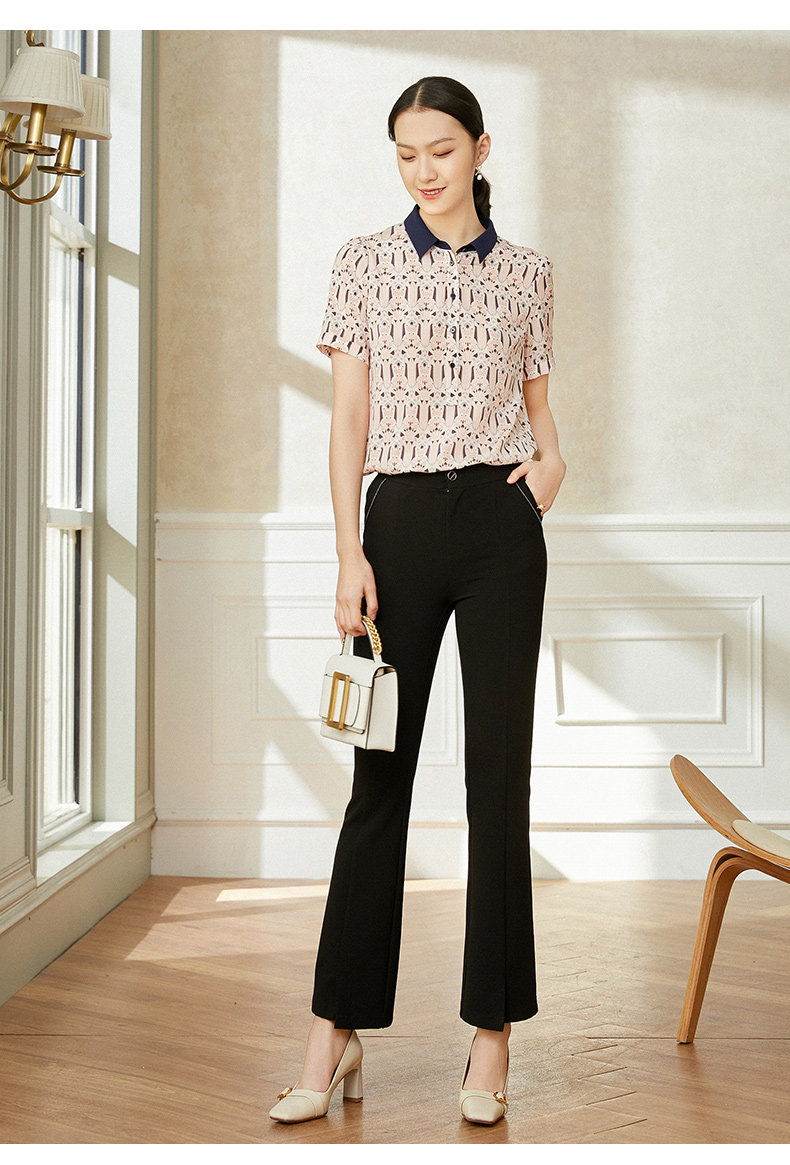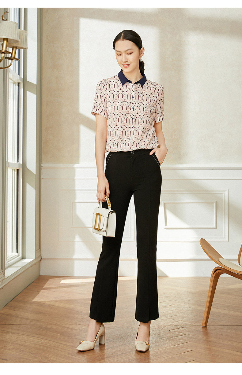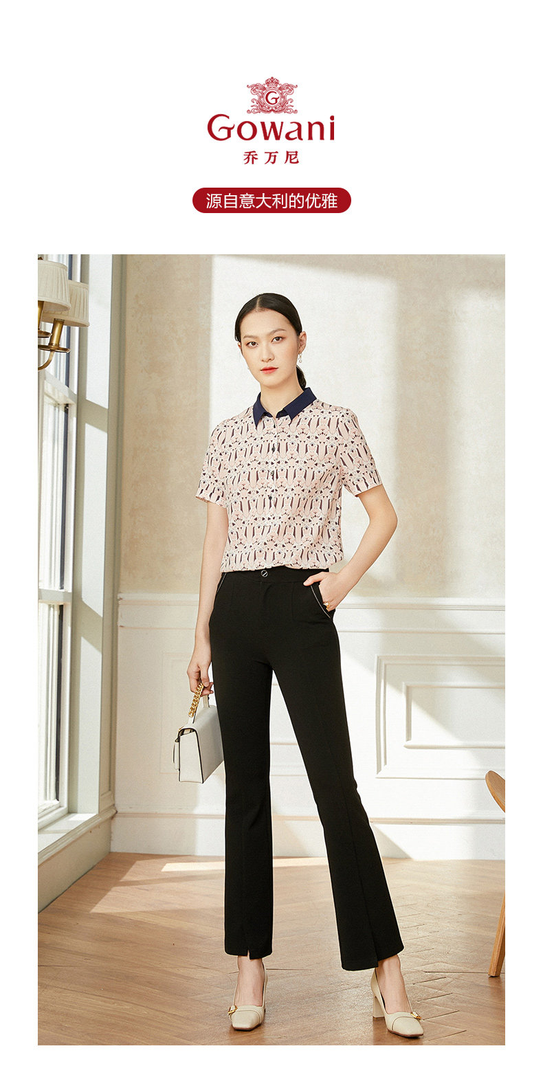 乔万尼真丝衬衫女撞色拼接设计简约印花桑蚕丝EI2C748