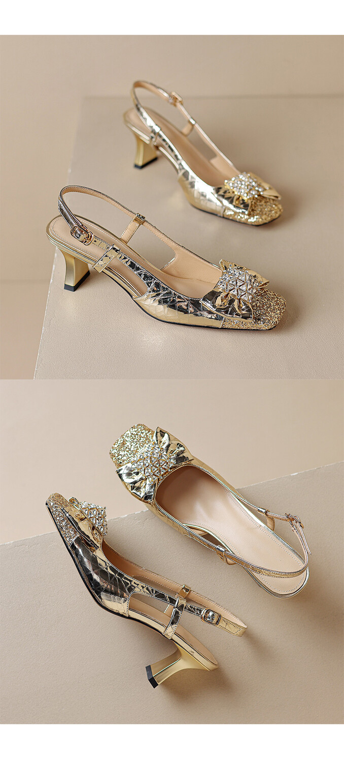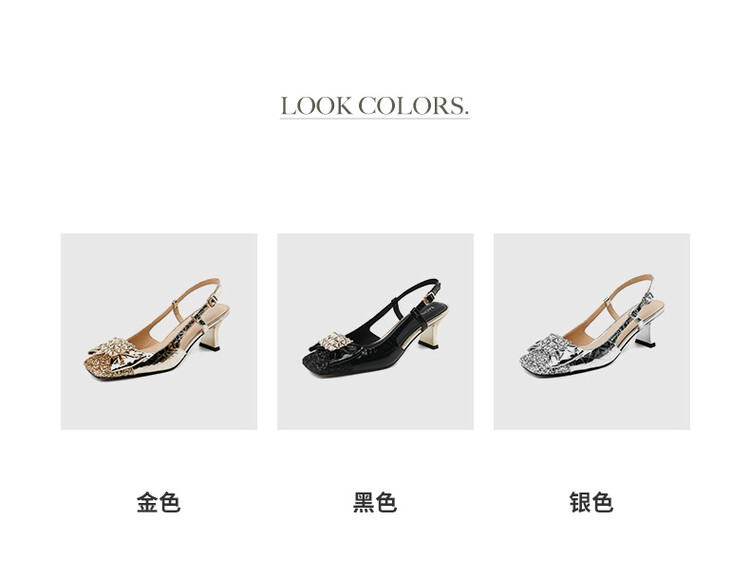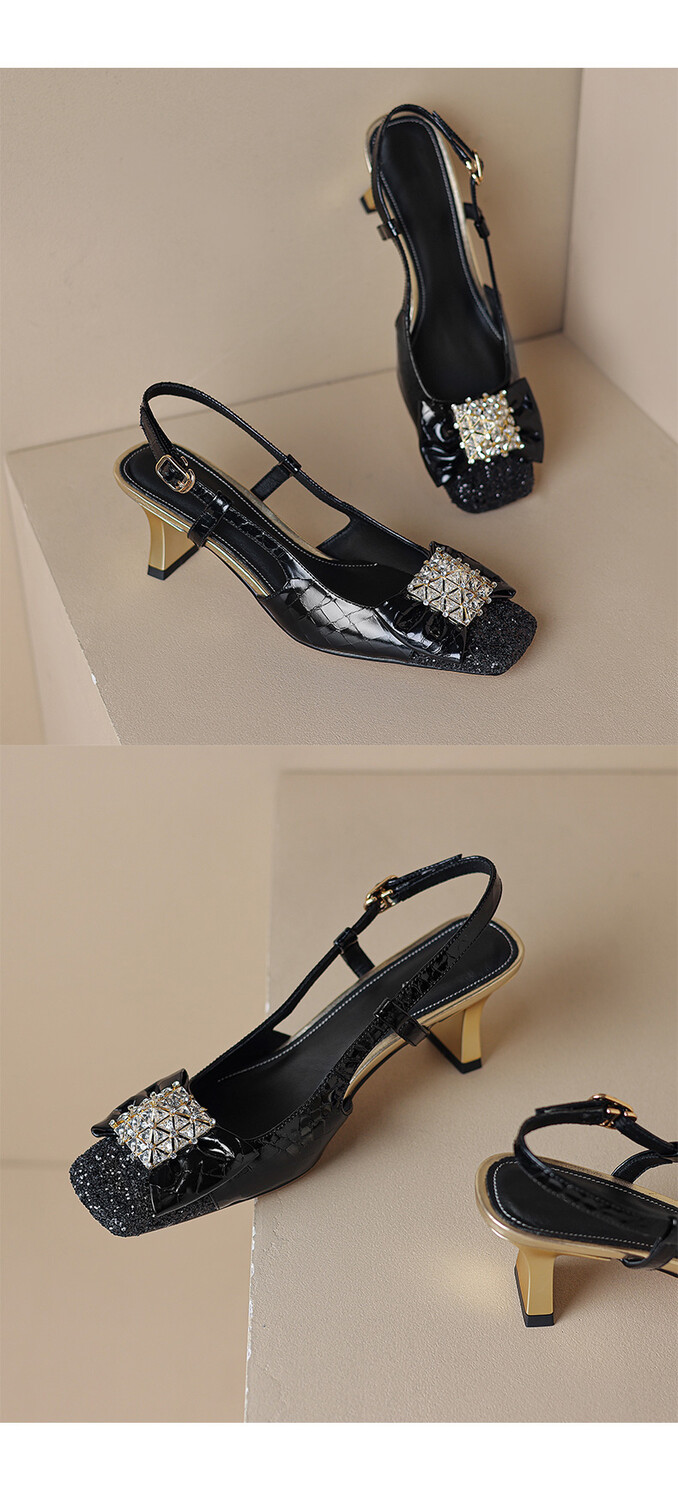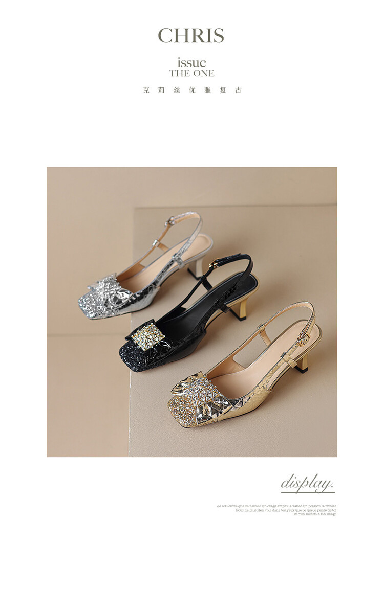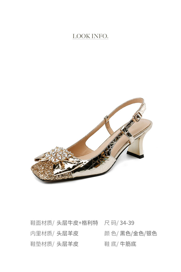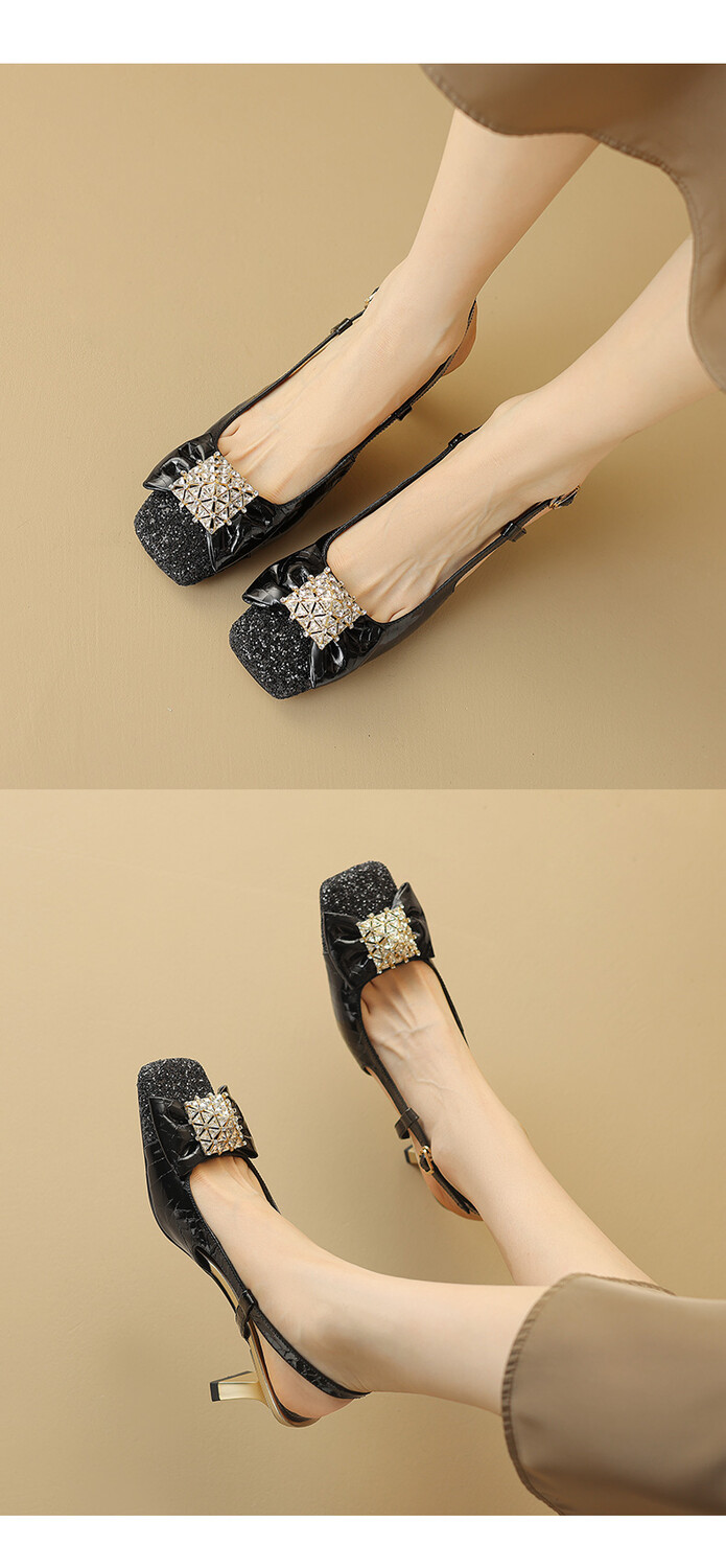 【预售5天】超好看中国风方头蝴蝶结后空粗跟包头配裙子旗袍时尚水钻凉鞋NDXC&6586