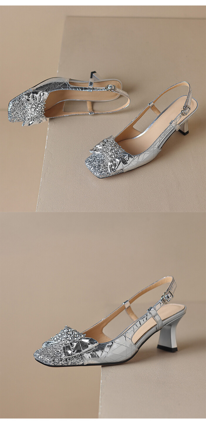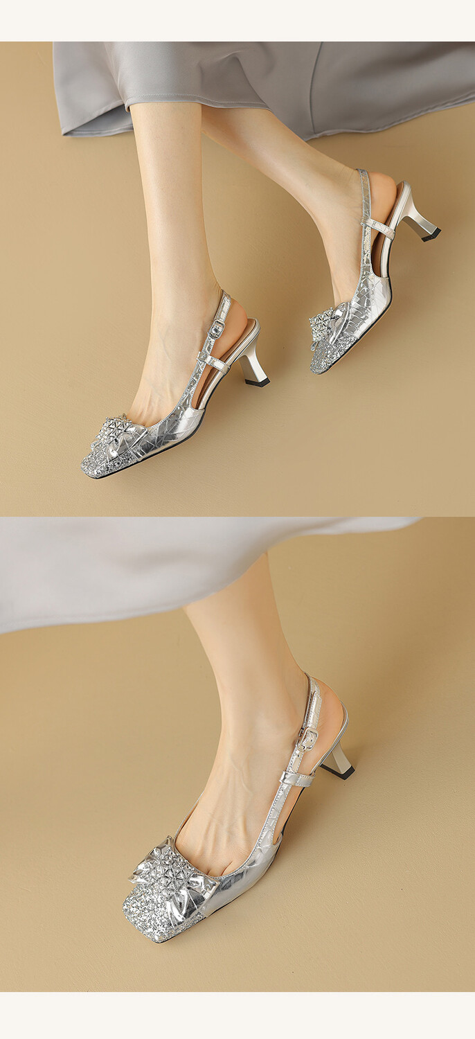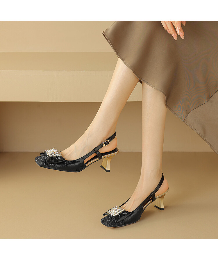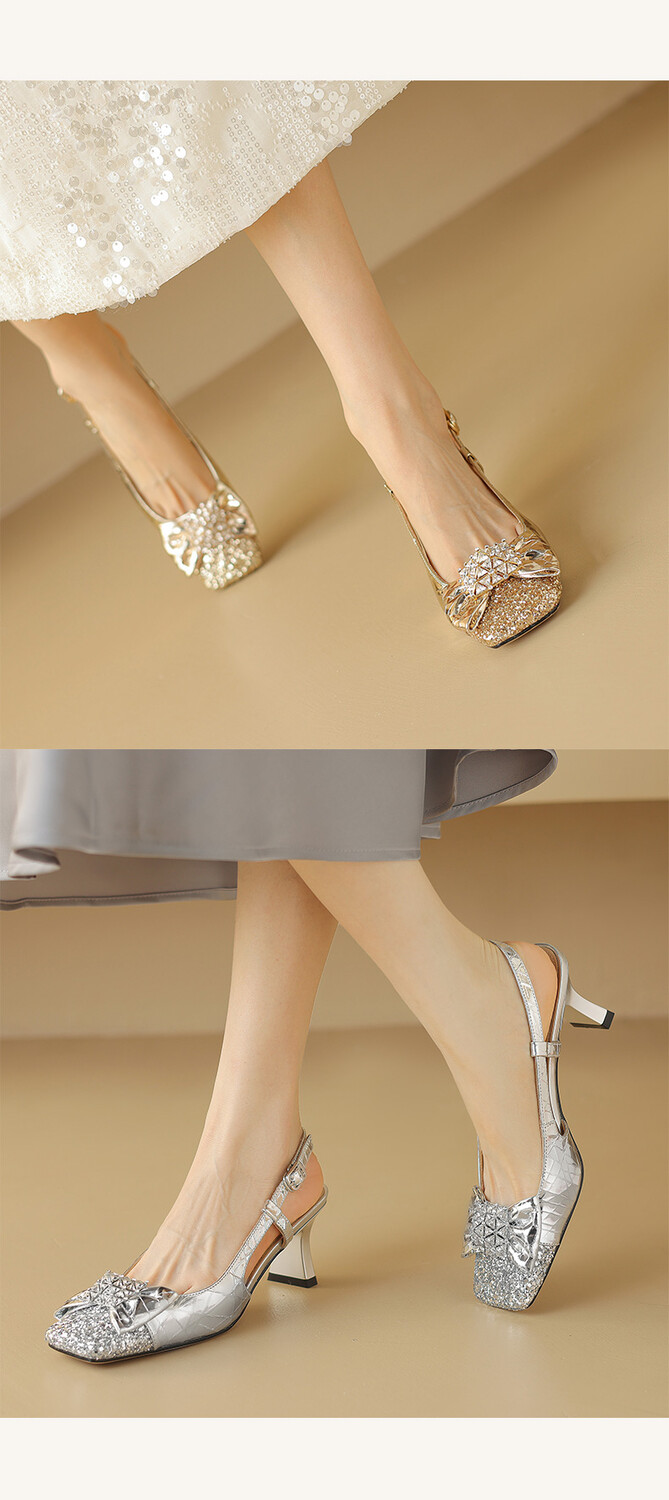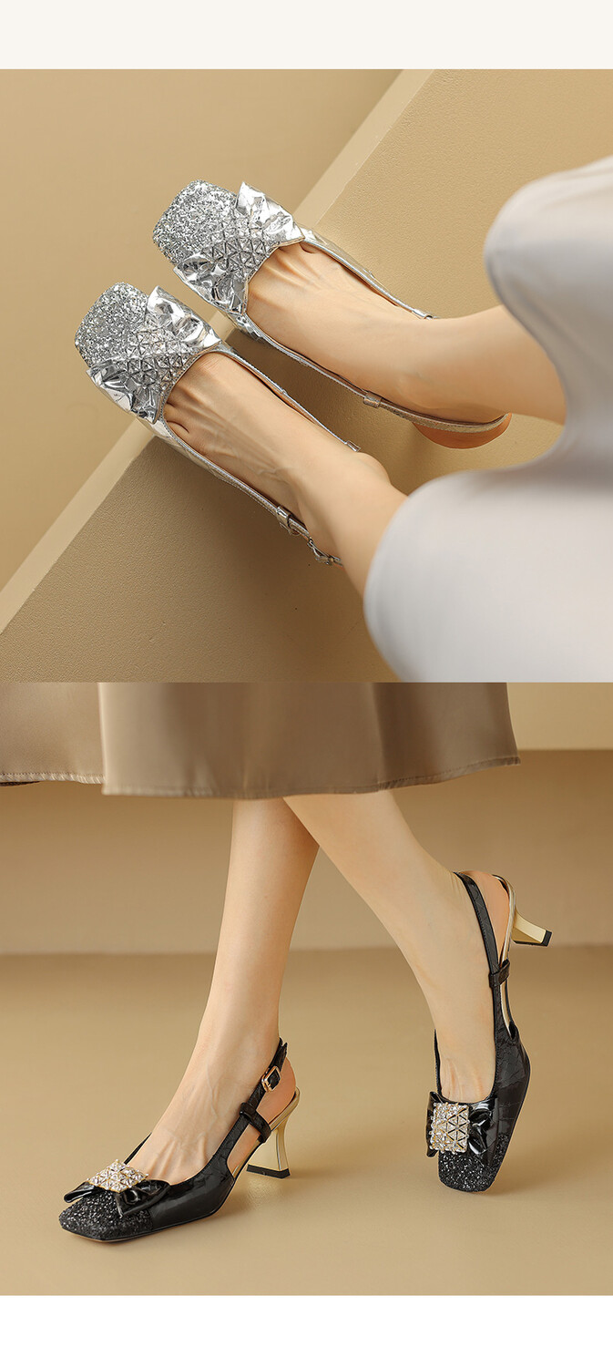 【预售5天】超好看中国风方头蝴蝶结后空粗跟包头配裙子旗袍时尚水钻凉鞋NDXC&6586