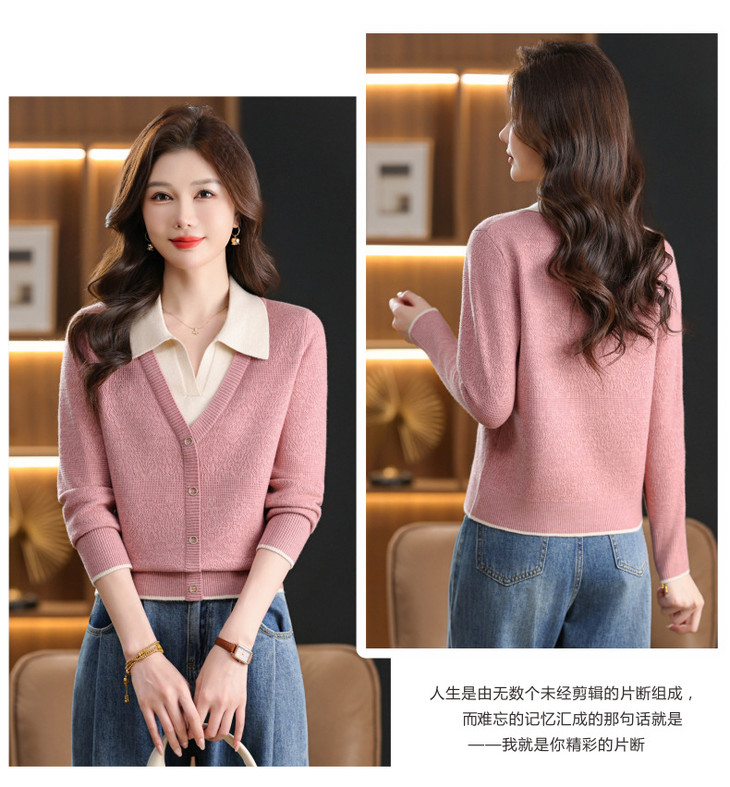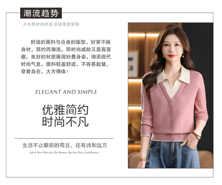 翻领宽松显瘦长袖,内搭假两件针织衫CC-103-97871