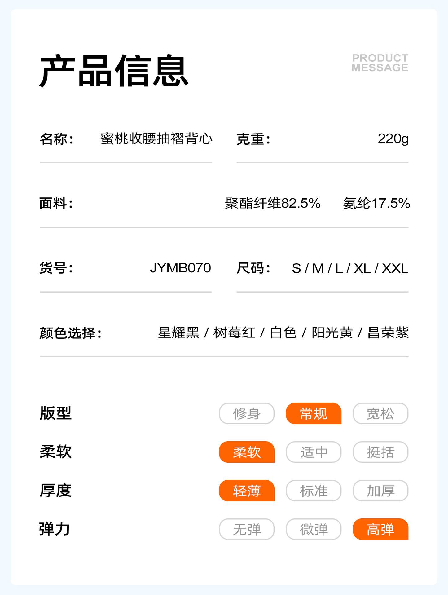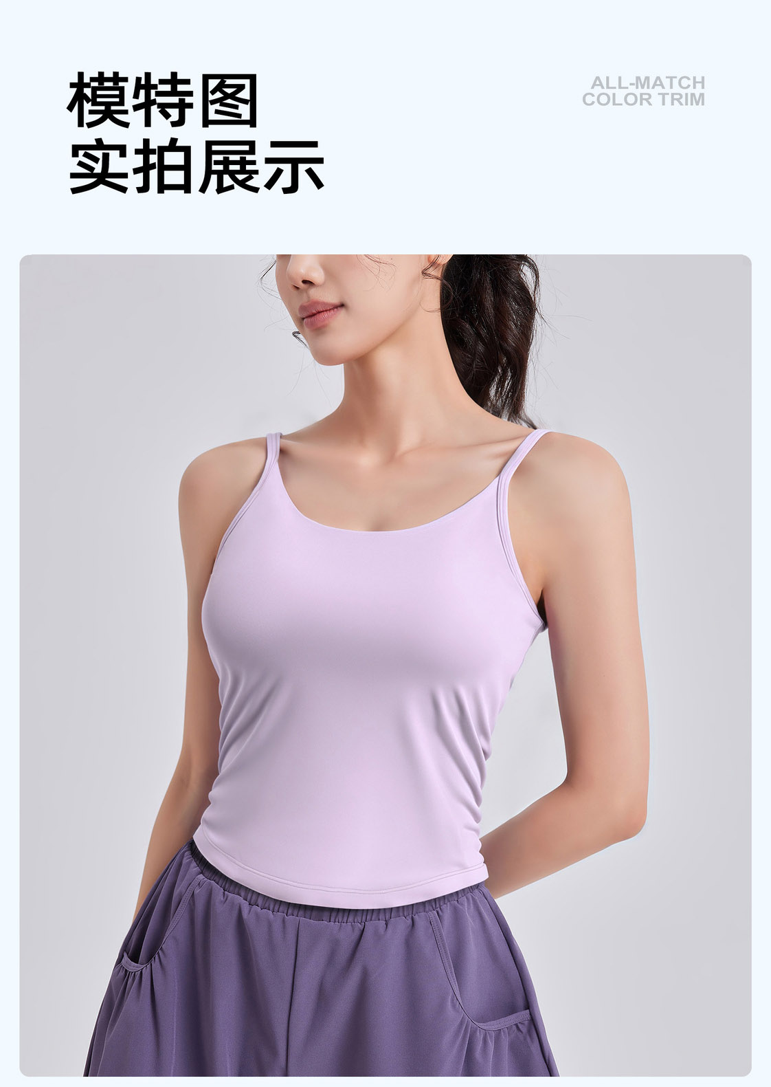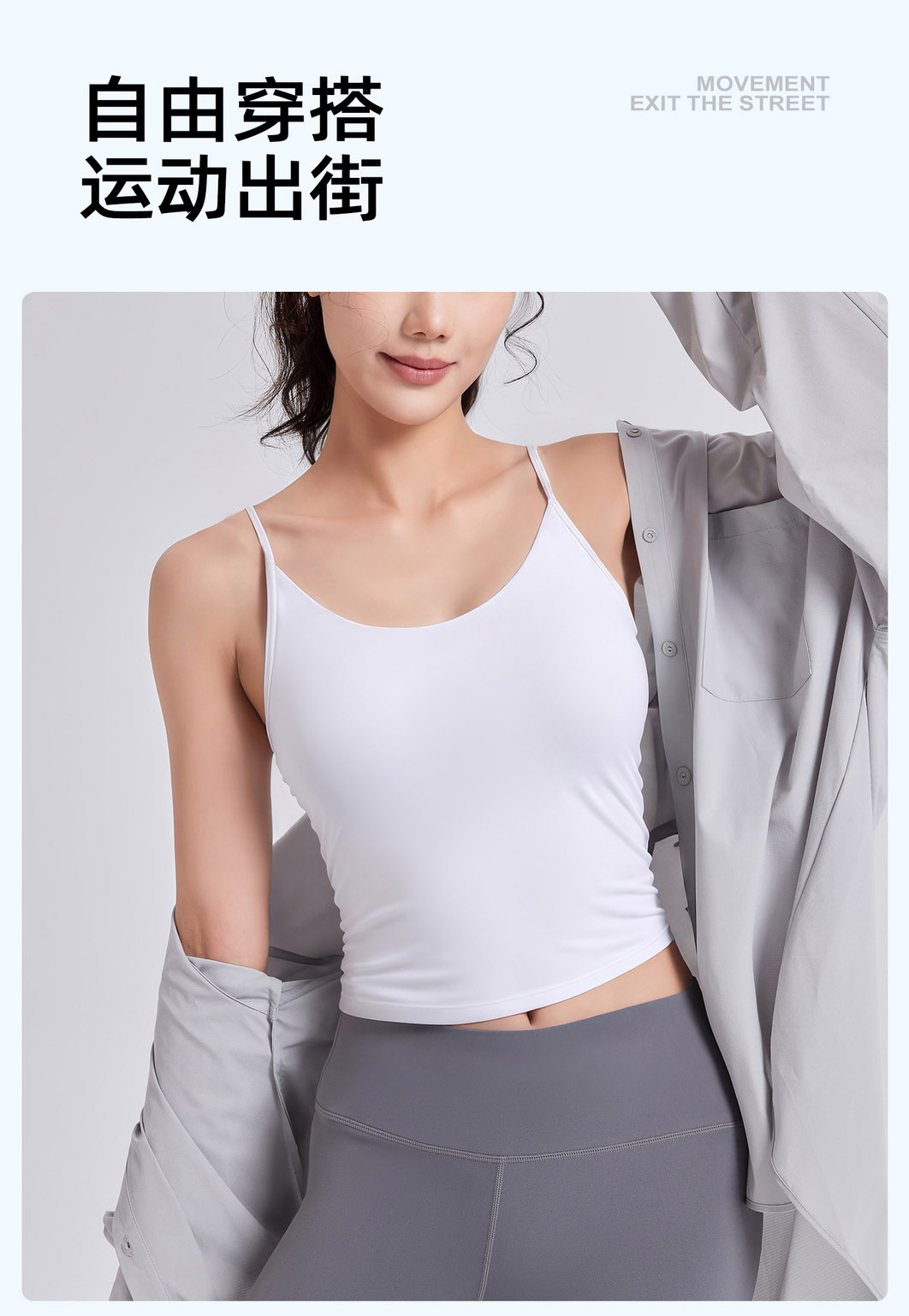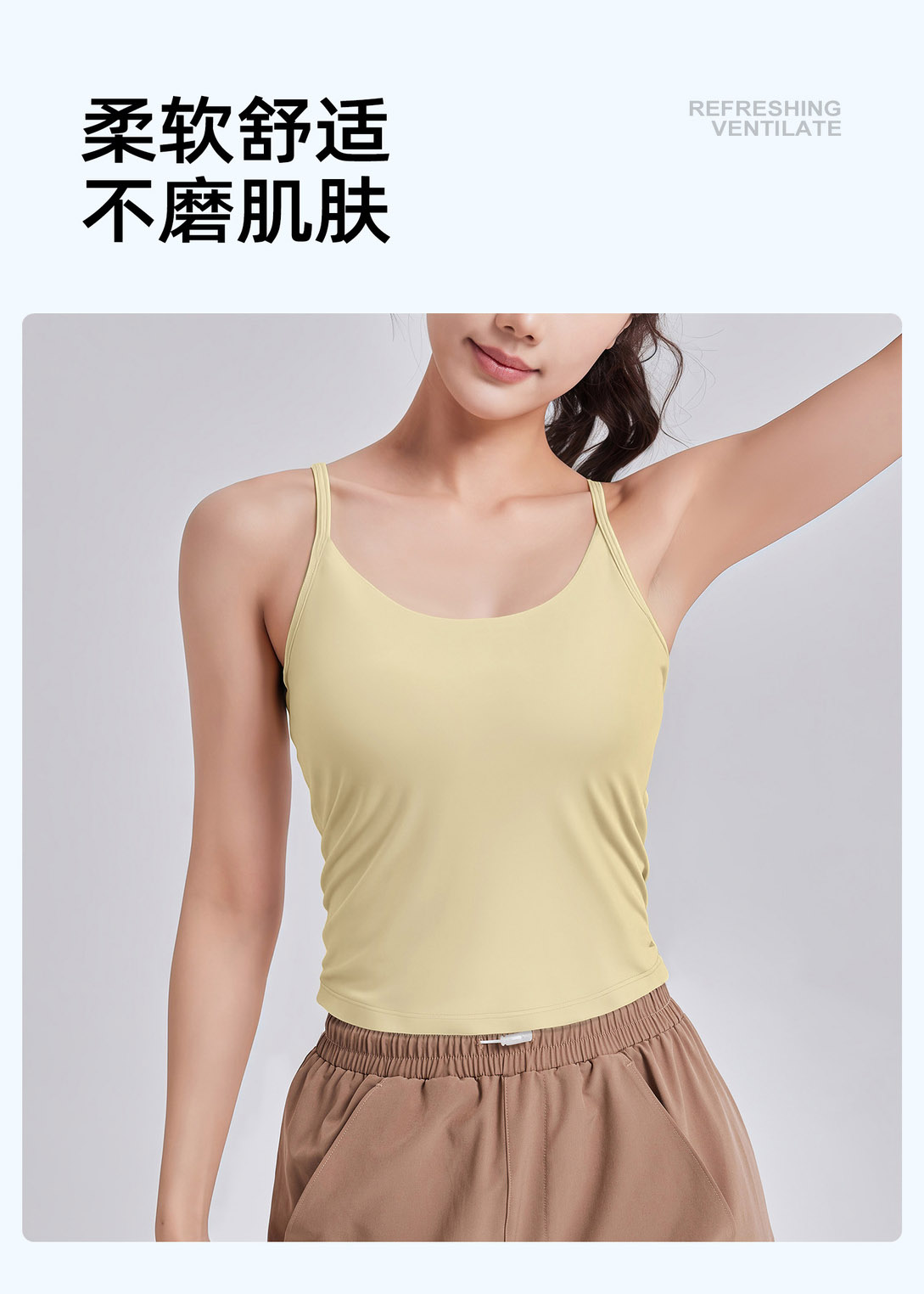 跃牌【瑜堂系列】收腰抽褶背心防震固定杯吊带文胸健身内搭运动内衣女JYMB070