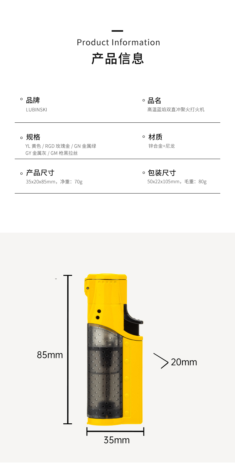 Lubinski鲁宾斯基多功能便携雪茄打火机 双火焰雪茄钻
