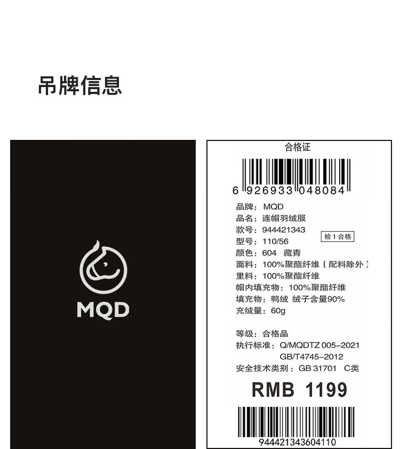【秒】【MQD】【三防】童装男童连帽羽绒服冬季儿童加厚外套