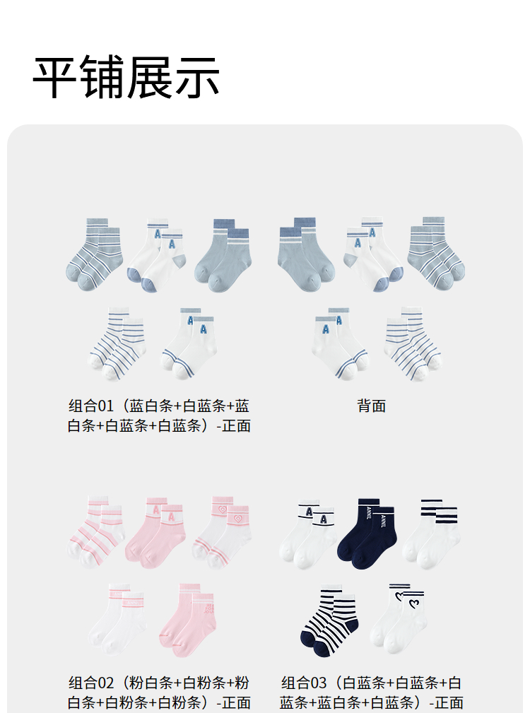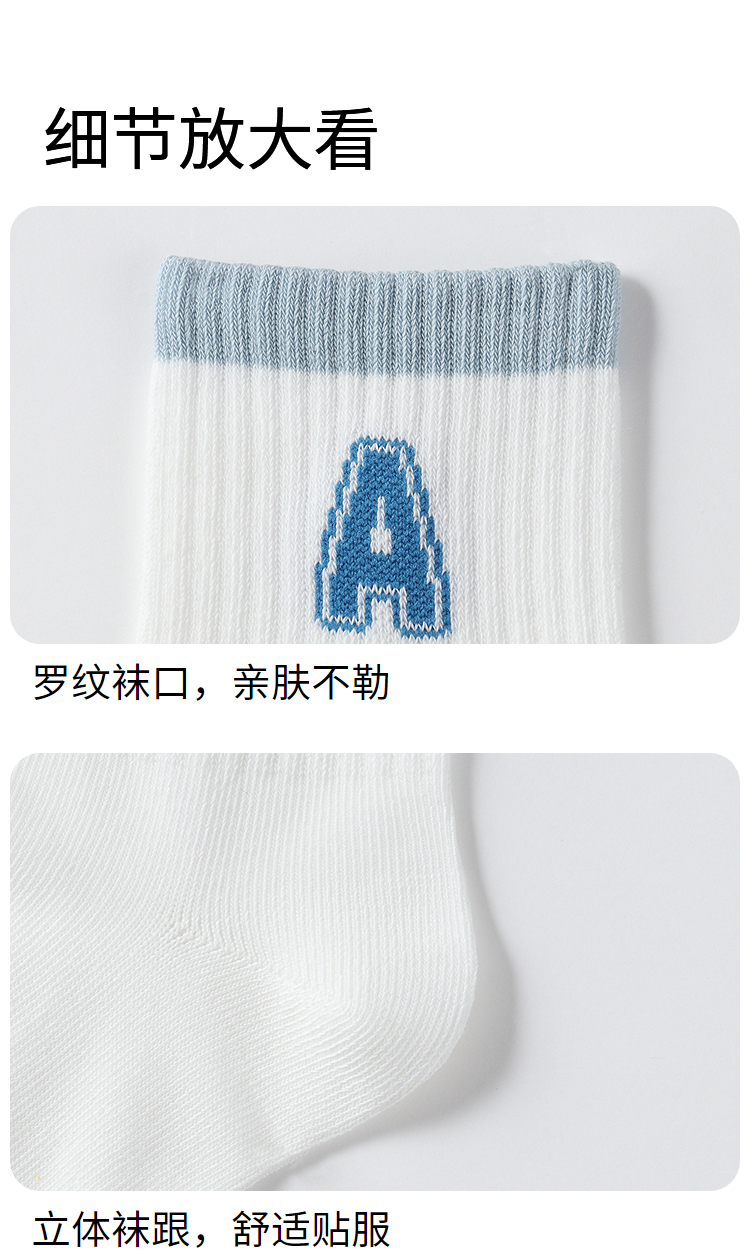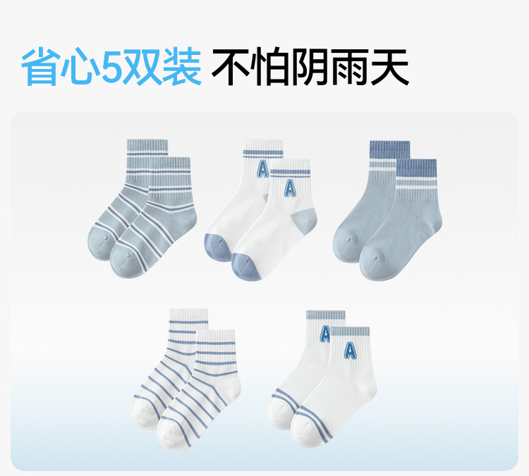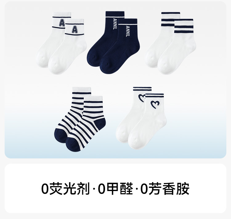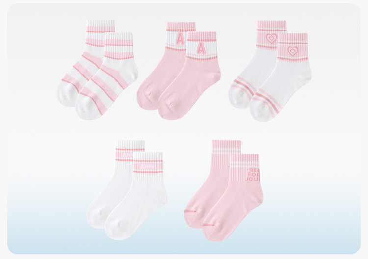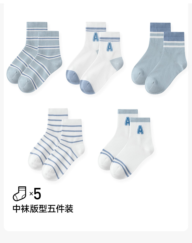 【5A抗菌棉袜】男女童短袜中袜五双装秋季新款安奈儿童装JM537642