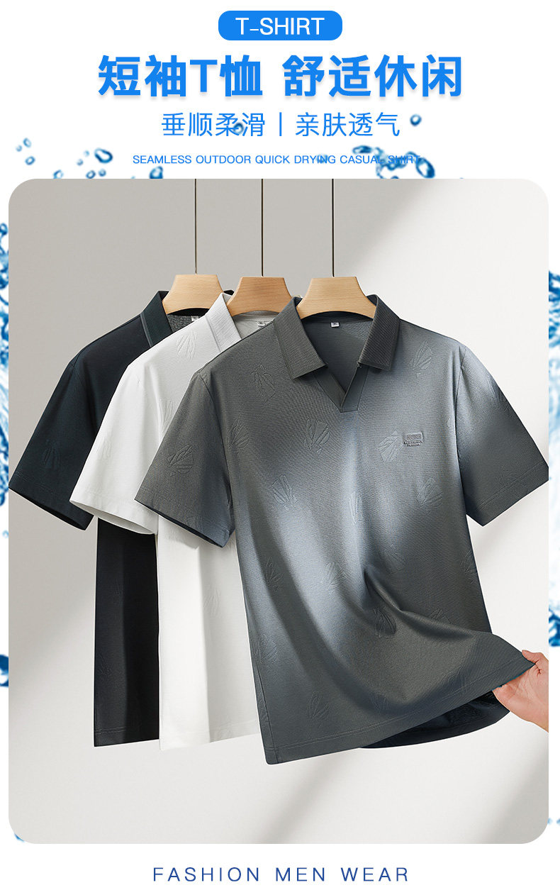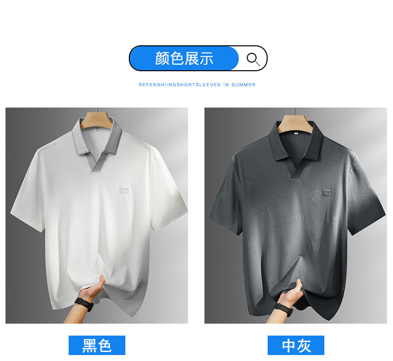 【DPF】大依优型大码男装夏季小V领短袖POLO衫商务休闲透气上衣棉质T恤