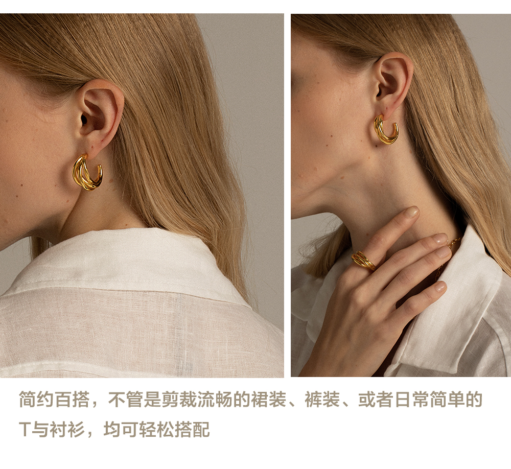 时尚简约 UNFOLDS 多重奏不规则耳环 The Quartet Earrings Gold / Silver