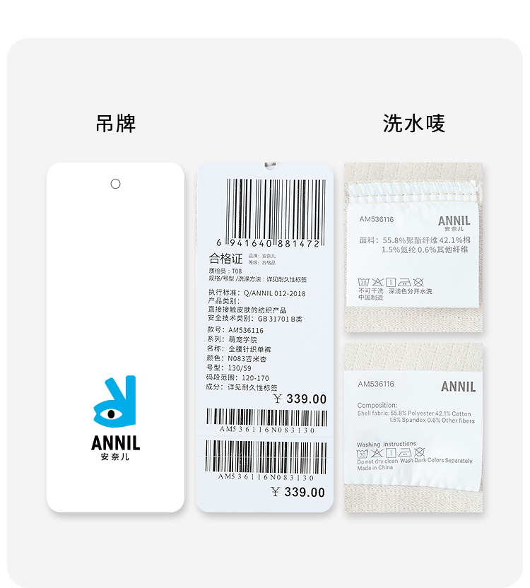 【实体店同款】男女童全腰针织单裤秋季新款安奈儿童装AM536116