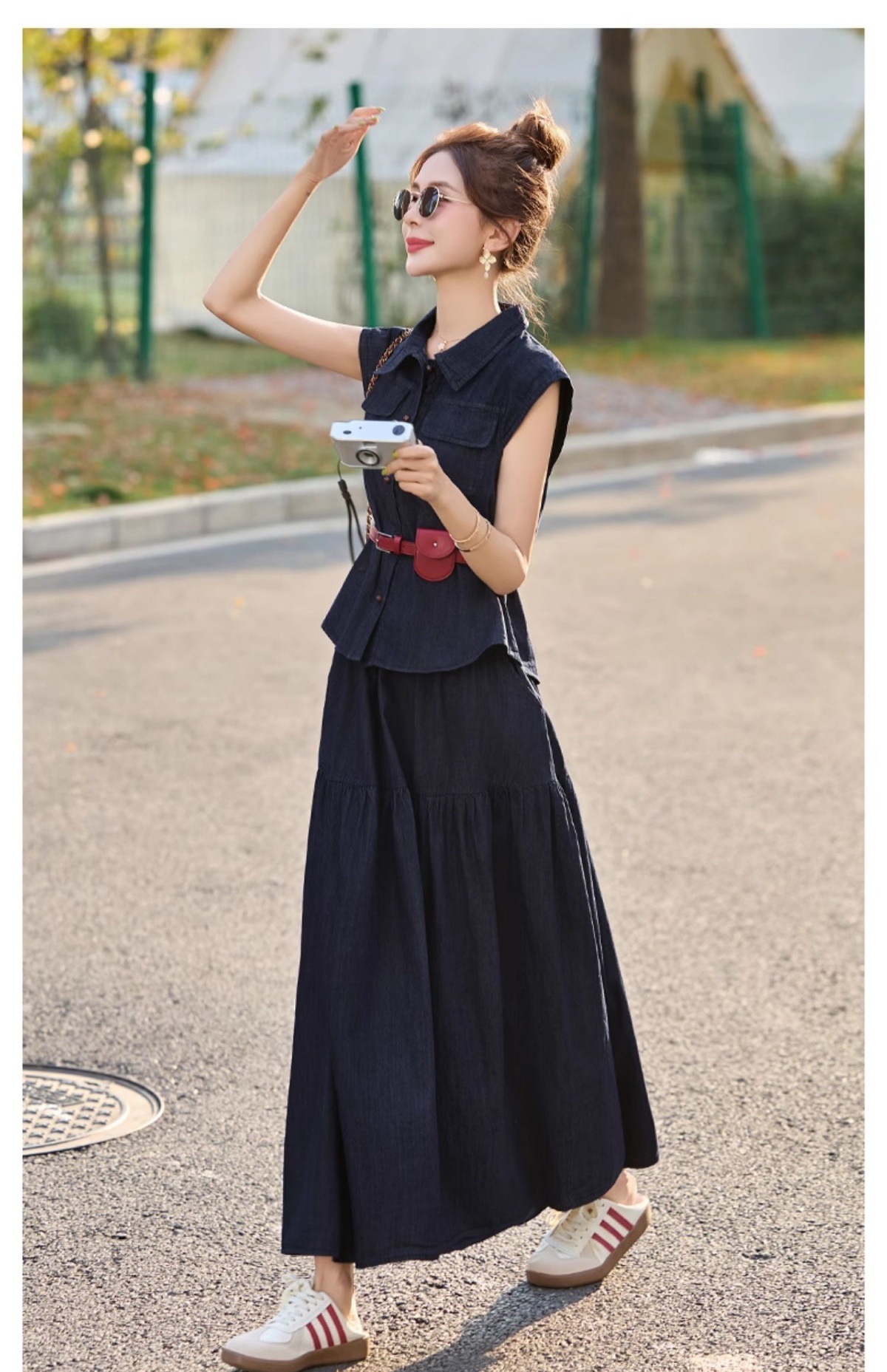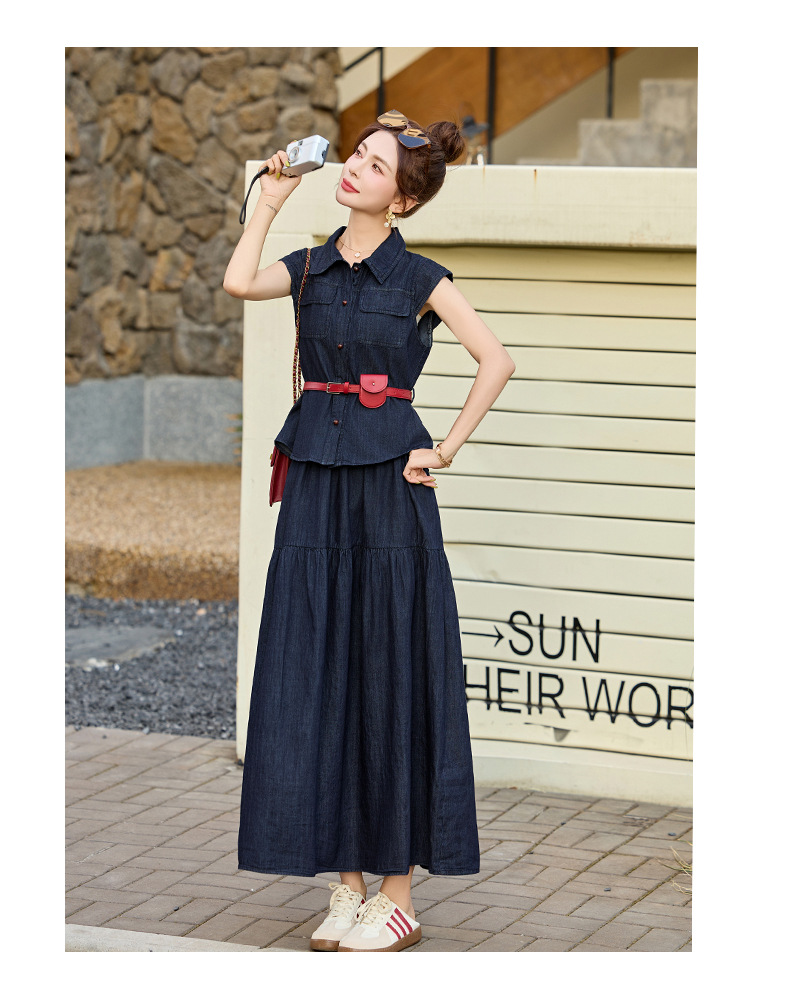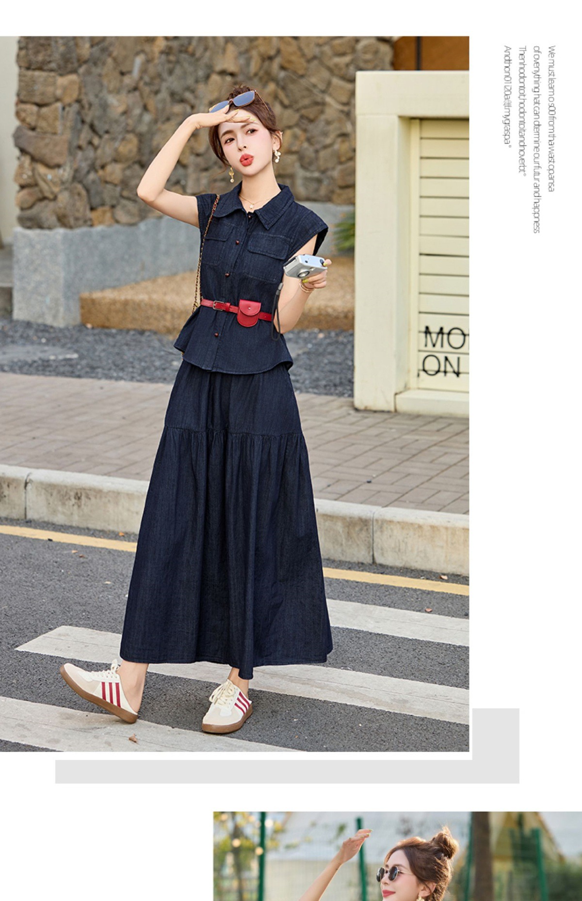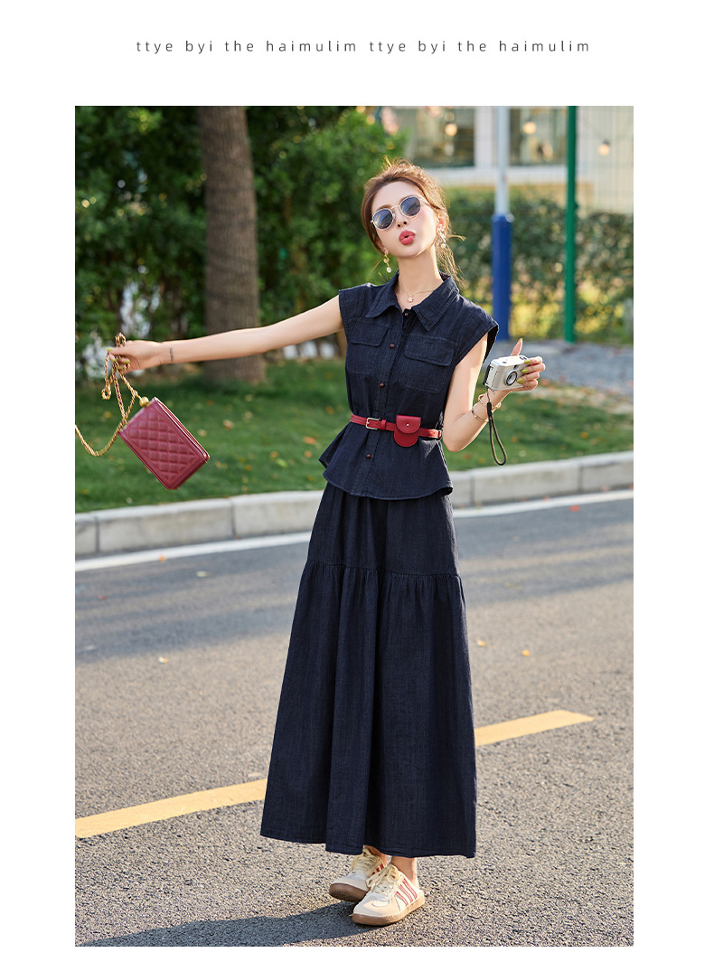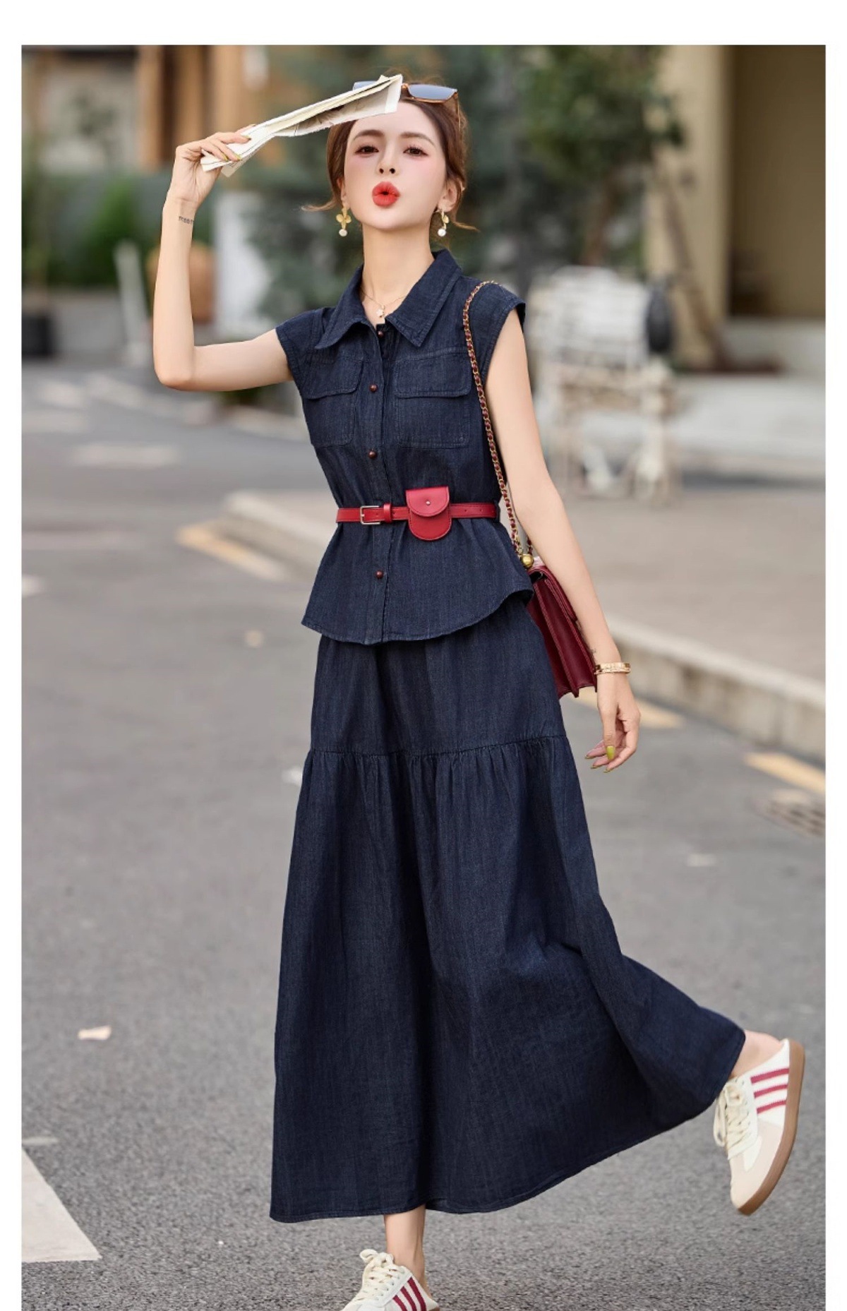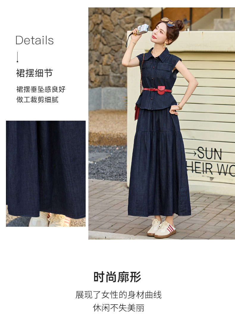 时尚无袖牛仔裙子气质减龄薄款两件套裙 BBL2568