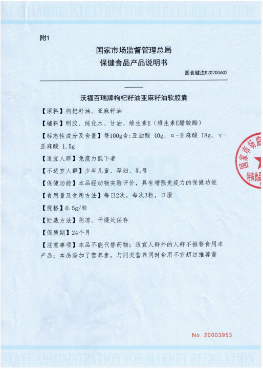 杞冠严选 | 沃福百瑞 枸杞籽油亚麻籽油软胶囊 瓶装90粒 产量稀少 滴滴珍贵