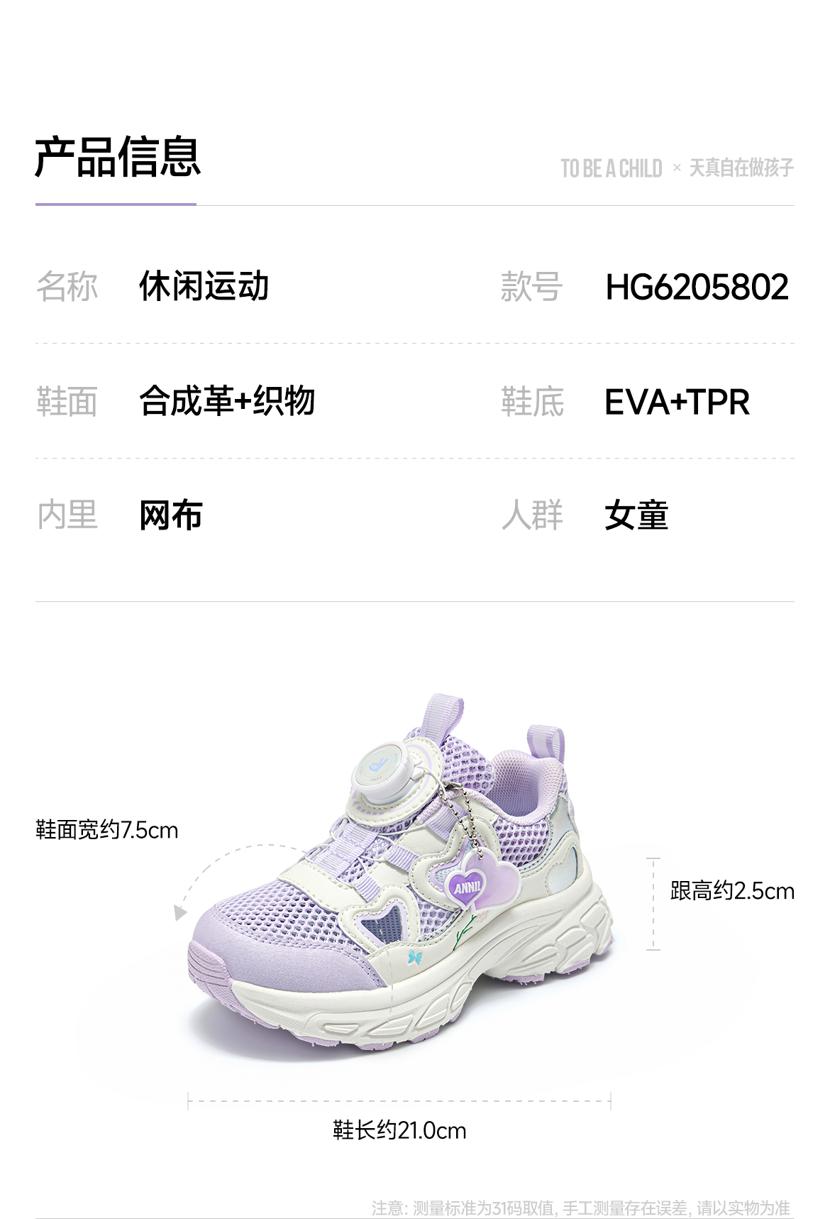 ANNIL/安奈儿童鞋女童夏季运动网鞋HG6205802