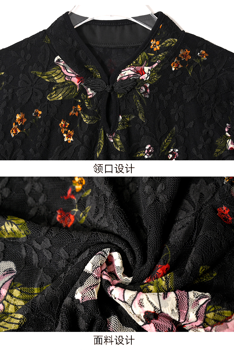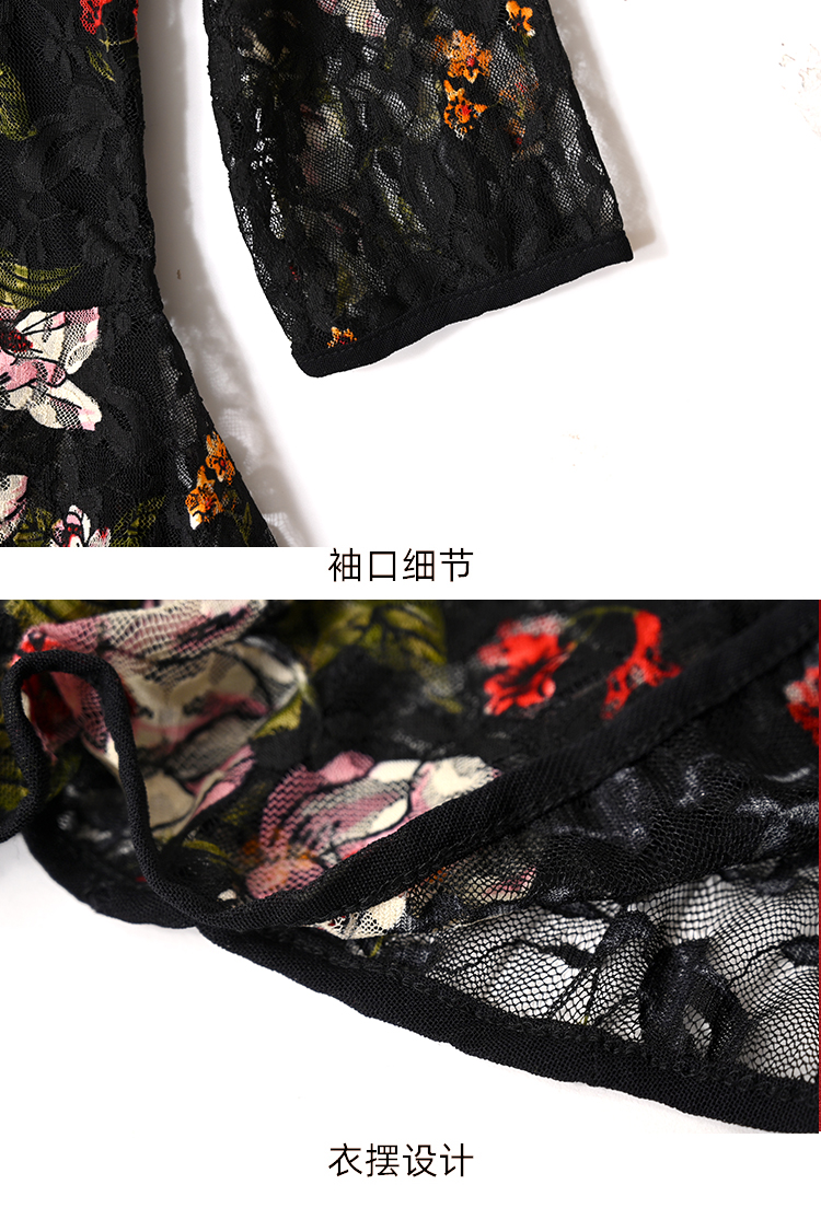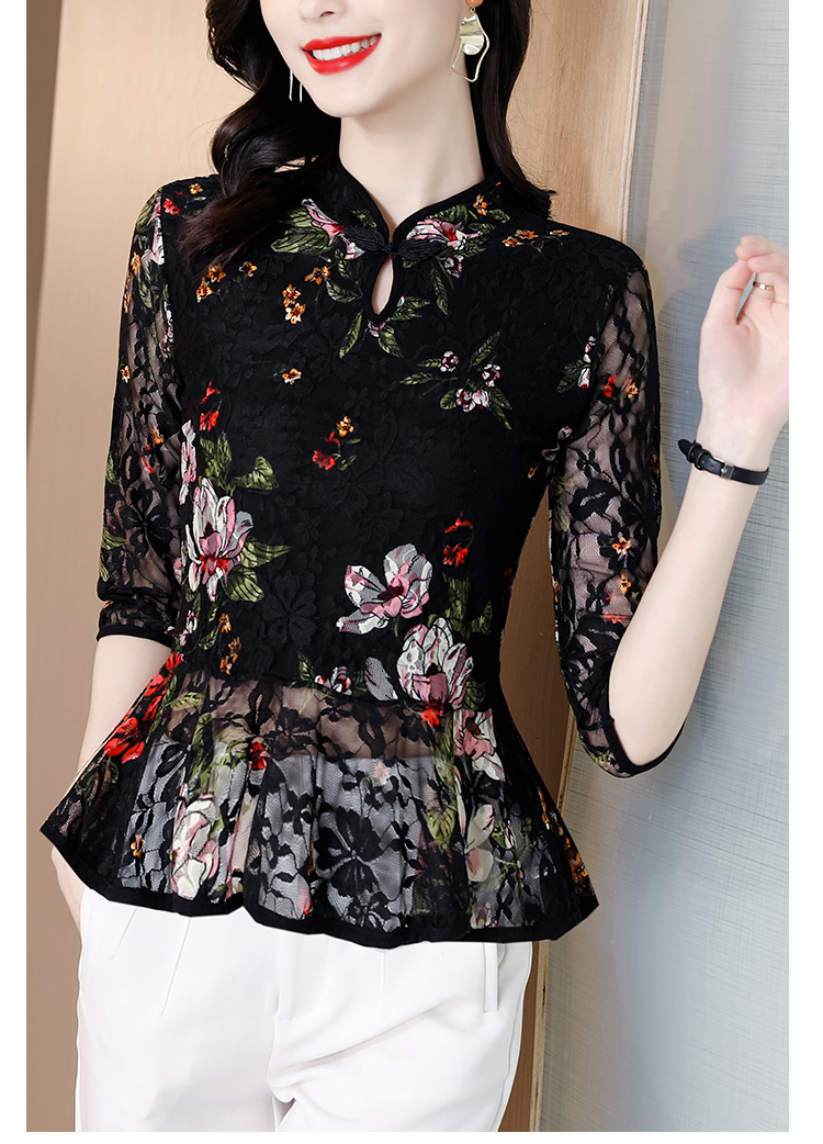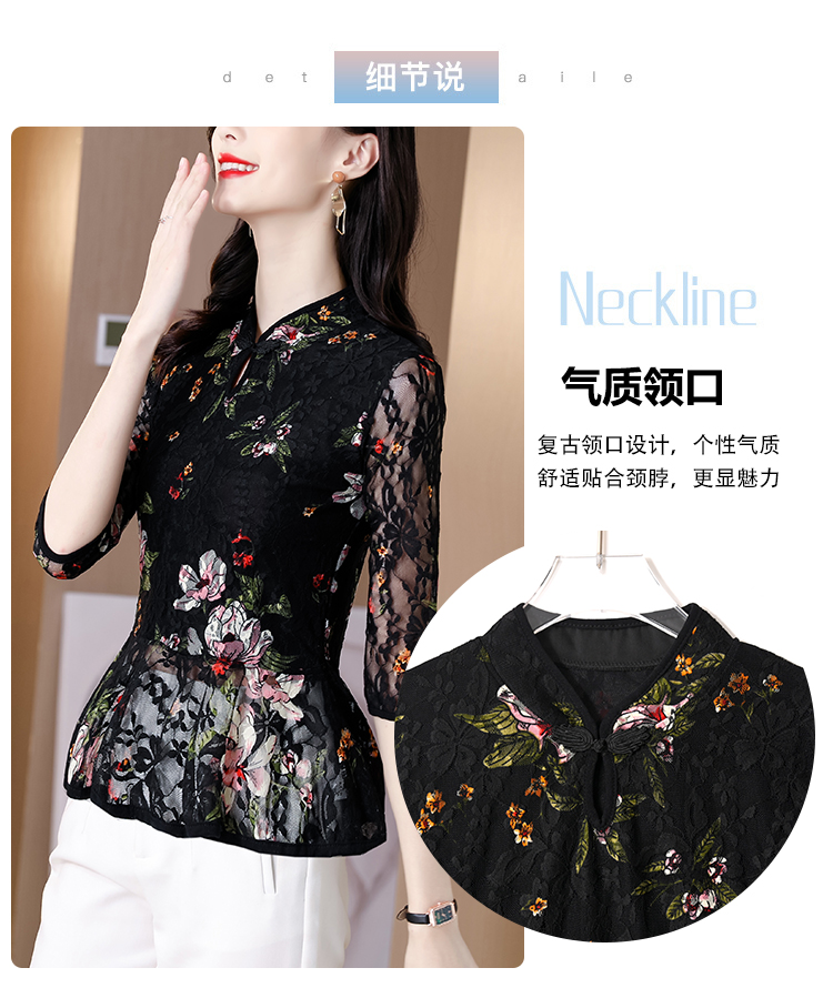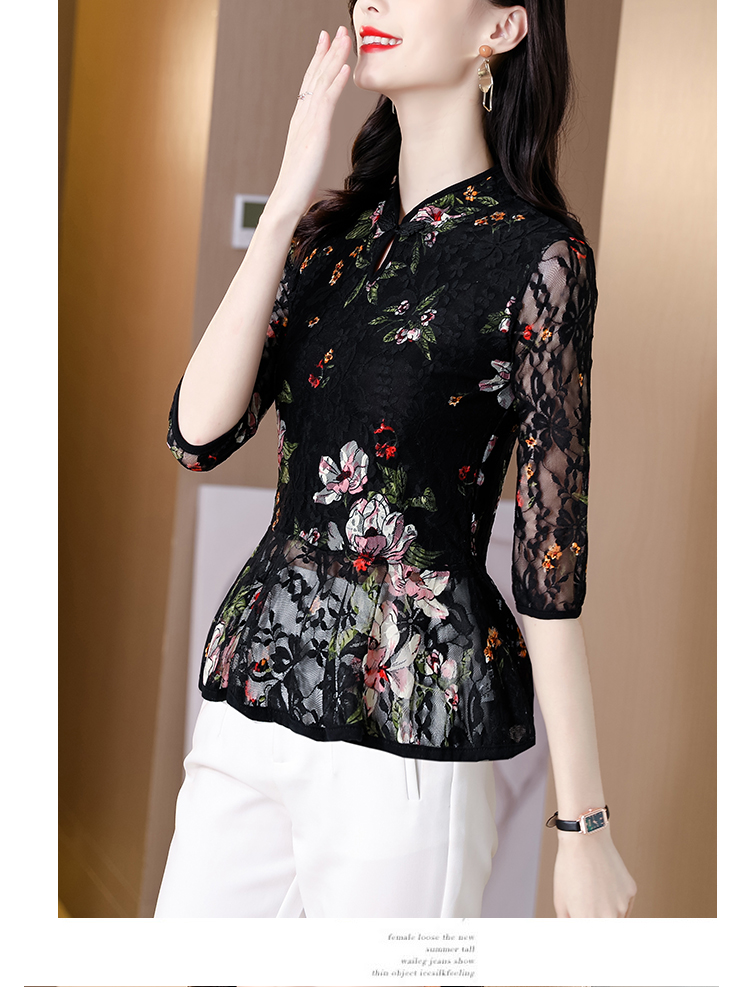 2022新款小衫收腰裙摆上衣女贵夫人漂亮碎花蕾丝衬衫女七分袖MZ804036