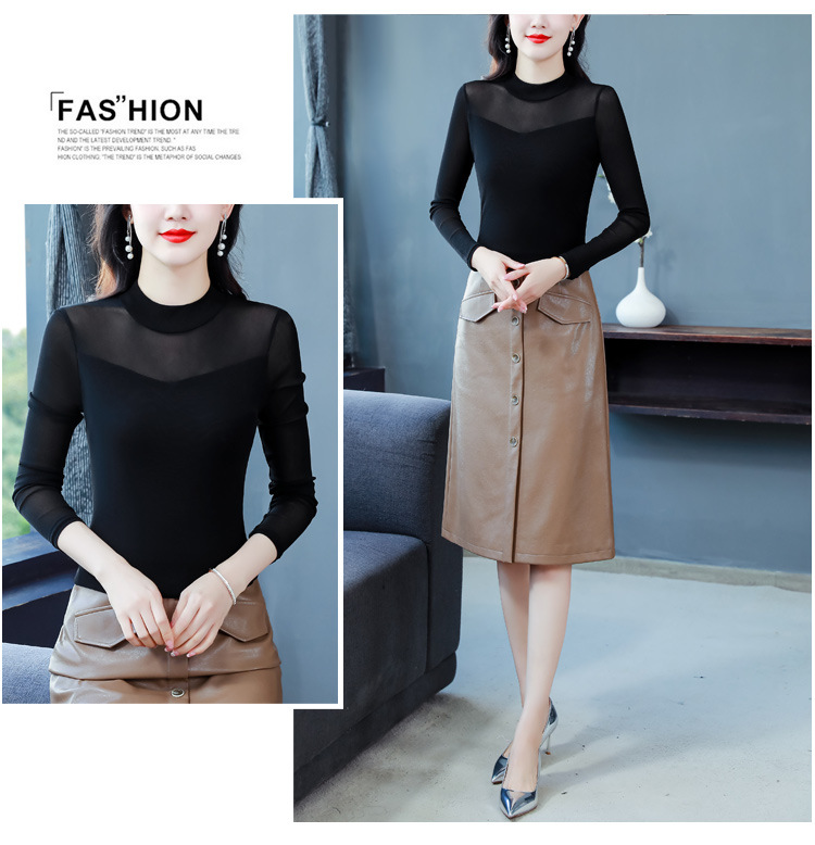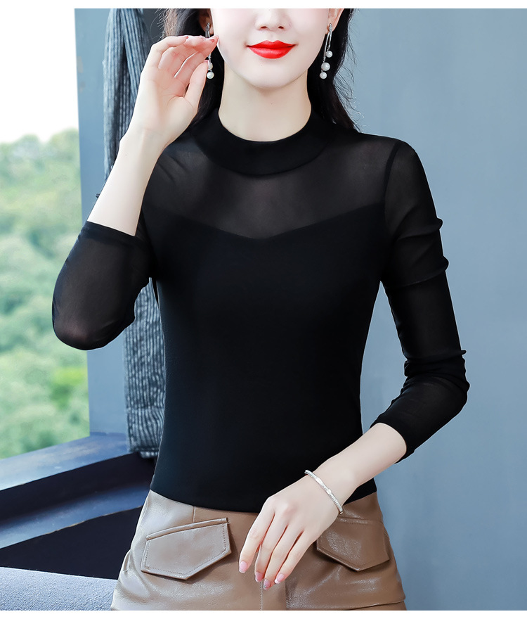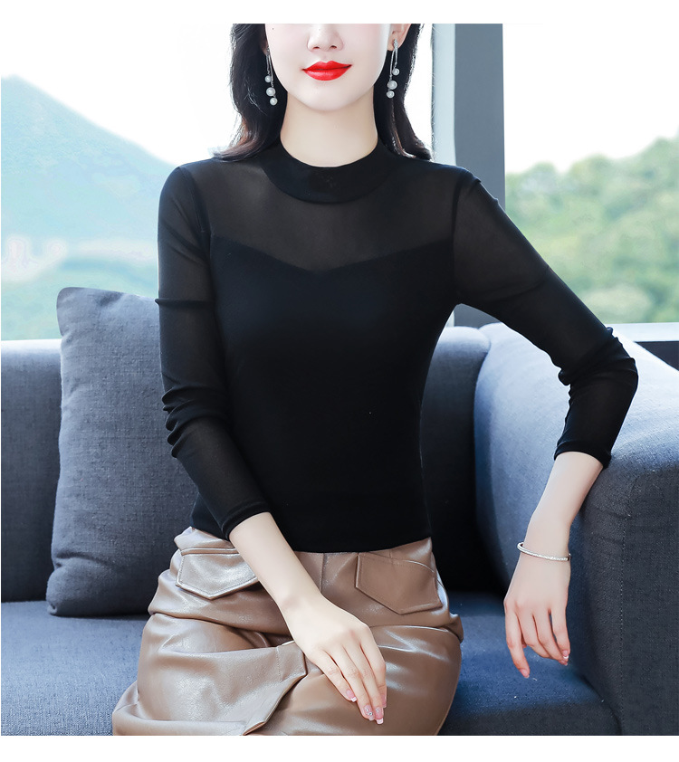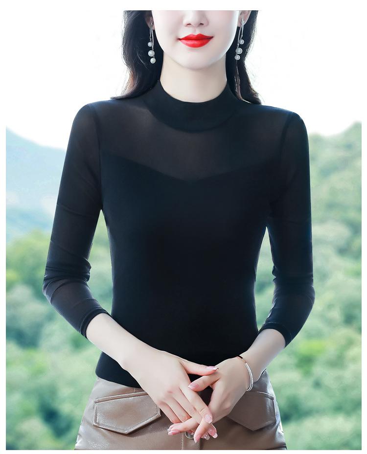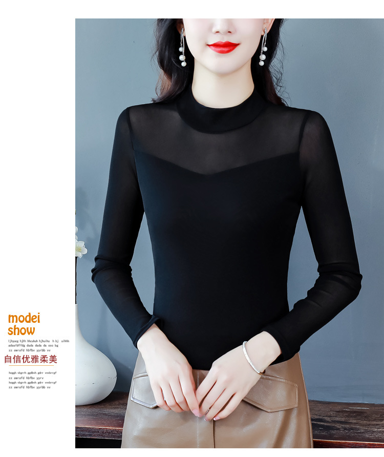 KQL 644G9247高弹网纱半高领打底衫显瘦洋气上衣小衫