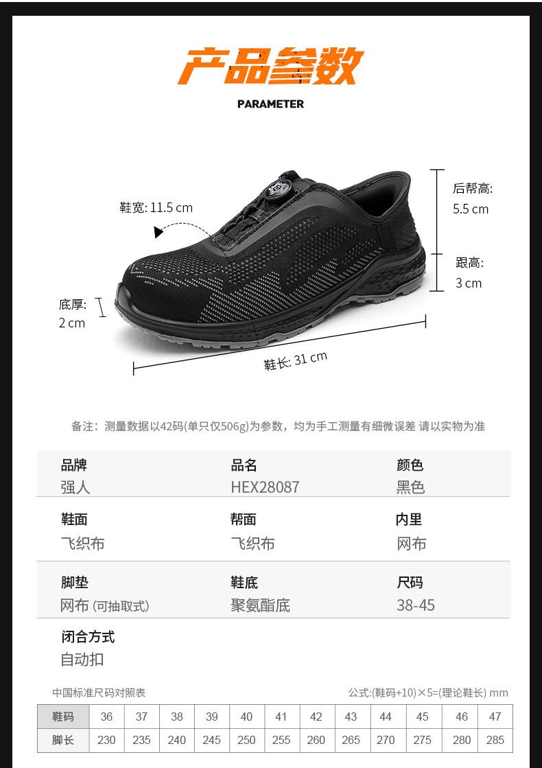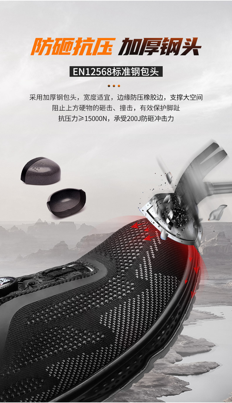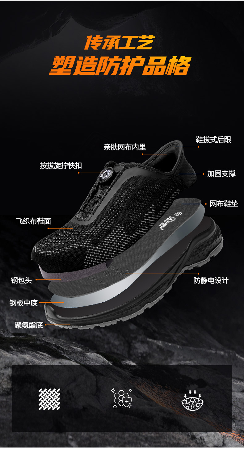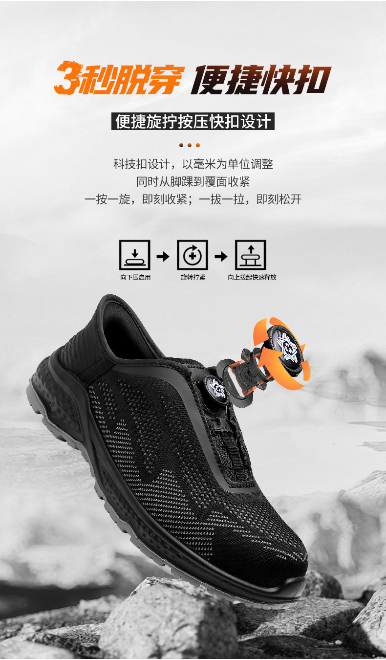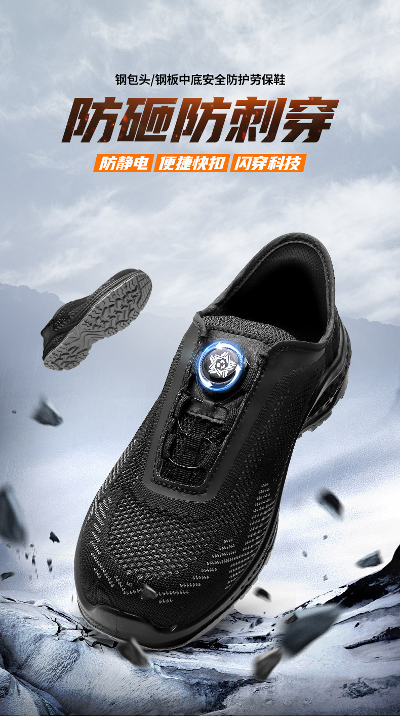 【硬核清仓 断码不补 防砸防穿刺防静电】强人3515透气飞织旋钮快脱劳保安全鞋(钢包头)