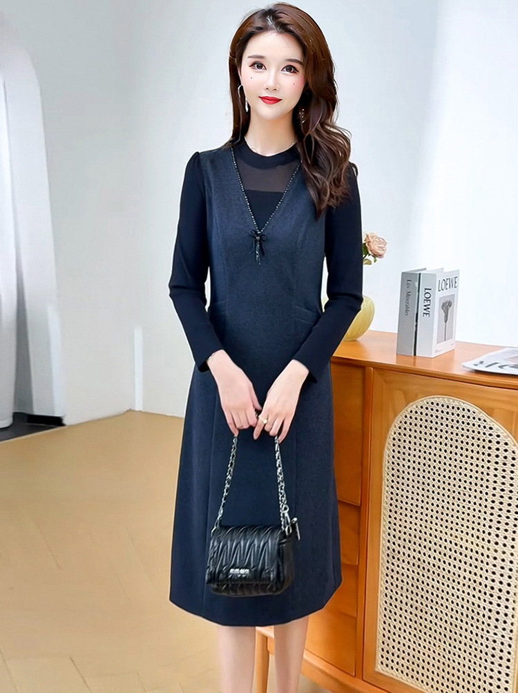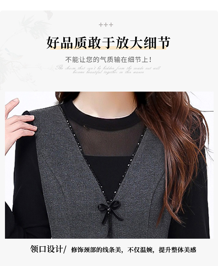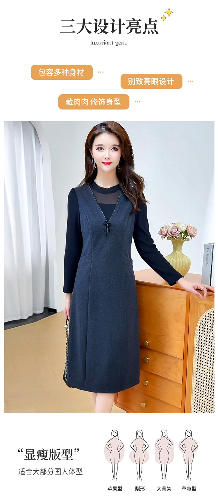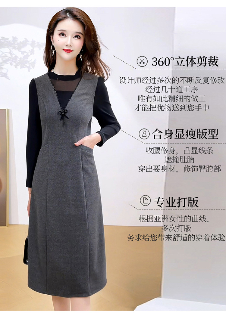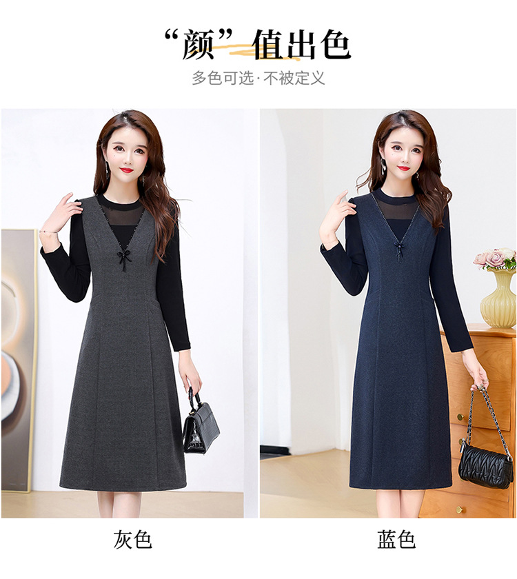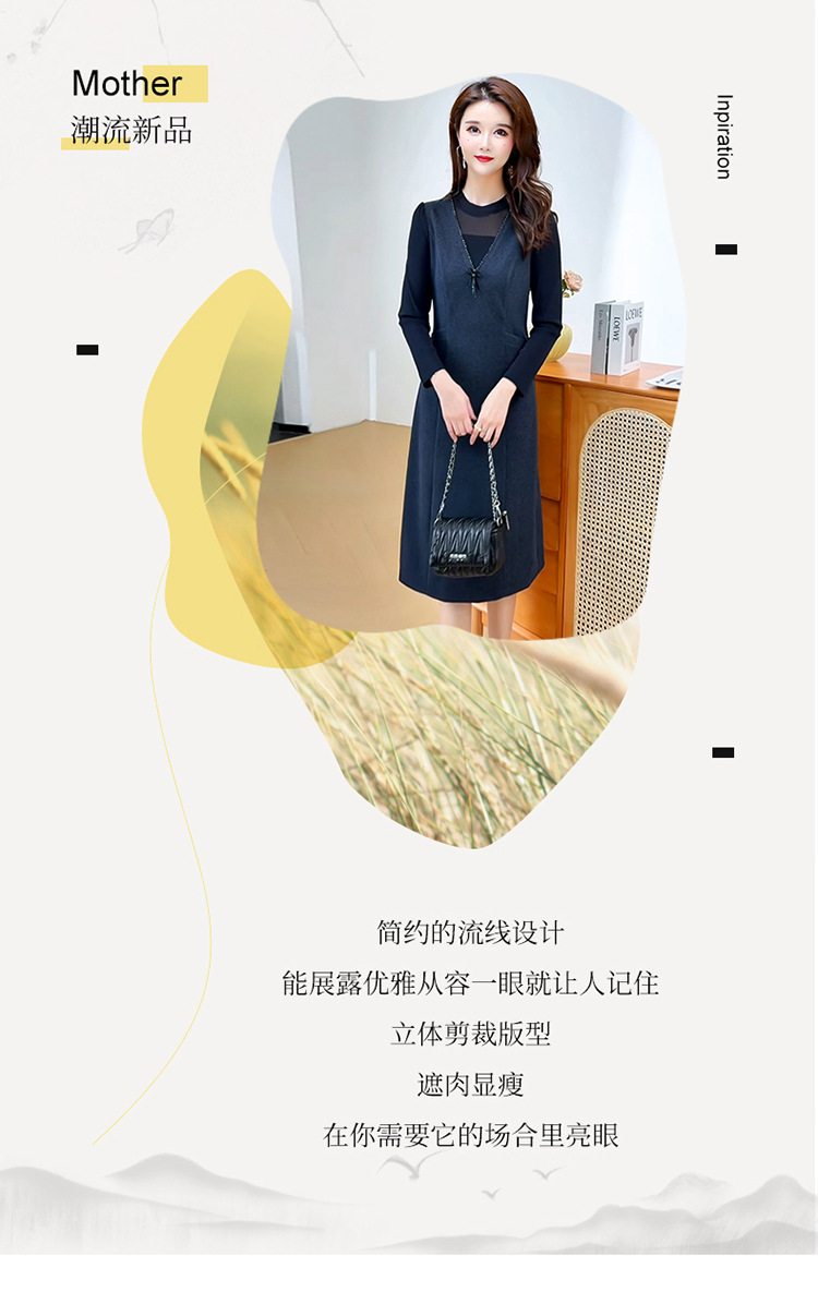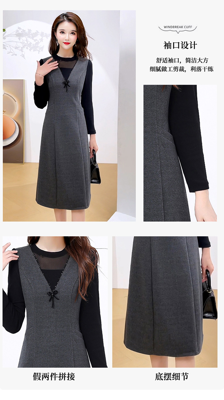 QYM 25S31-Y优雅连衣裙气质假两件拼结打底显瘦中长裙