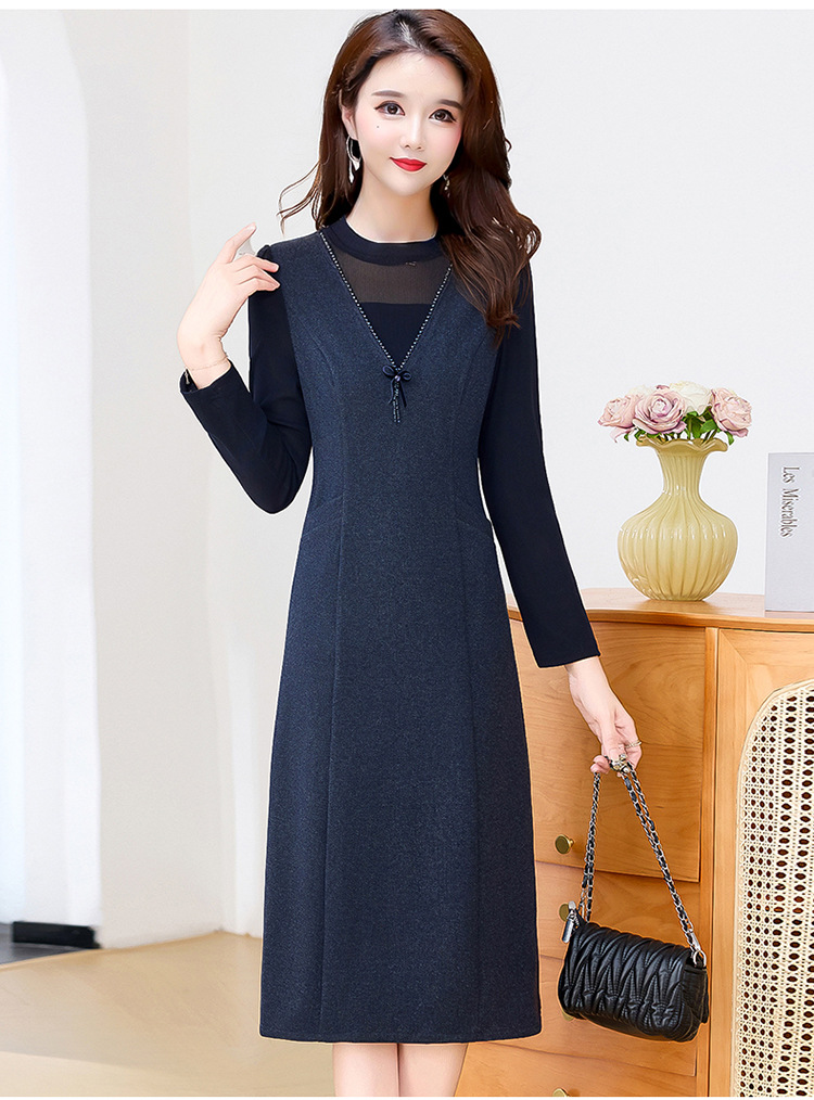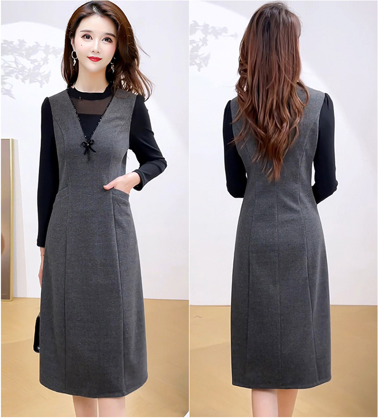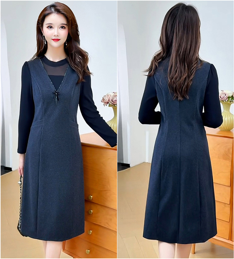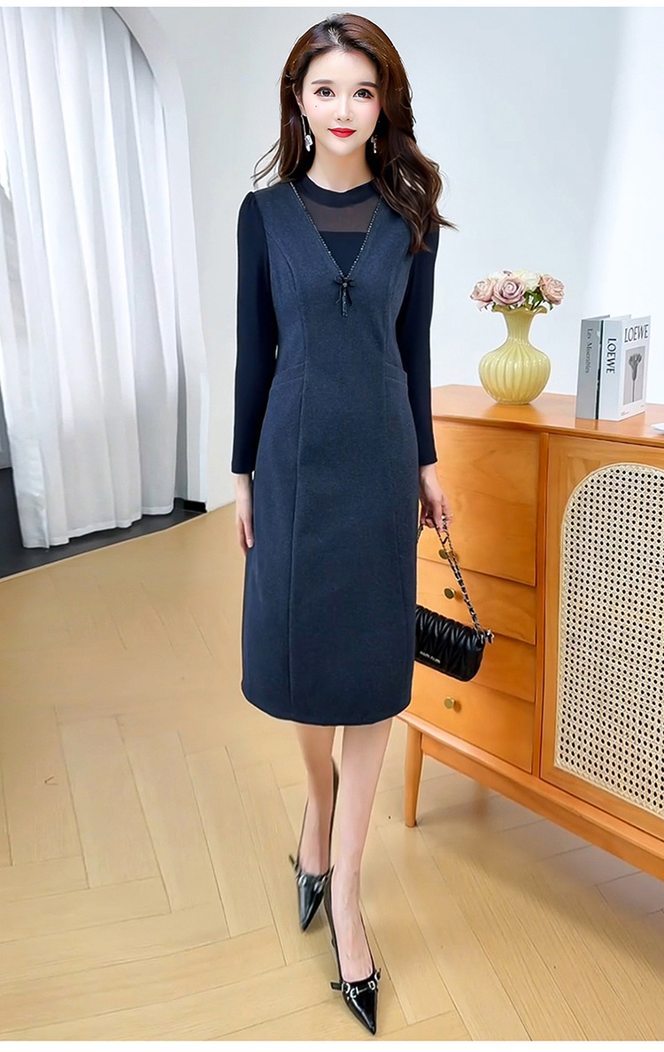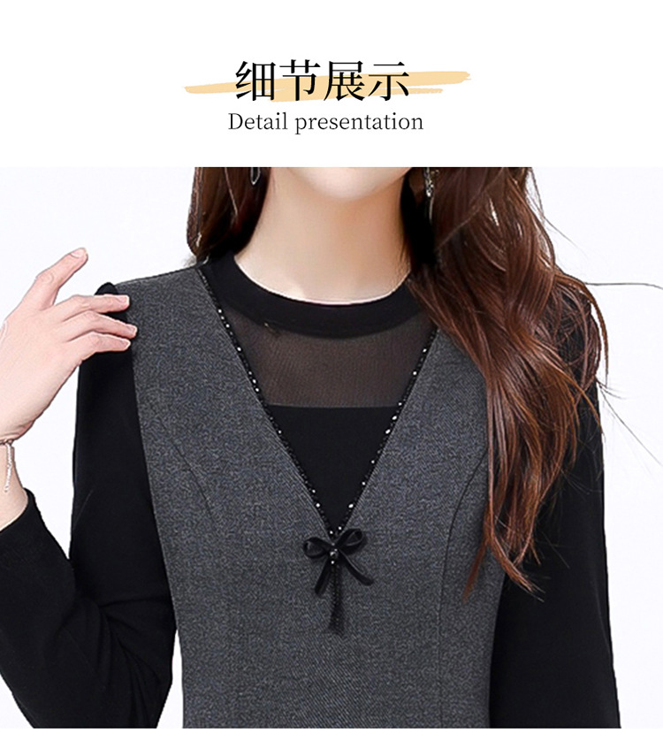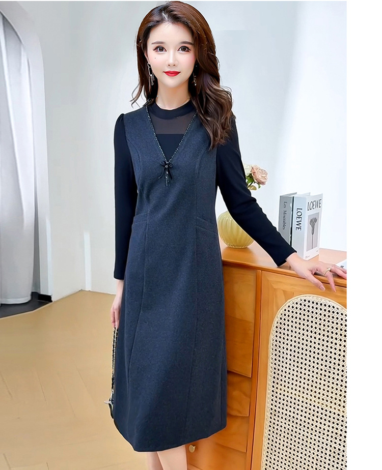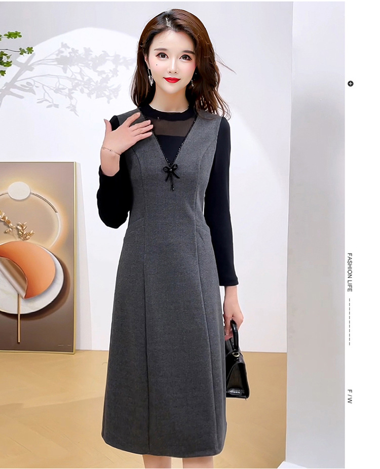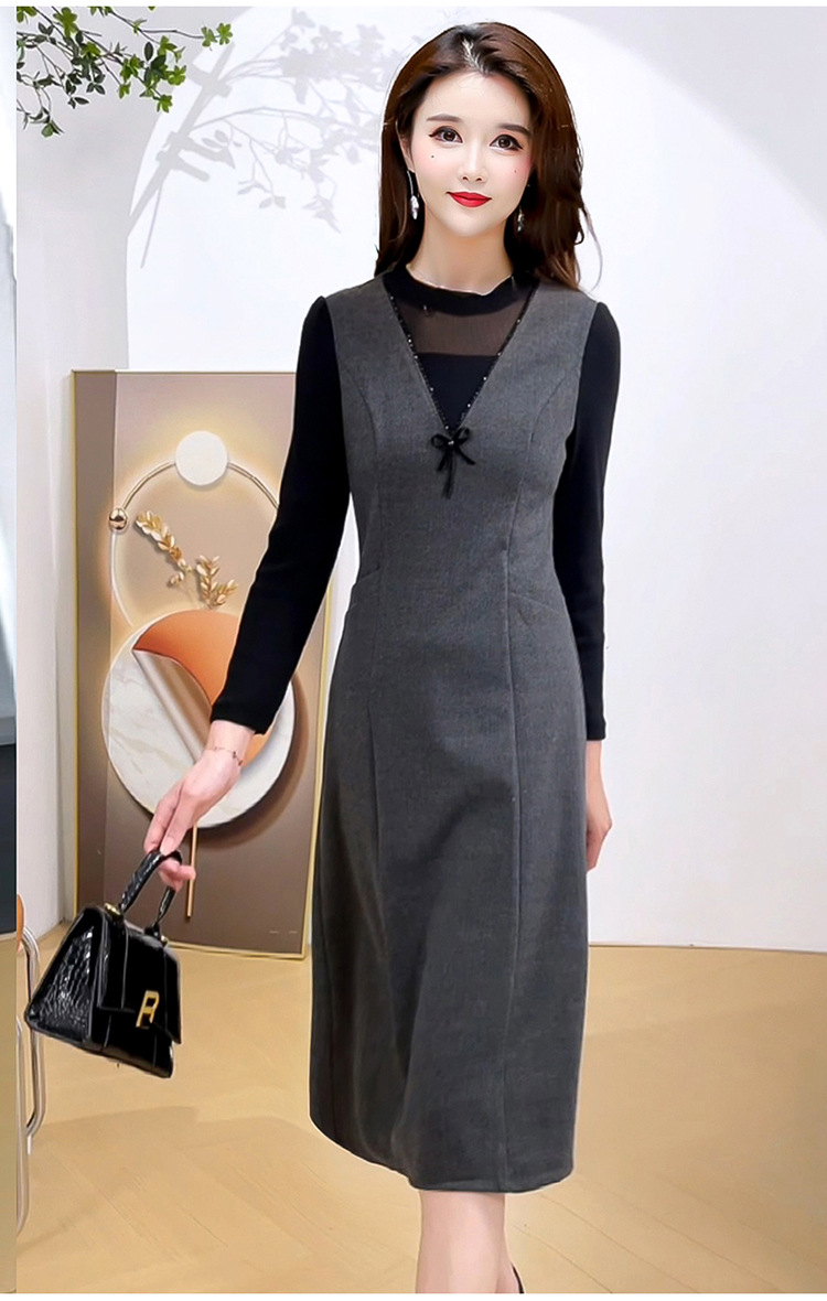 QYM 25S31-Y优雅连衣裙气质假两件拼结打底显瘦中长裙