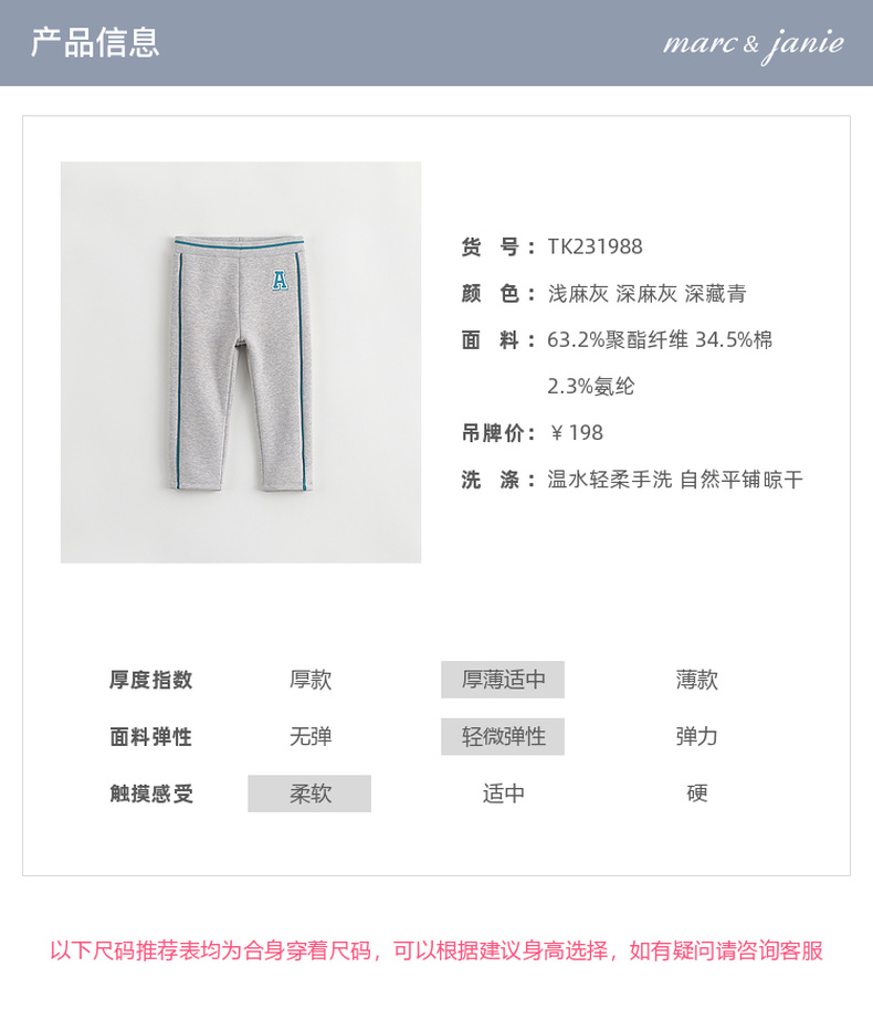 【黑科技蓄热】马克珍妮冬装新款女童高弹加绒打底裤231988
