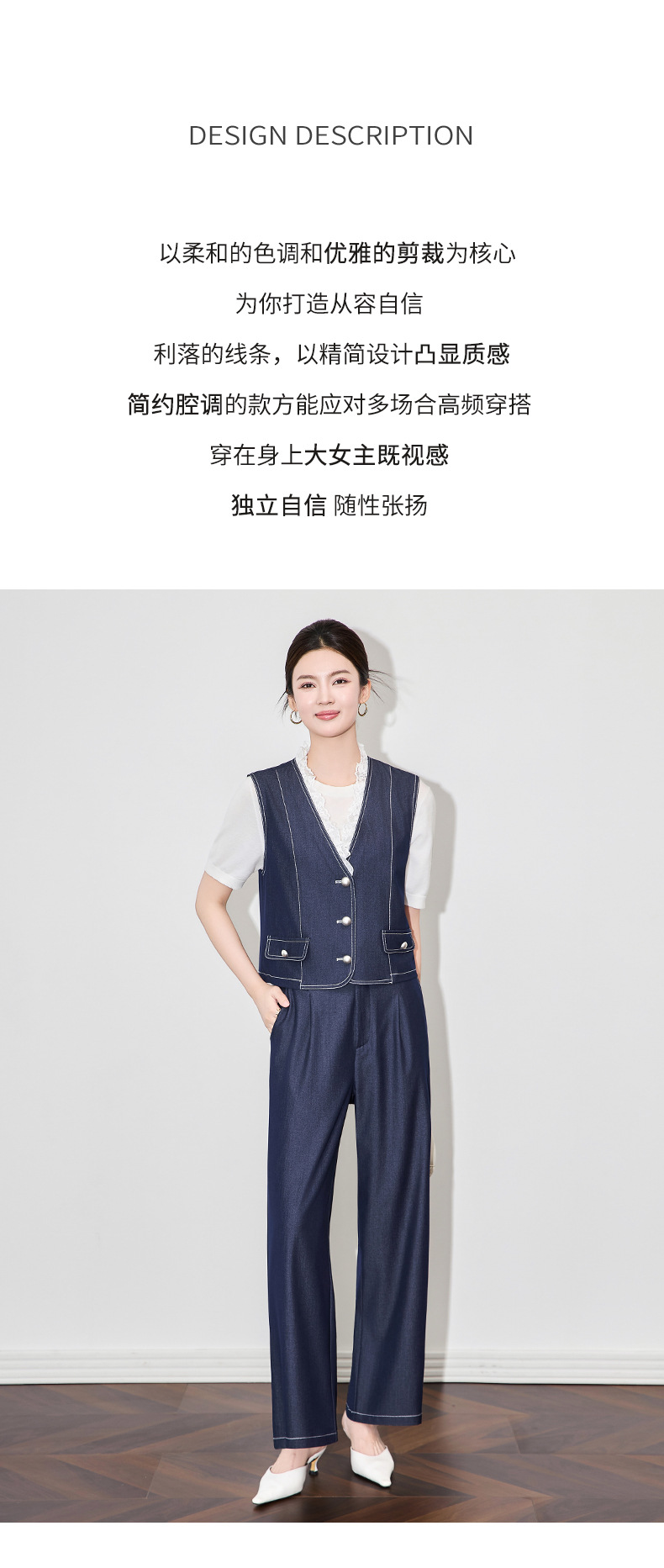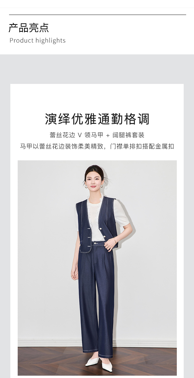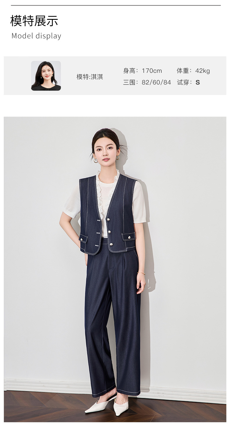 「高货wl」全新升级【铂金会员367/天猫489/差价122】(99513)洛诗琳时尚老钱风无袖马甲上衣休闲通勤阔腿裤两件套女