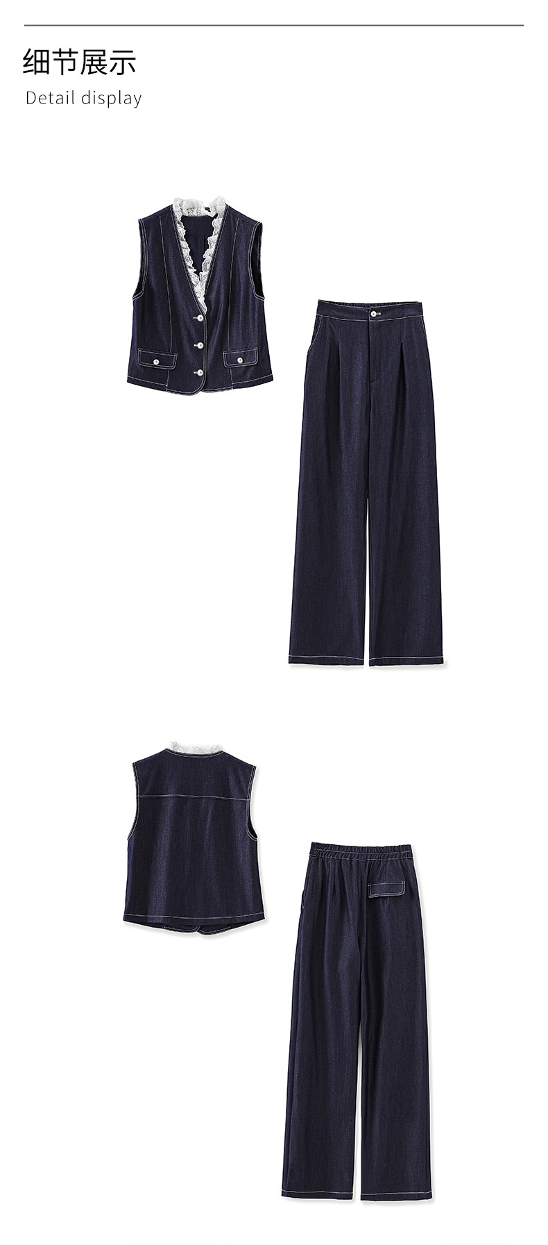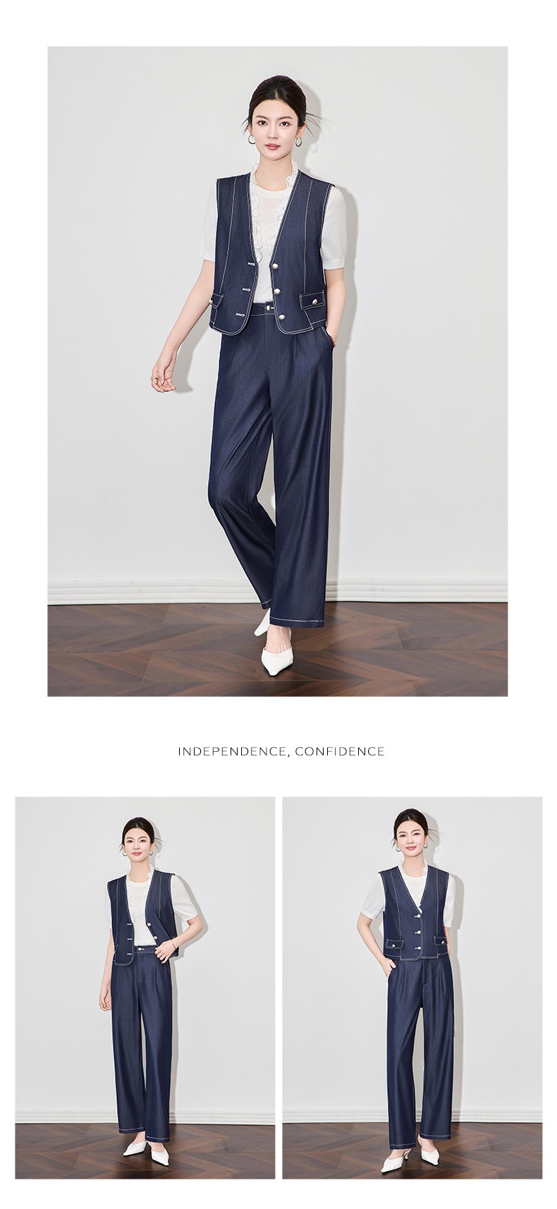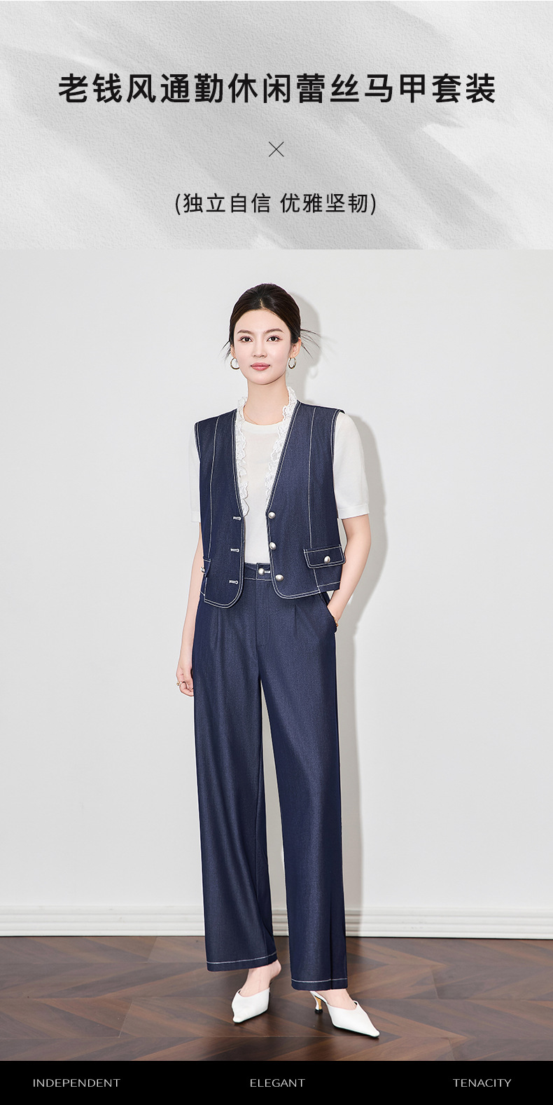 「高货wl」全新升级【铂金会员367/天猫489/差价122】(99513)洛诗琳时尚老钱风无袖马甲上衣休闲通勤阔腿裤两件套女