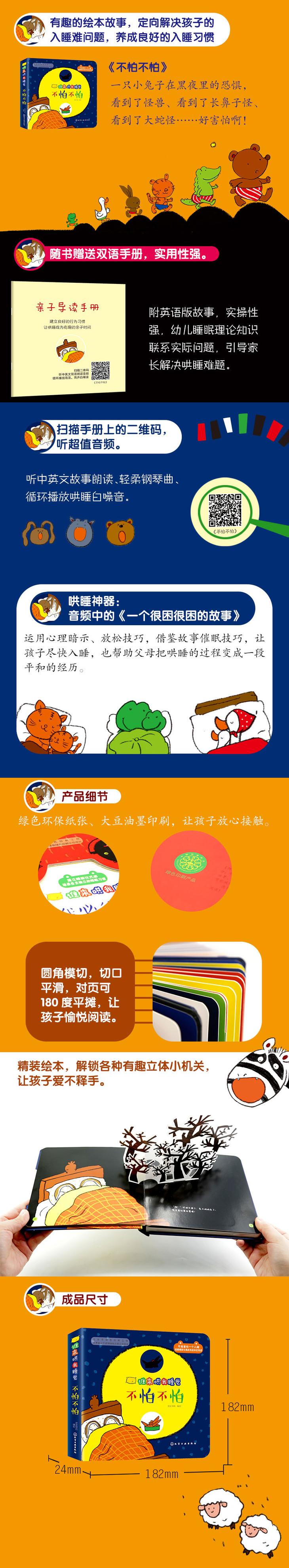 3.赠双语手册,附睡眠理论知识联系各种具体哄睡问题,引导家长了解孩子入睡的生理、心理知识,定向解决哄睡难题,实用性和指导性强。
