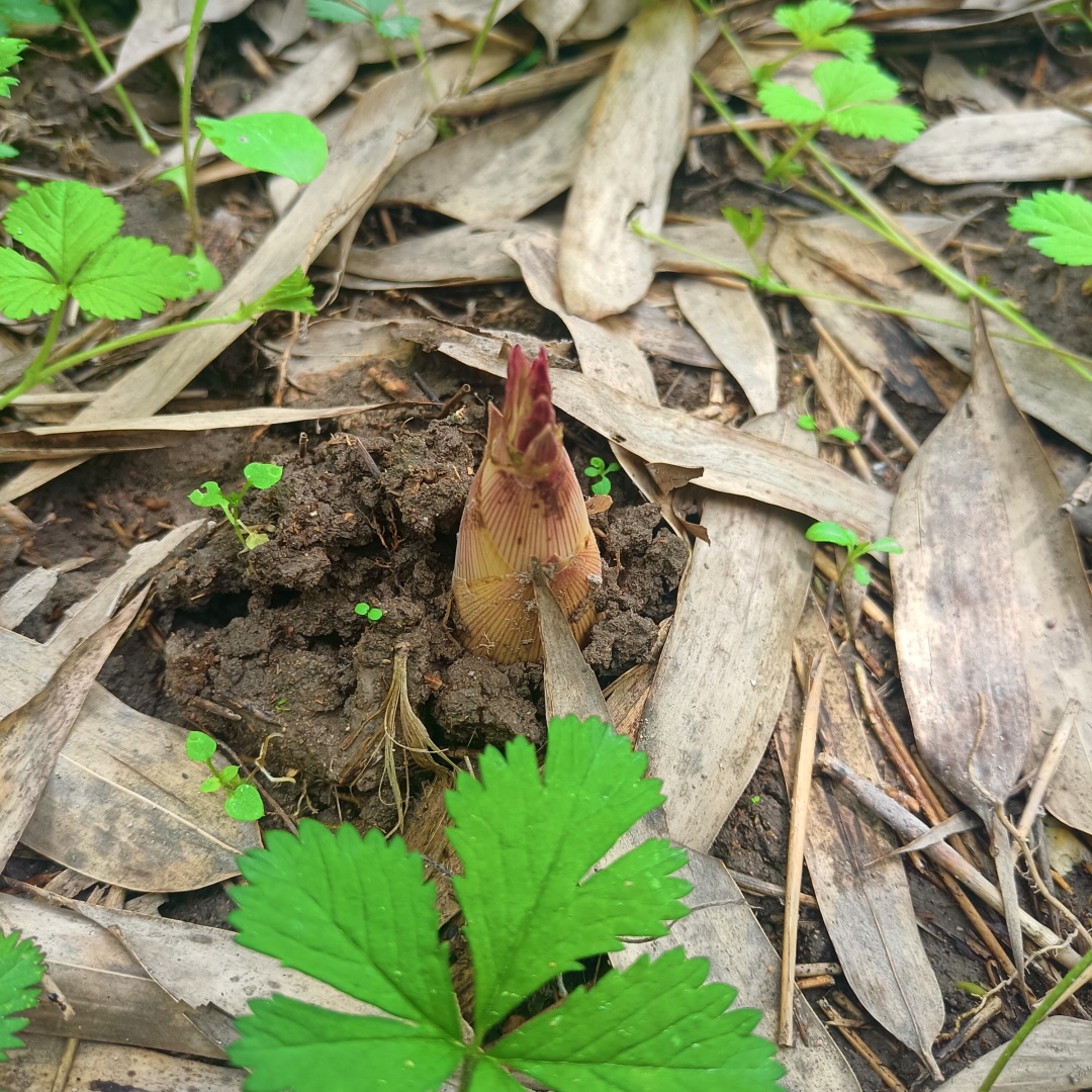 不知什么时候,落起了春雨,轻轻的,听不见淅沥的响声,像一种湿漉漉的烟雾,轻柔地滋润着大地。春笋已露尖尖角,在雨露滋润下蓬勃而出,春天让我们得以尝到竹笋的鲜嫩爽脆。
