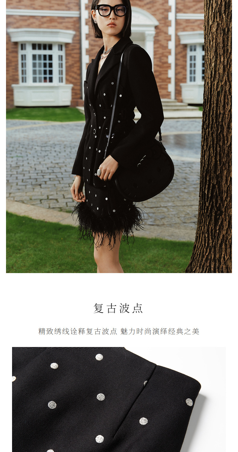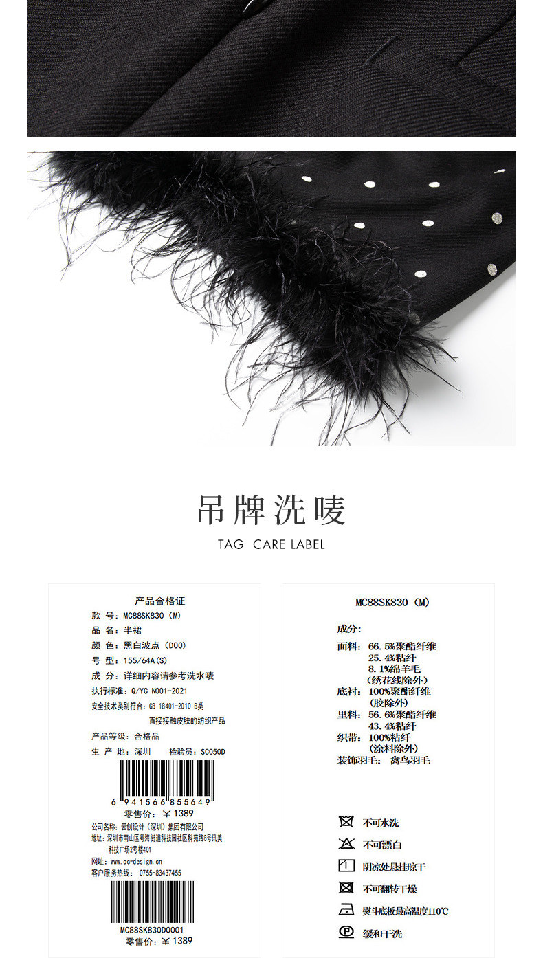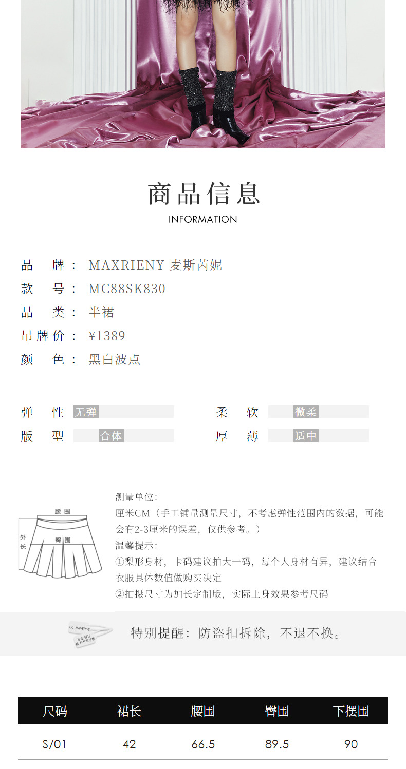 【商场同款】MAXRIENY复古波点羽毛半裙2023冬季新款(货号:MC88SK830)