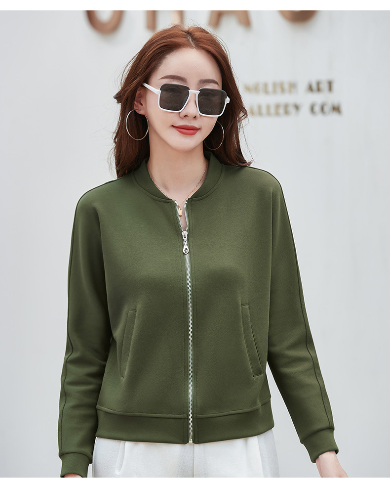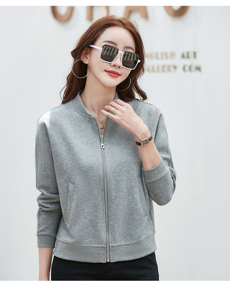 百媚生 加厚棉质拉链开衫上衣长袖外套421