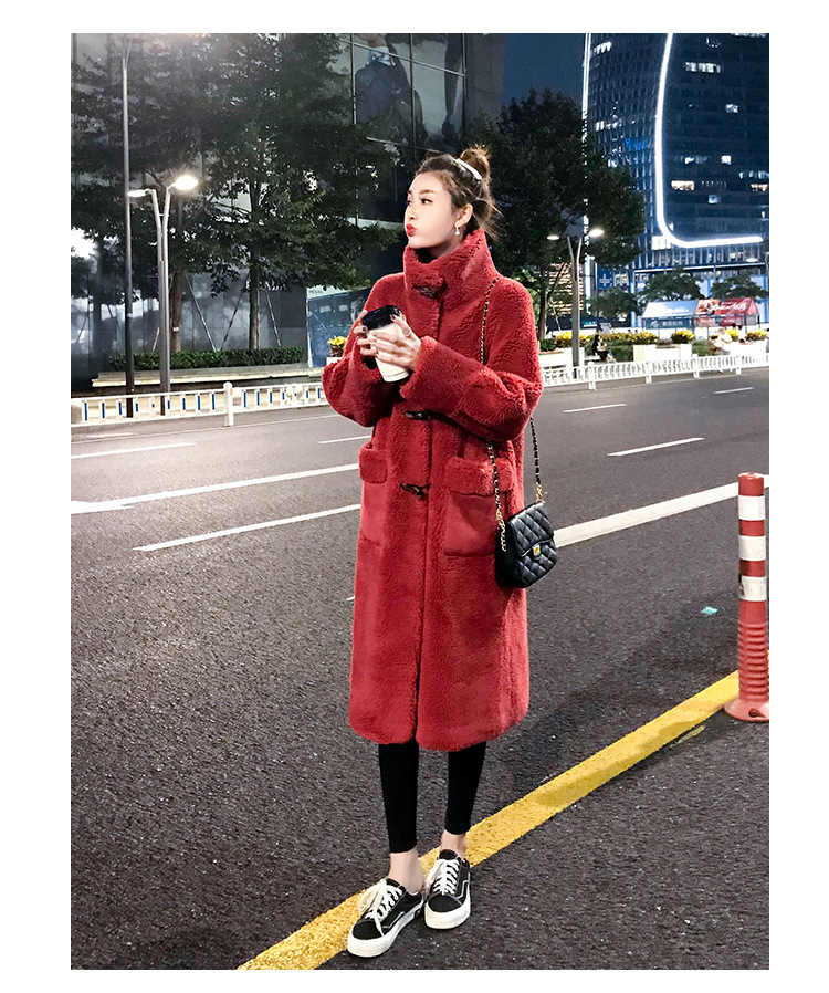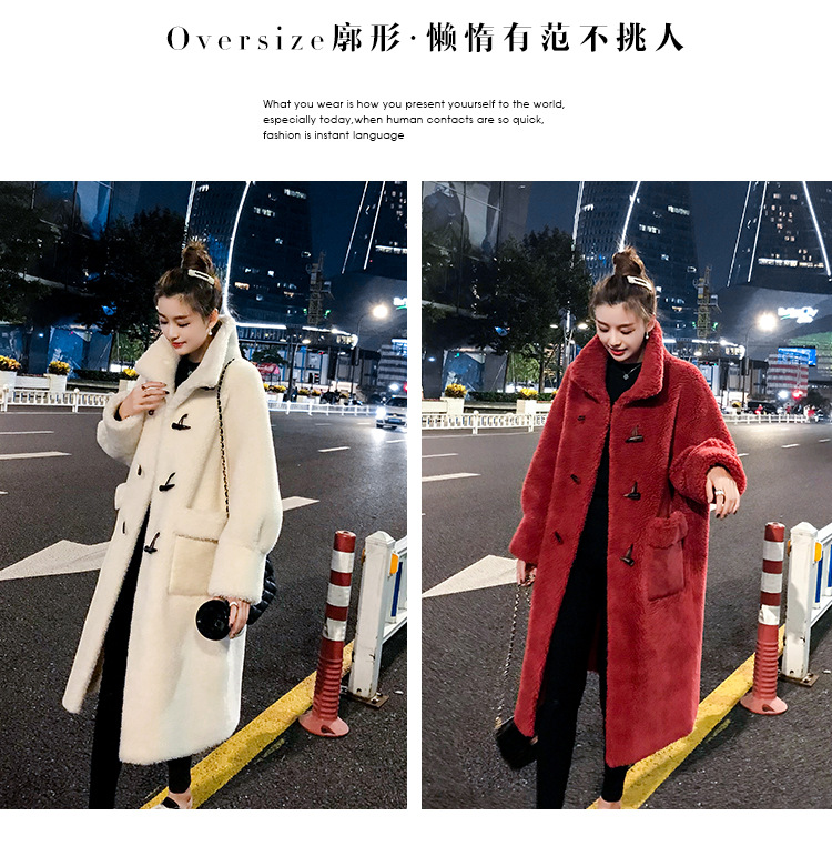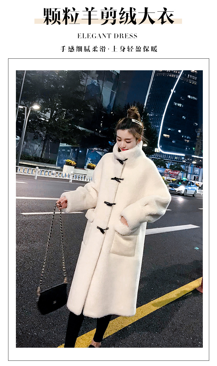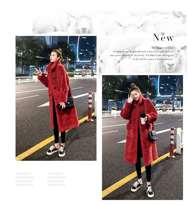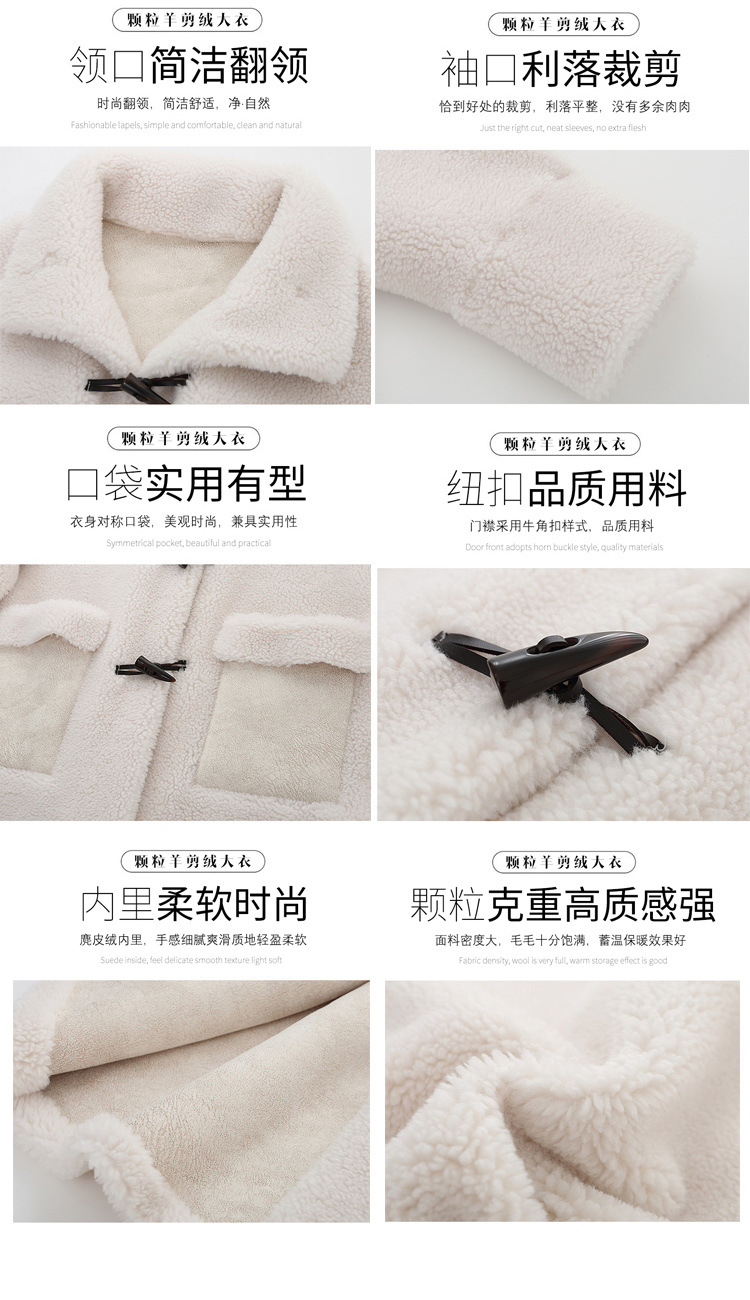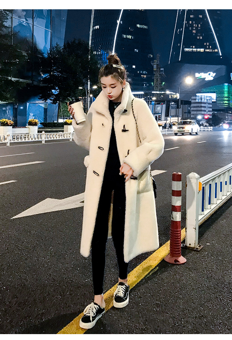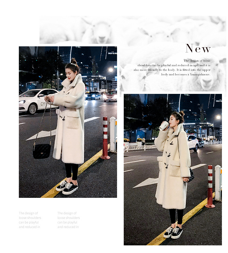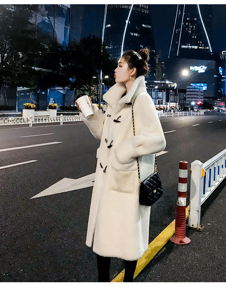 MX-253冬季新款羊驼颗粒羊毛牛角扣皮毛一体皮草外套