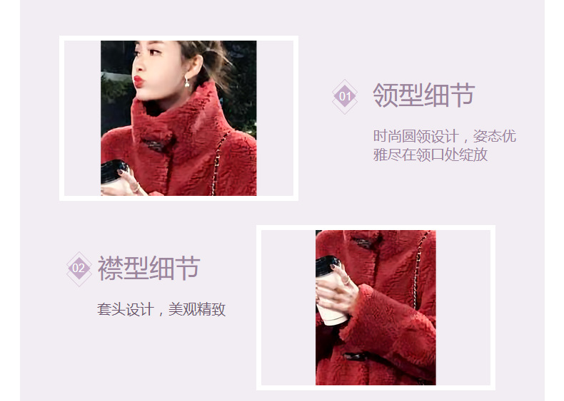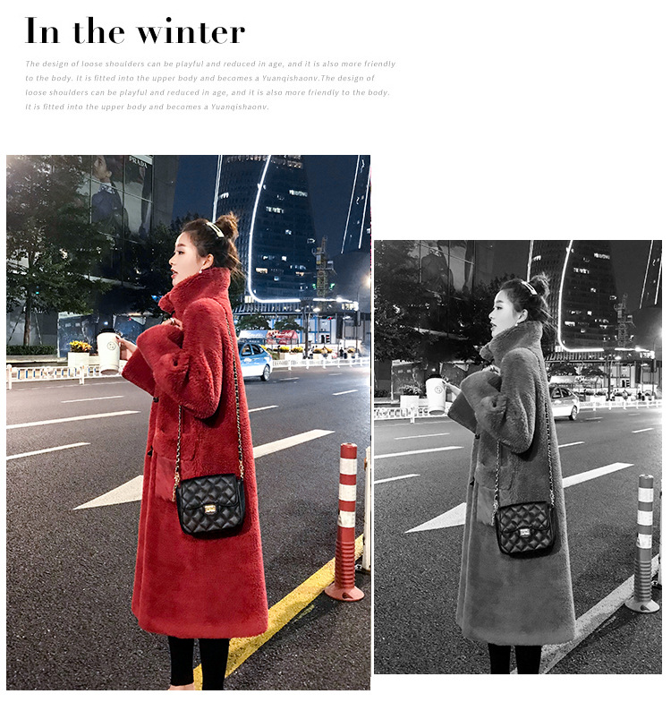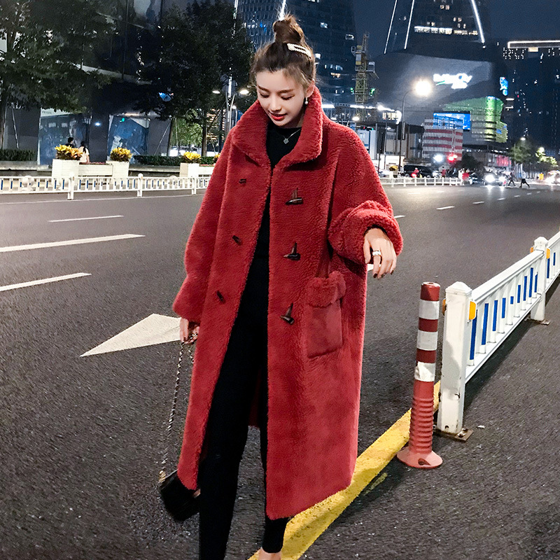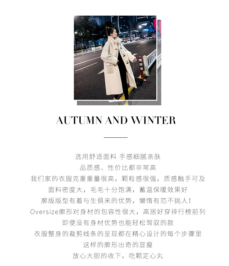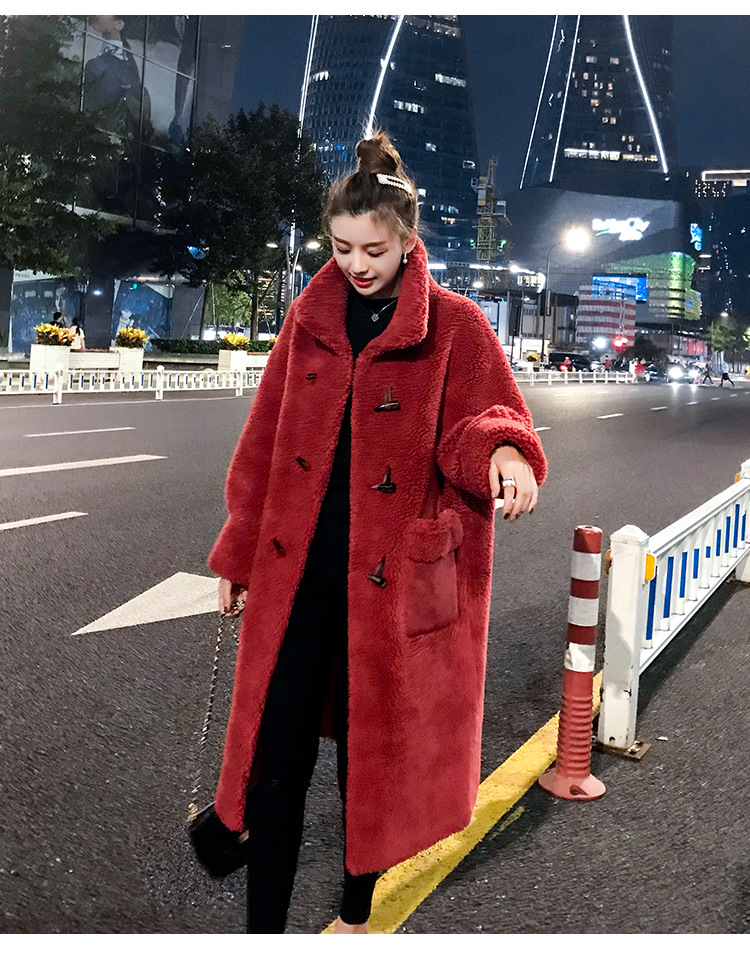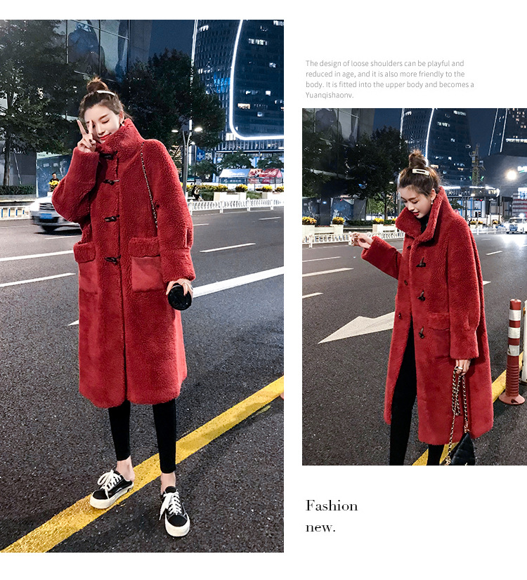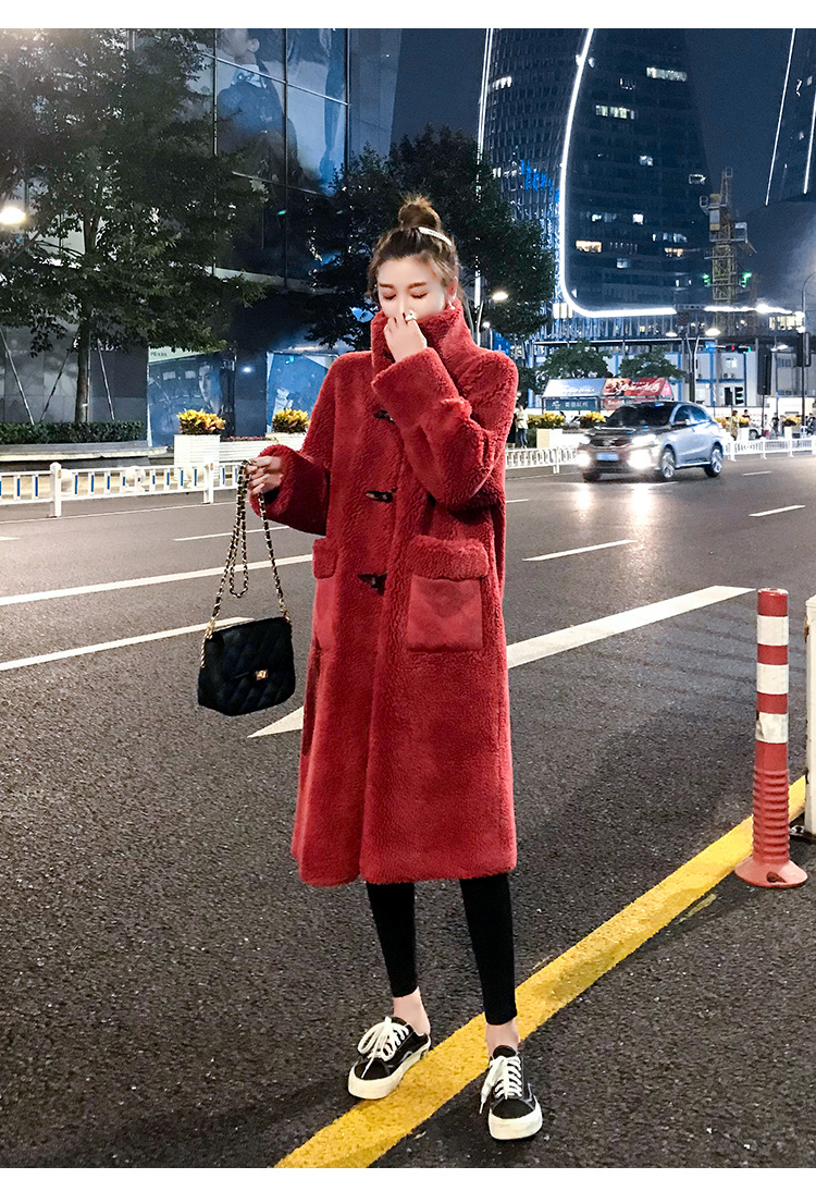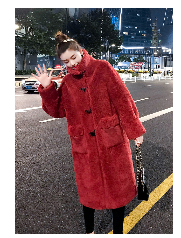MX-253冬季新款羊驼颗粒羊毛牛角扣皮毛一体皮草外套
