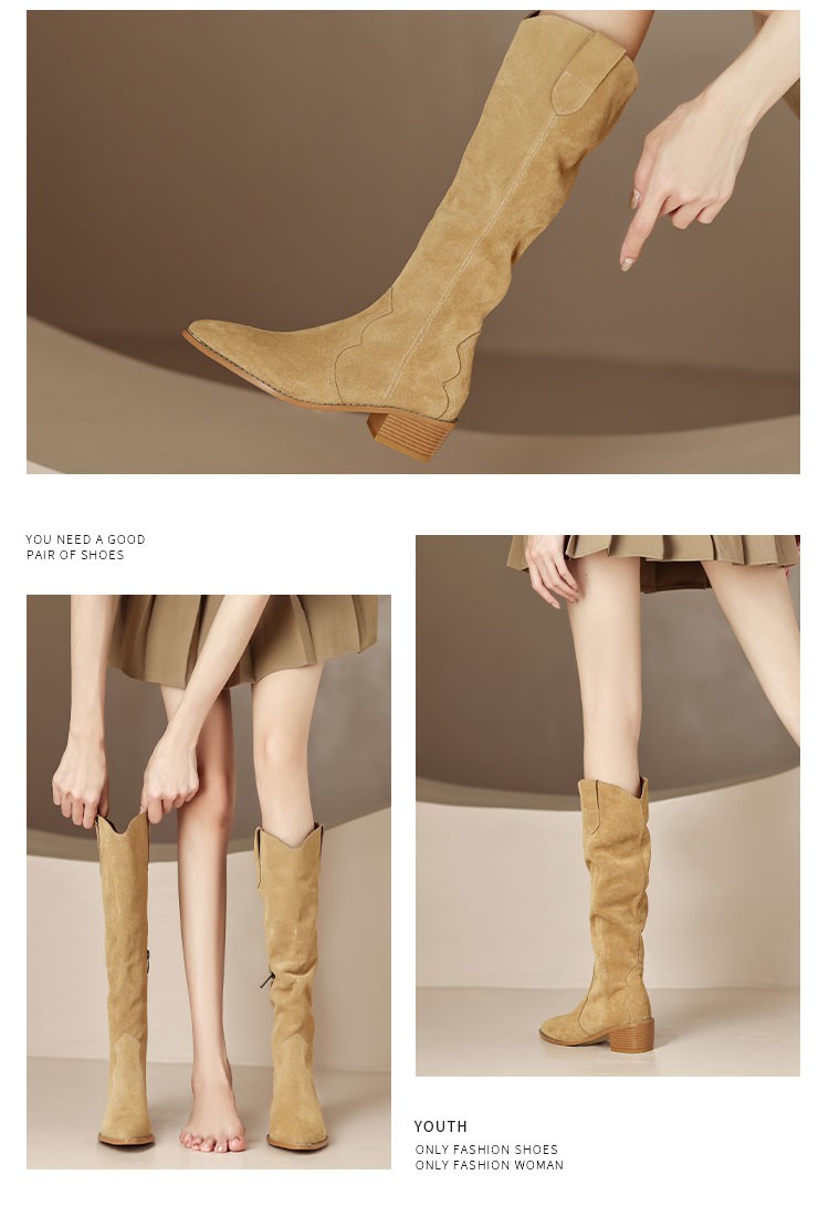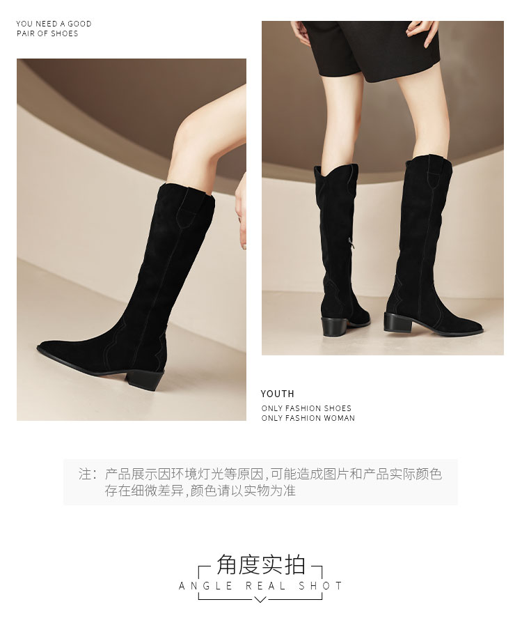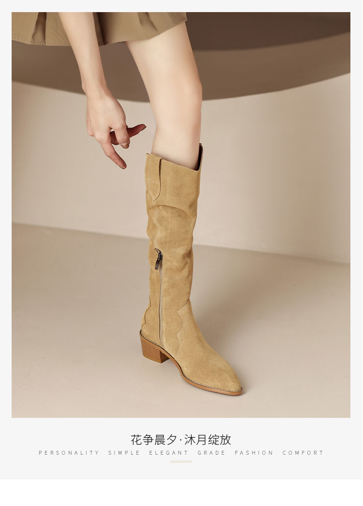 简约百搭款,尖头低跟长筒靴HCY-3156