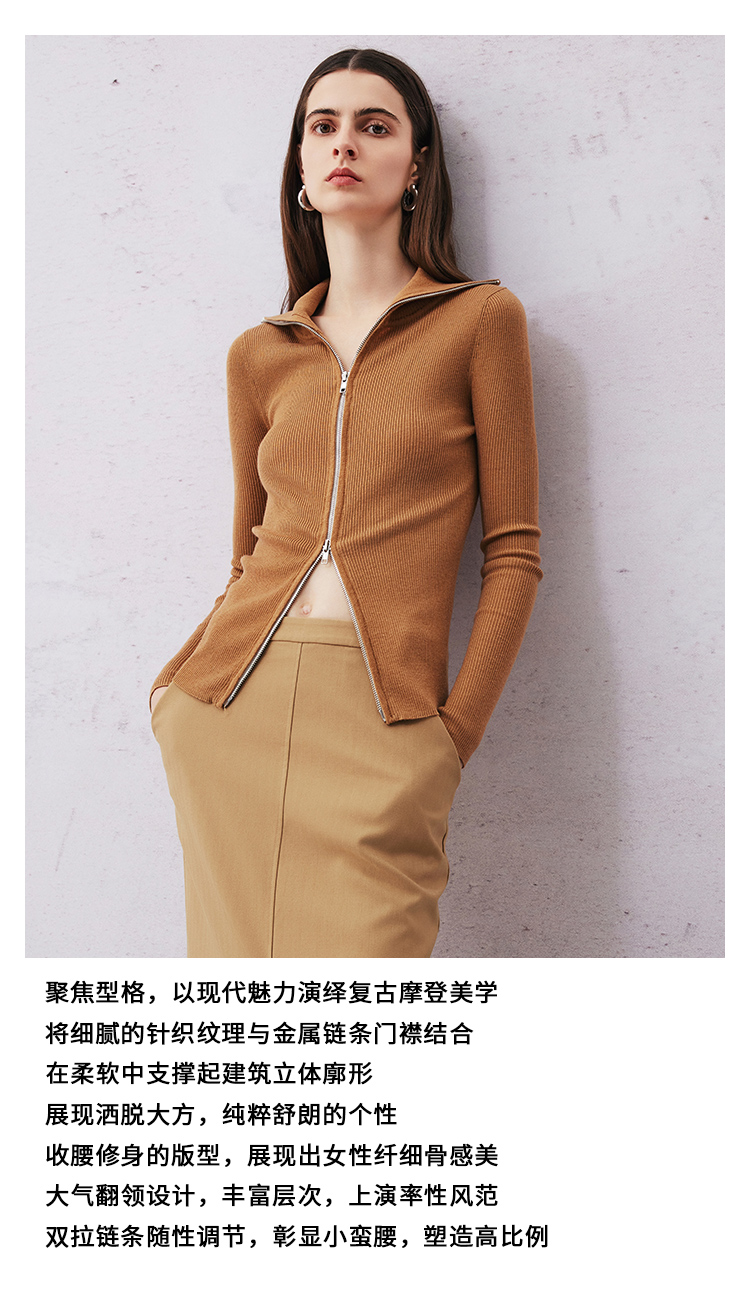 EITIE爱特爱秋季新款简约纯色高领保暖舒适100%绵羊毛针织衫D2401415